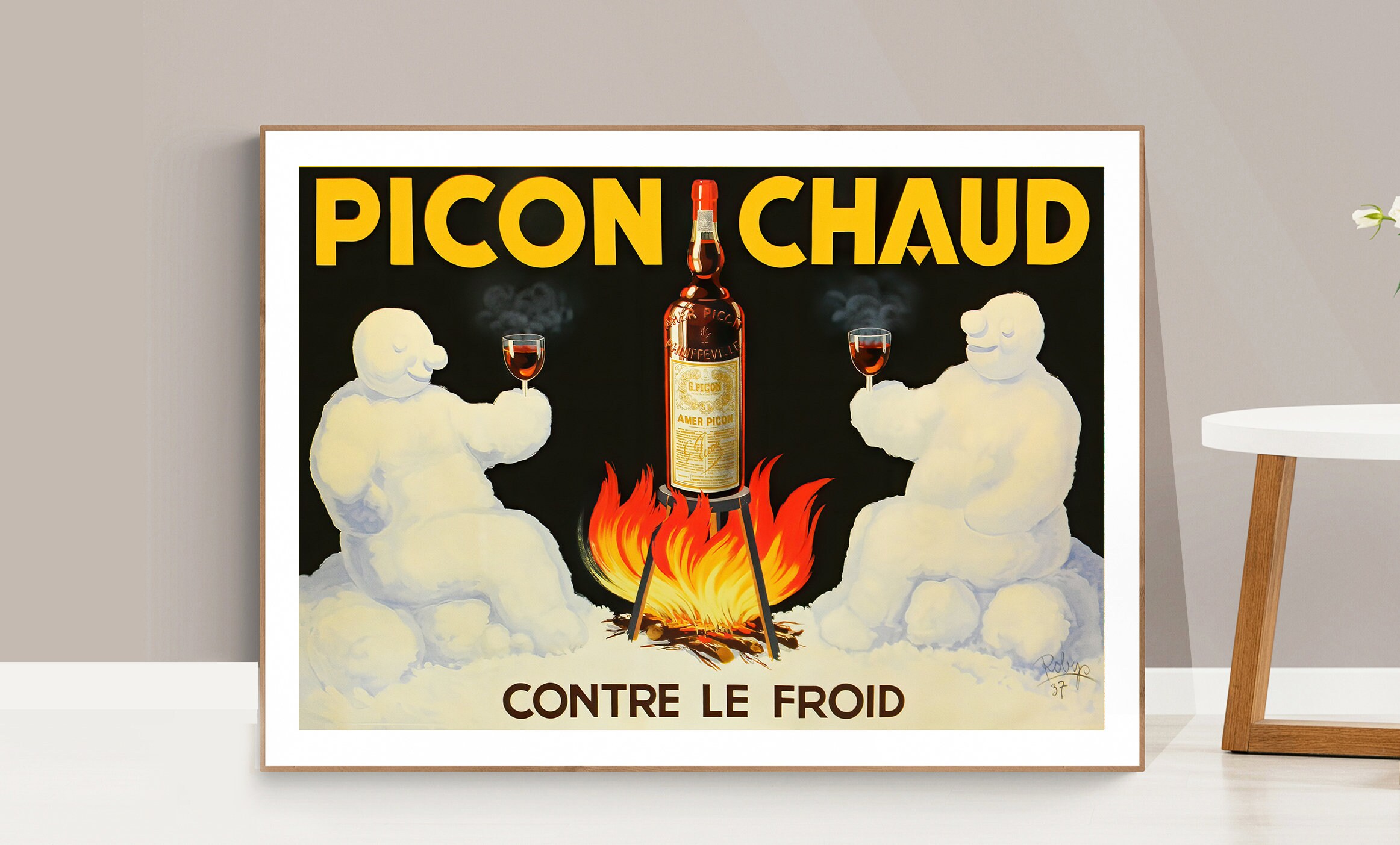 Vintage Picon Chaud, Contre Le Froid Advertisement Art Print - Reproduction of a Vintage Artwork, Decorative Purposes Wall Decor