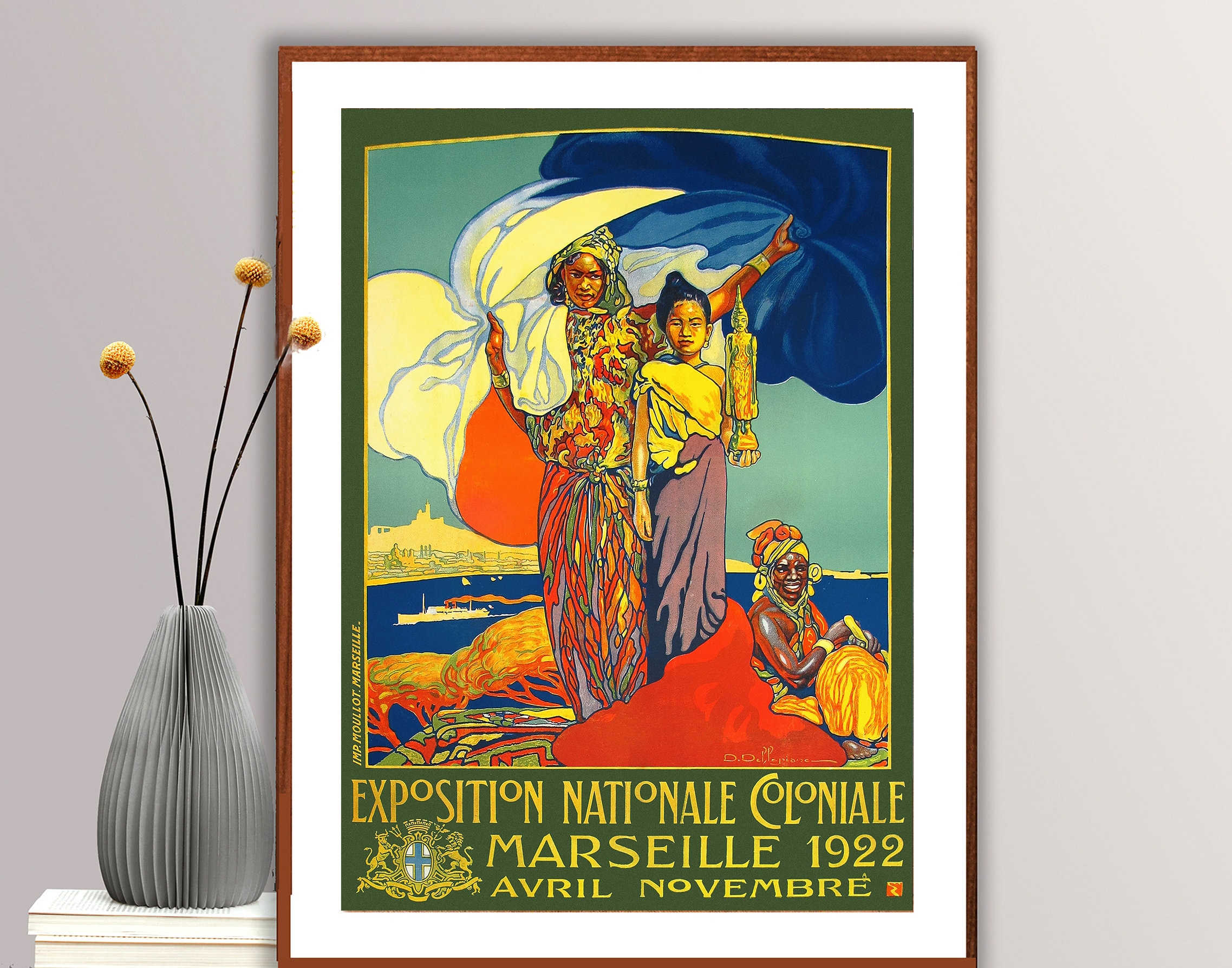 Exposition Nationale Coloniale, Marseille, 1922 Vintage Travel Poster - Poster Paper or Canvas Print