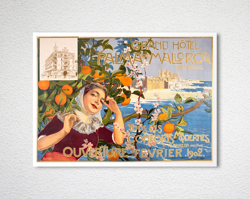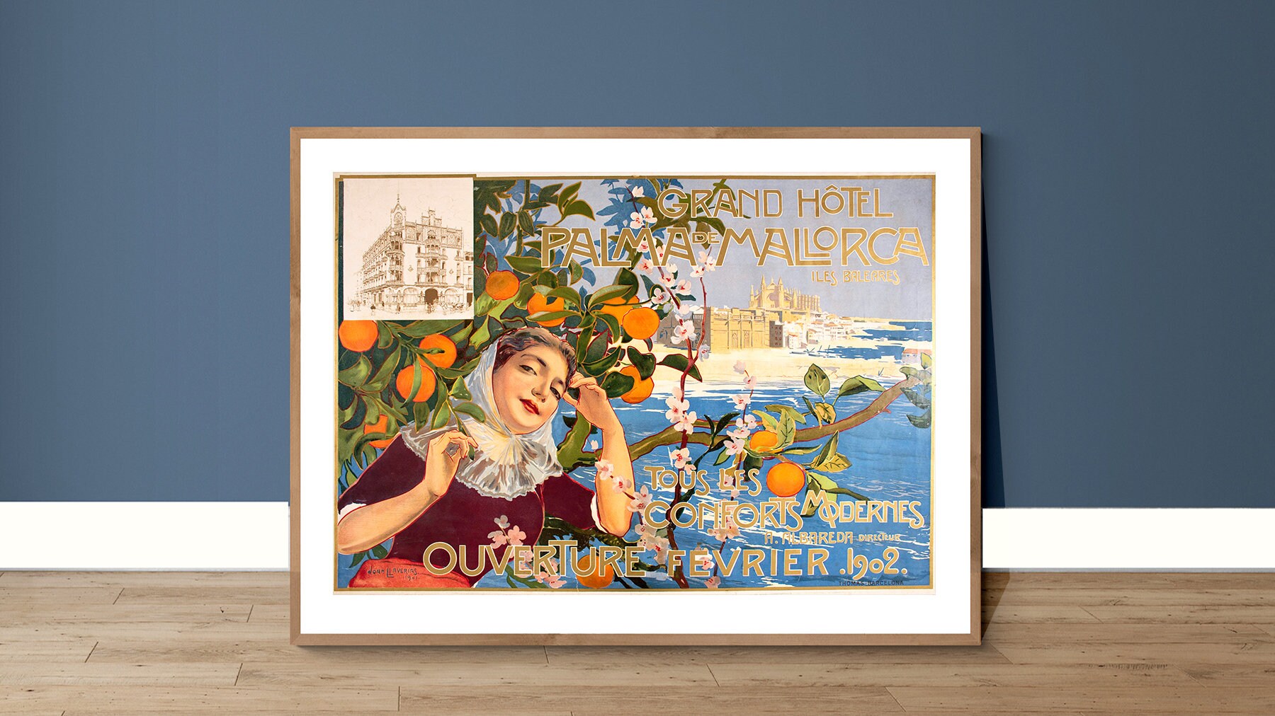 Grand Hotel Palma de Mailorca, Iles Baleares Vintage Travel Poster - Poster Paper or Canvas Print /Gift Idea / Wall Decor