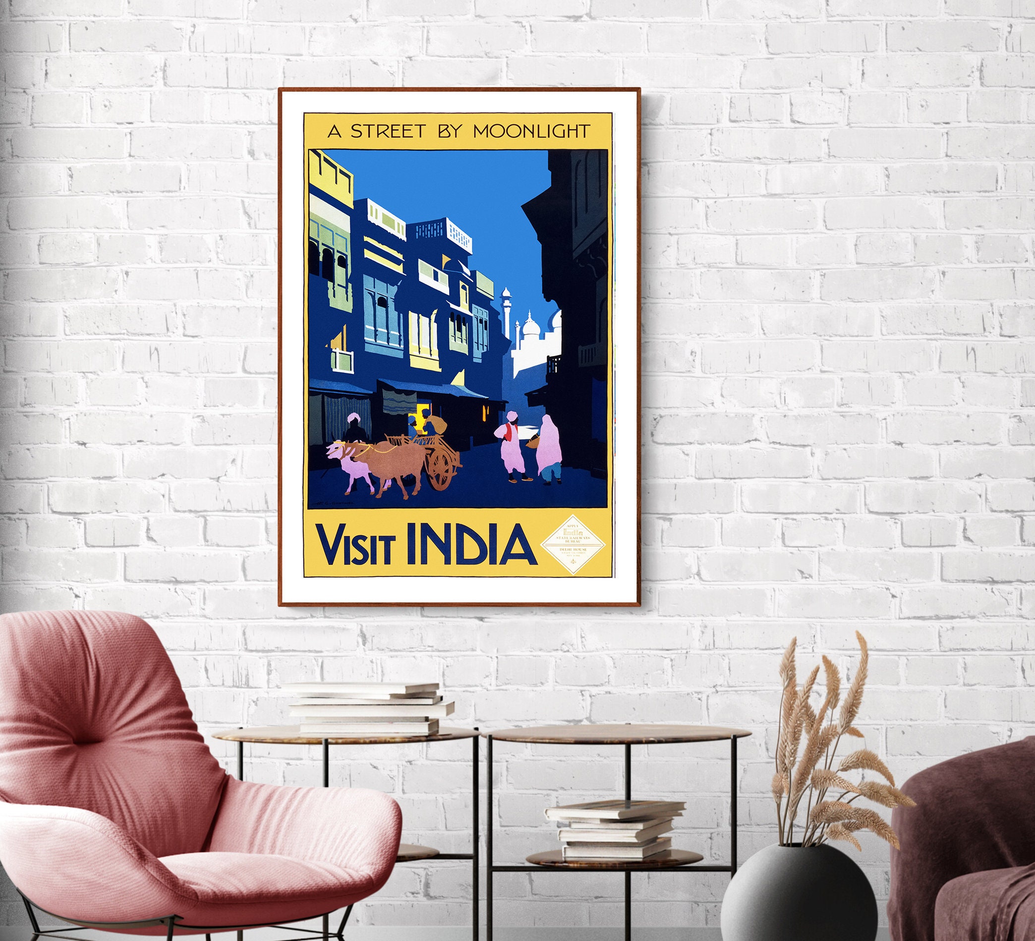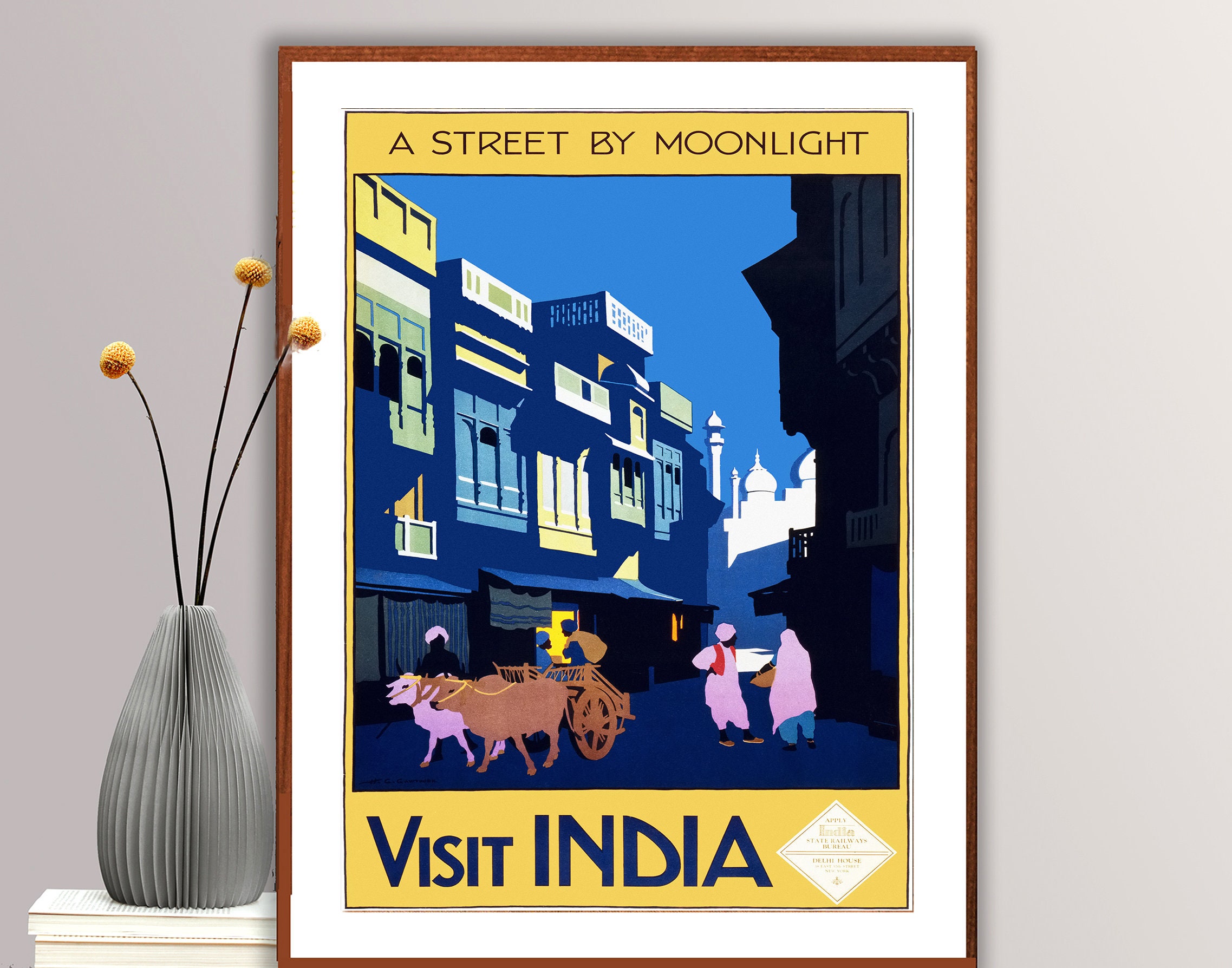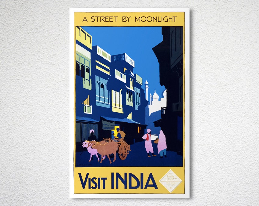 Visit India, A Street by Moonlight Vintage Travel Poster - Poster Paper or Canvas Print / Gift Idea / Wall Decor