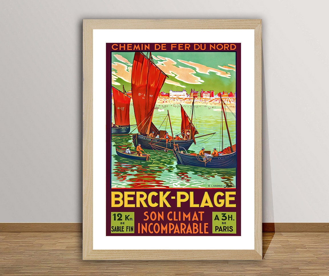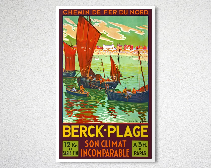 Berck Plage, France Vintage Travel Poster - Poster Paper, Canvas Print / Gift Idea