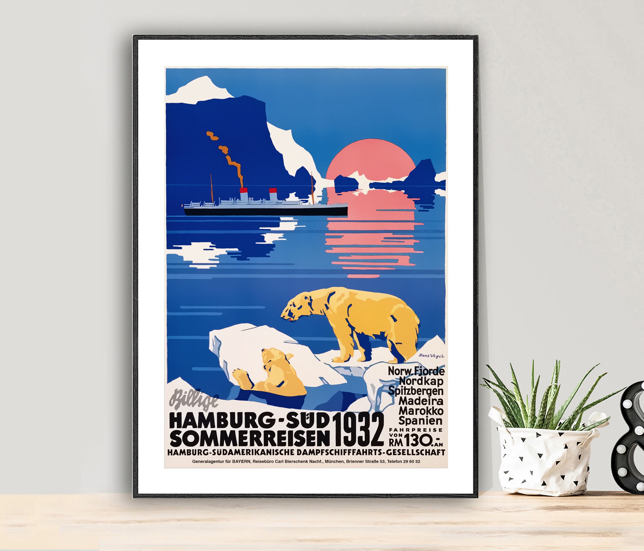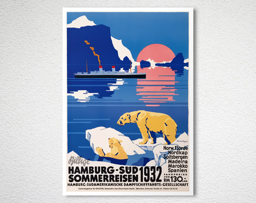Hamburg-Süd 1932 Travel Poster: Arctic Cruise, Polar Bears