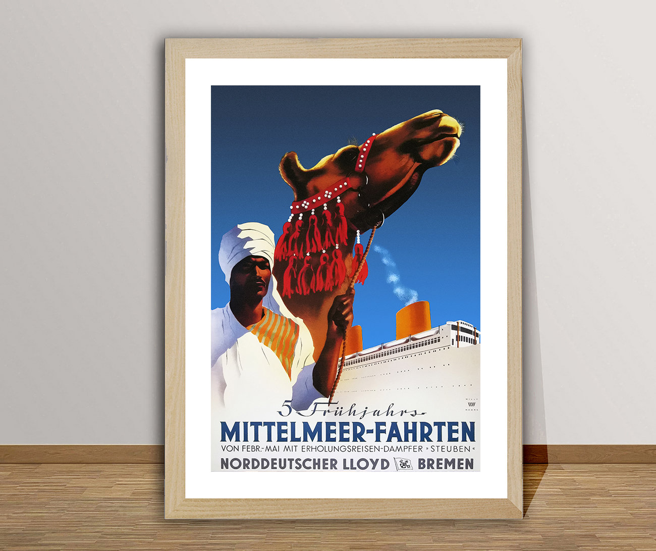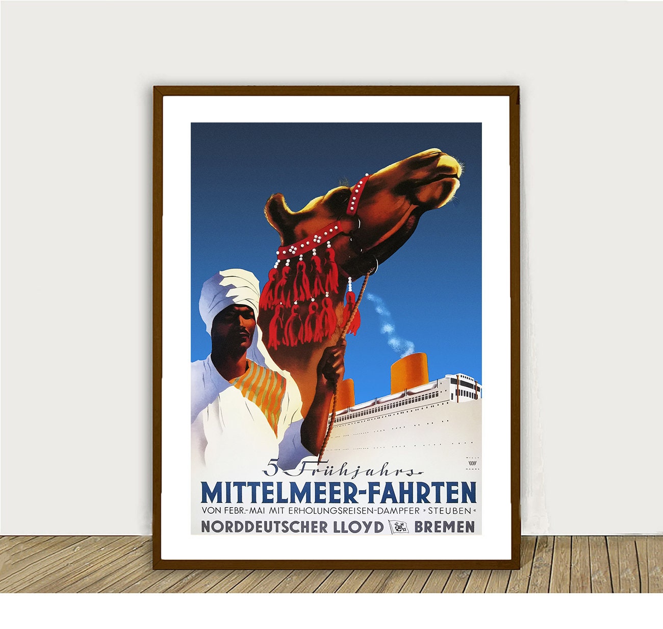 Mittelmeer - Fahrten Norddeutscher Lloyd Bremen Vintage Travel Poster - Poster Paper or Canvas Print
