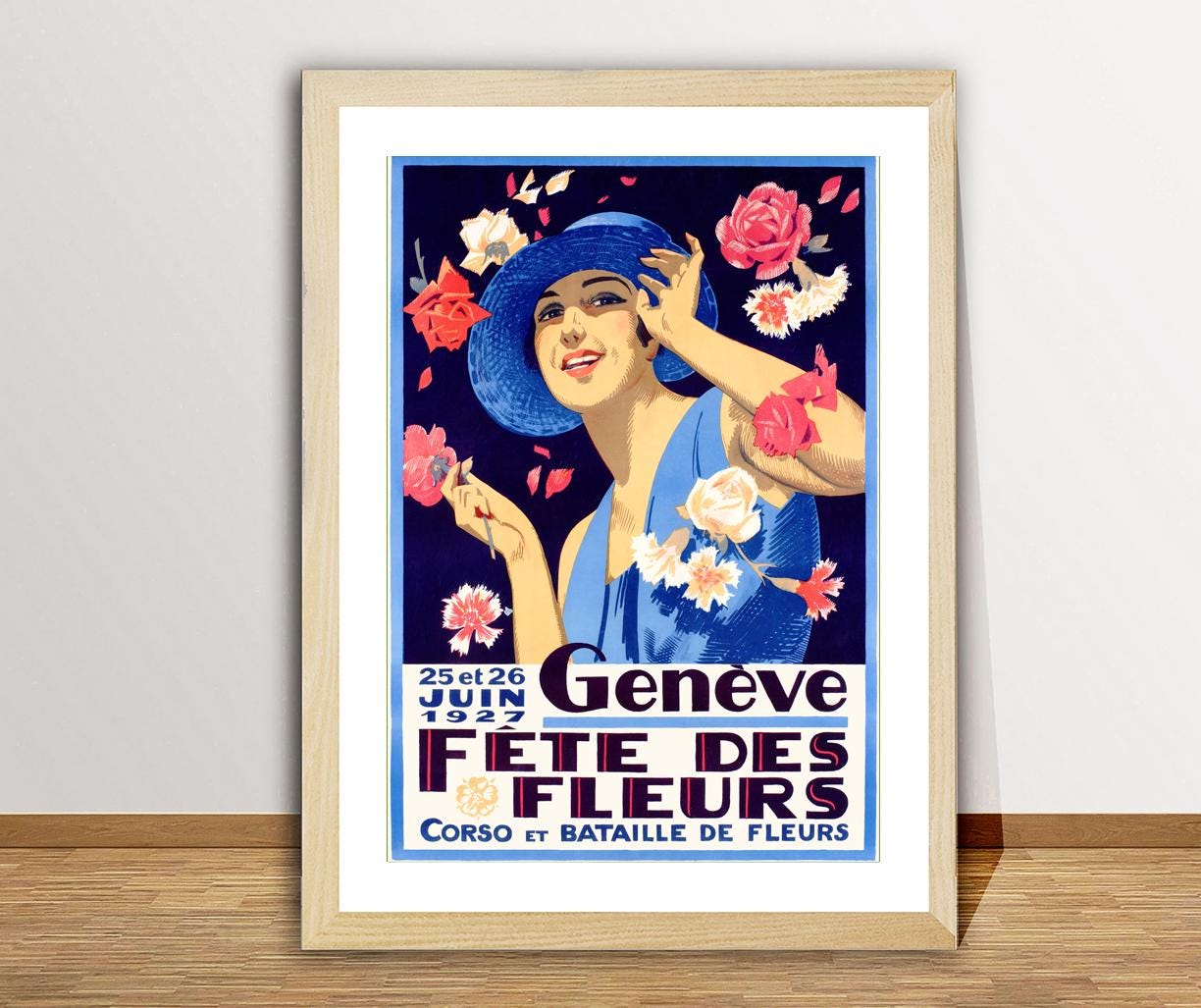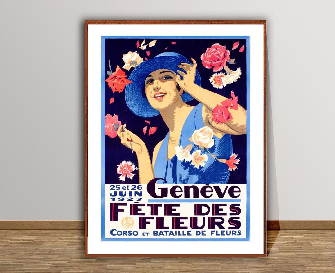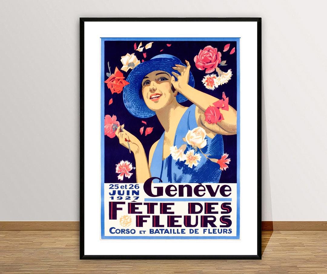 Fête des Fleurs, Corso et Bataille de Fleurs Genève, Suisse Vintage Travel Poster - Poster Paper or Canvas Print / Gift Idea