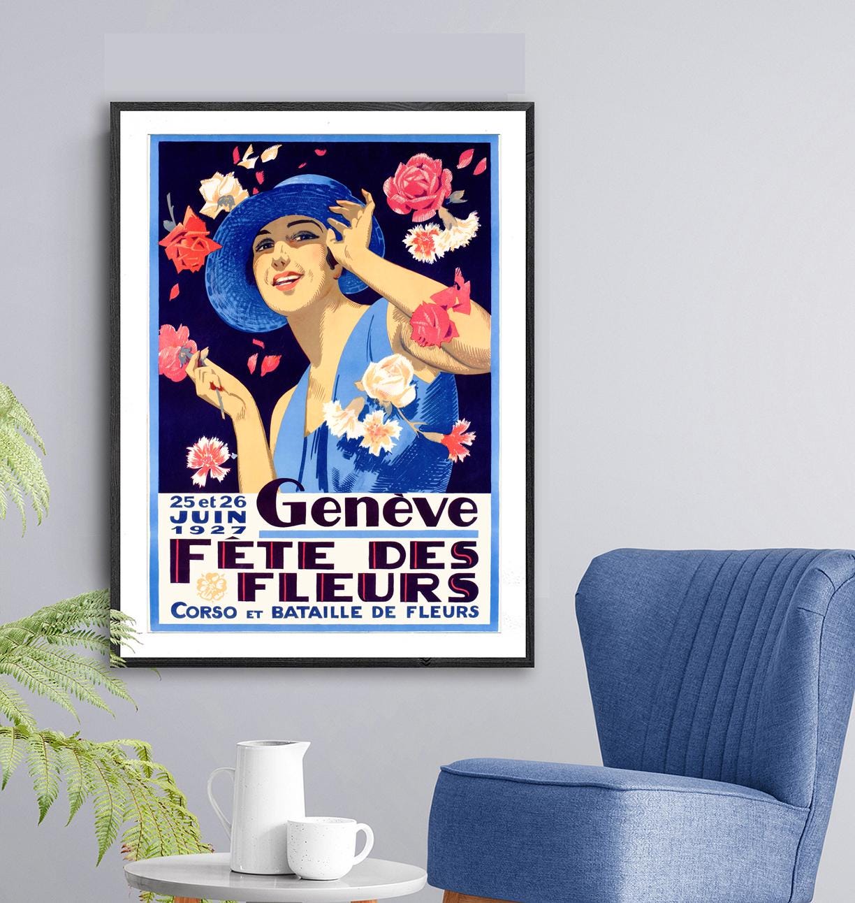 Geneva Flower Festival Vintage Travel Poster Art Print
