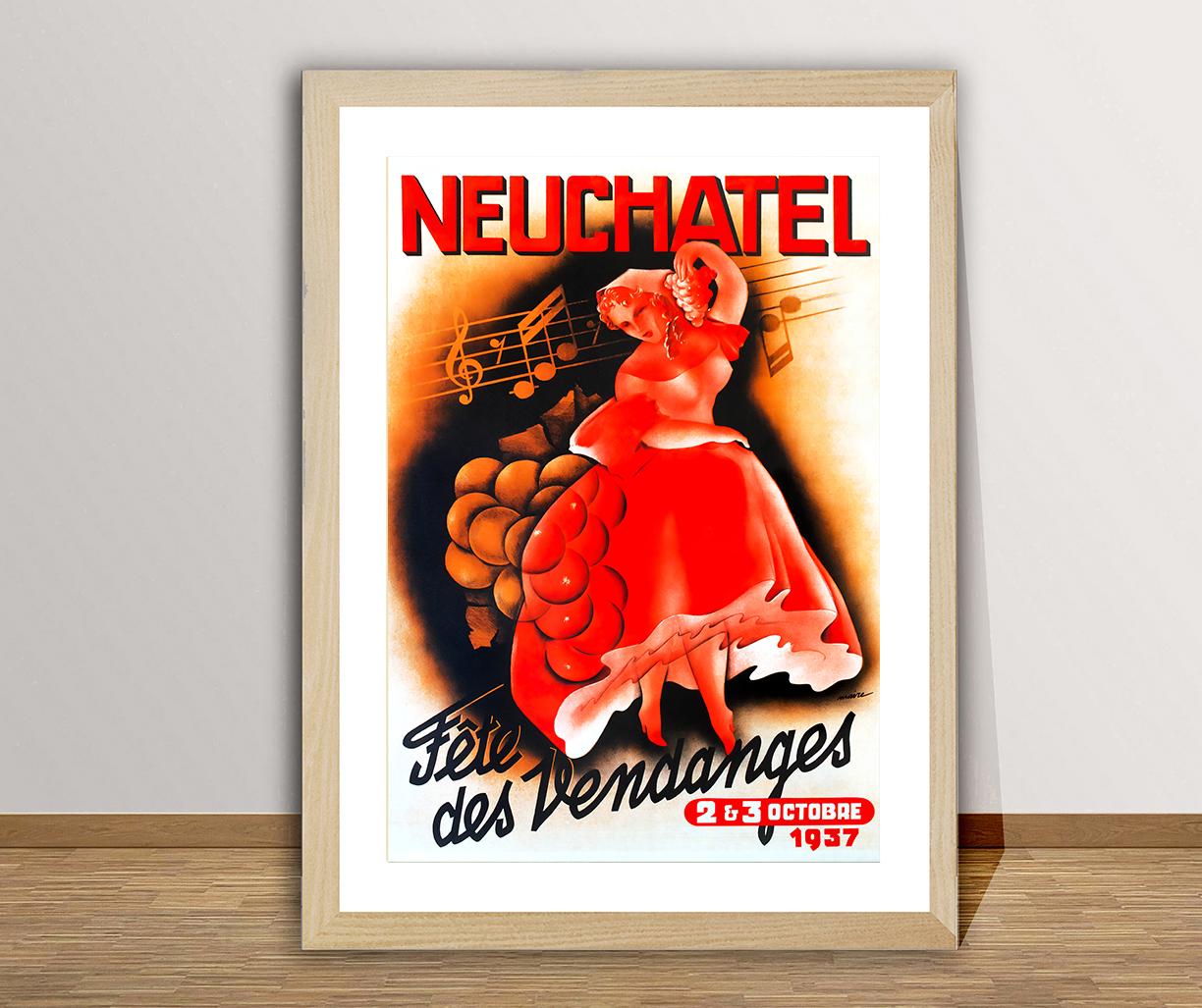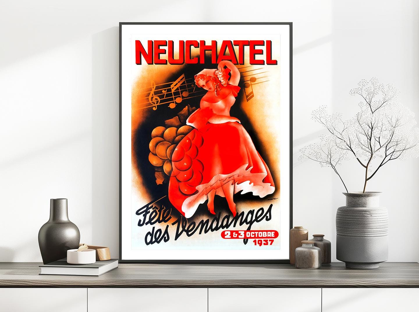 Vintage Neuchatel Grape Harvest Festival Poster: Swiss Travel Art