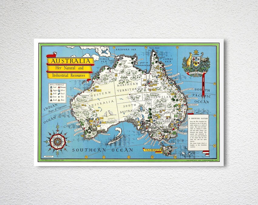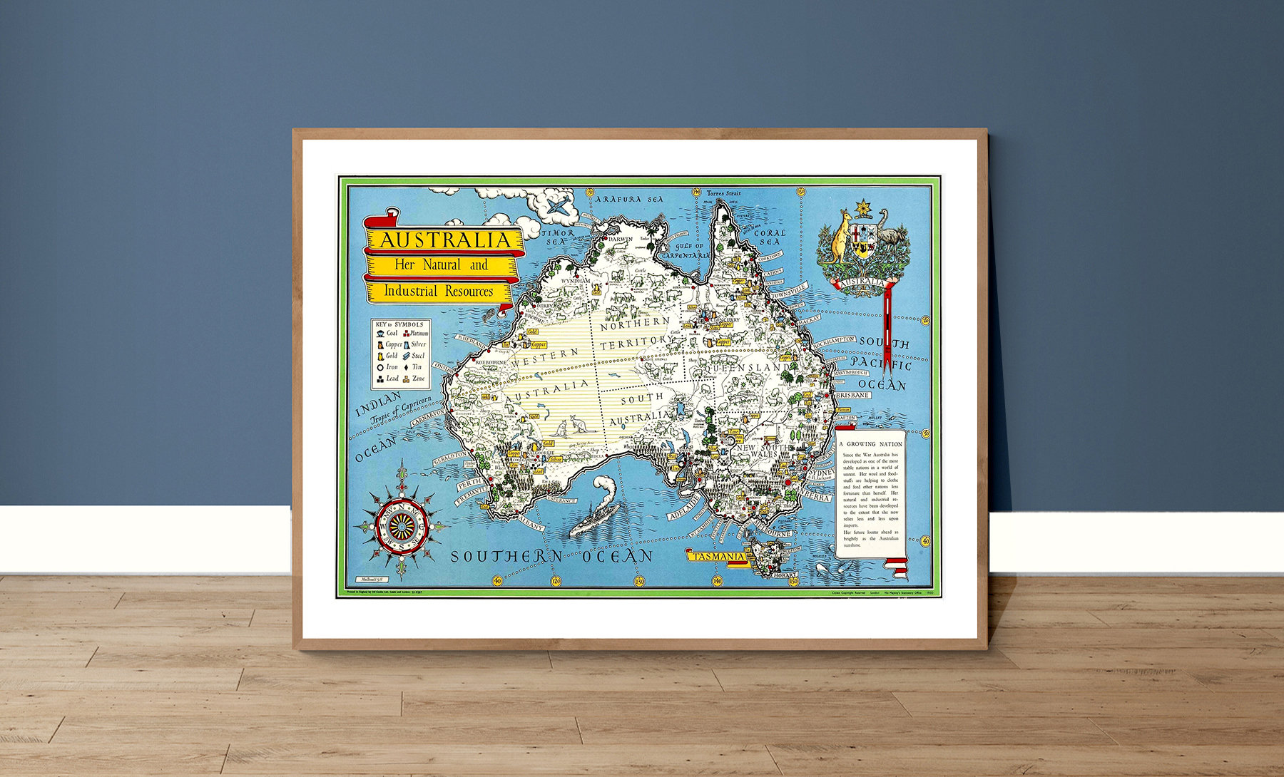 Vintage Australia Map Poster: Natural & Industrial Resources, 1942