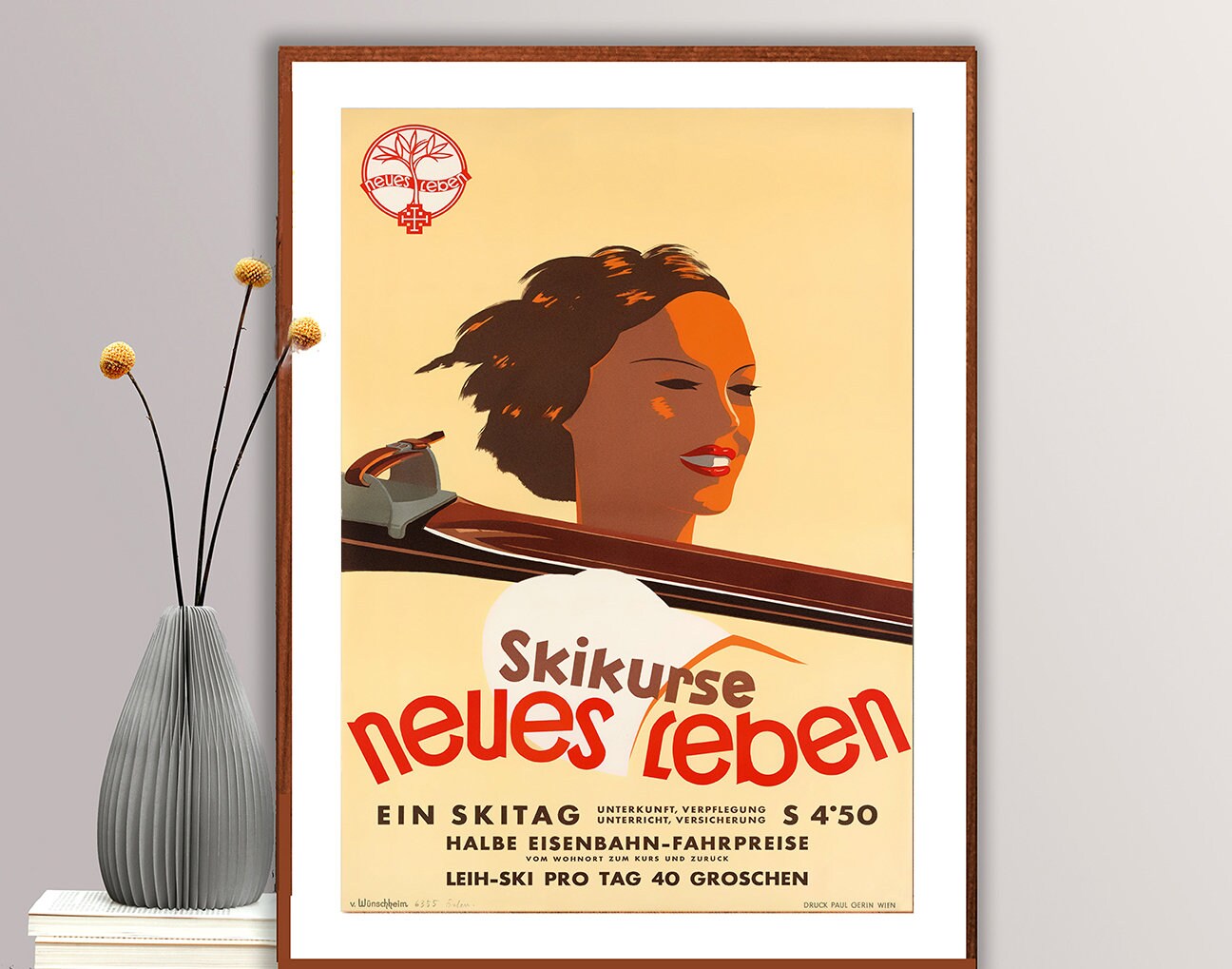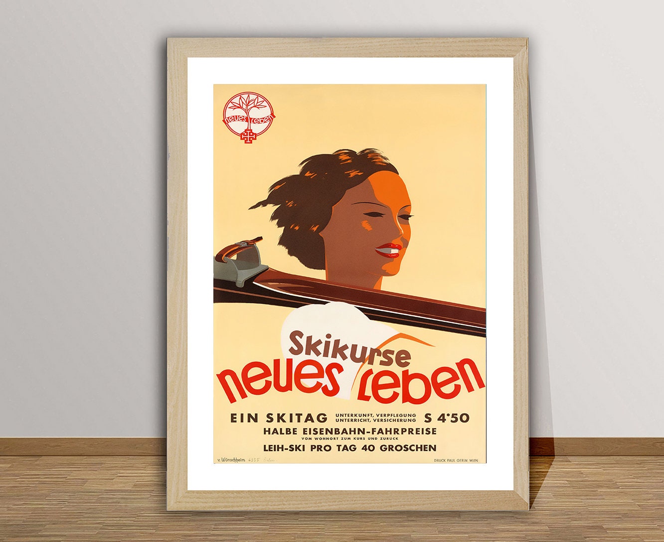 Ski Kurse Neues Leben, Ein Skitag Vintage Ski Poster - Poster Paper or Canvas Print