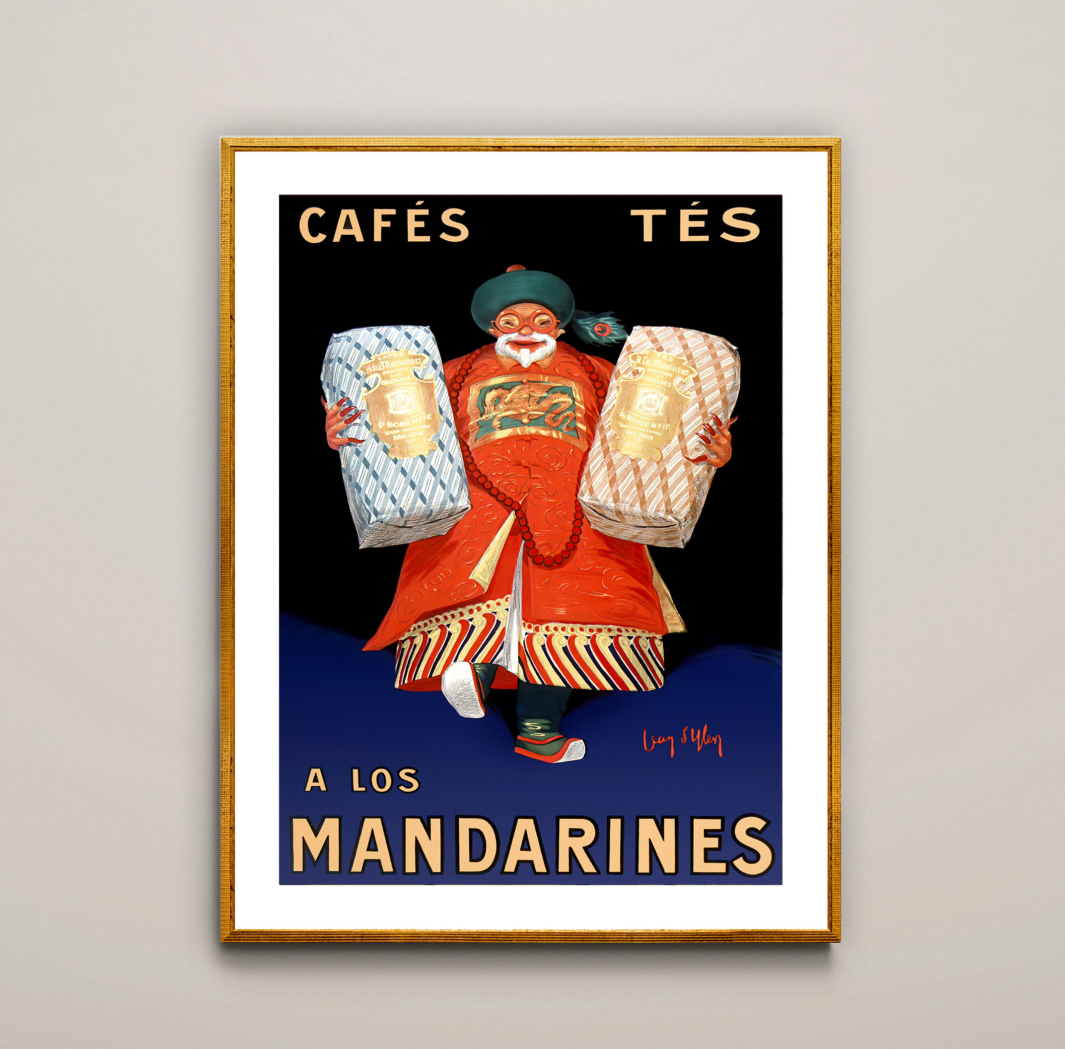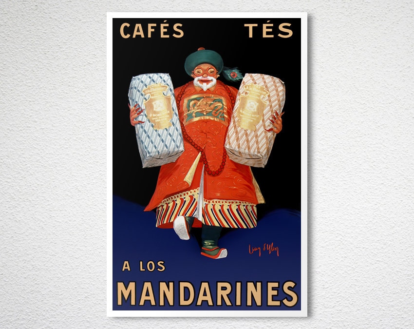 Vintage Cafes Tes, A Los Mandarines Advertisement Art Print - Reproduction of a Vintage Artwork, Decorative Purposes Wall Decor - Poster Paper or Canvas Print
