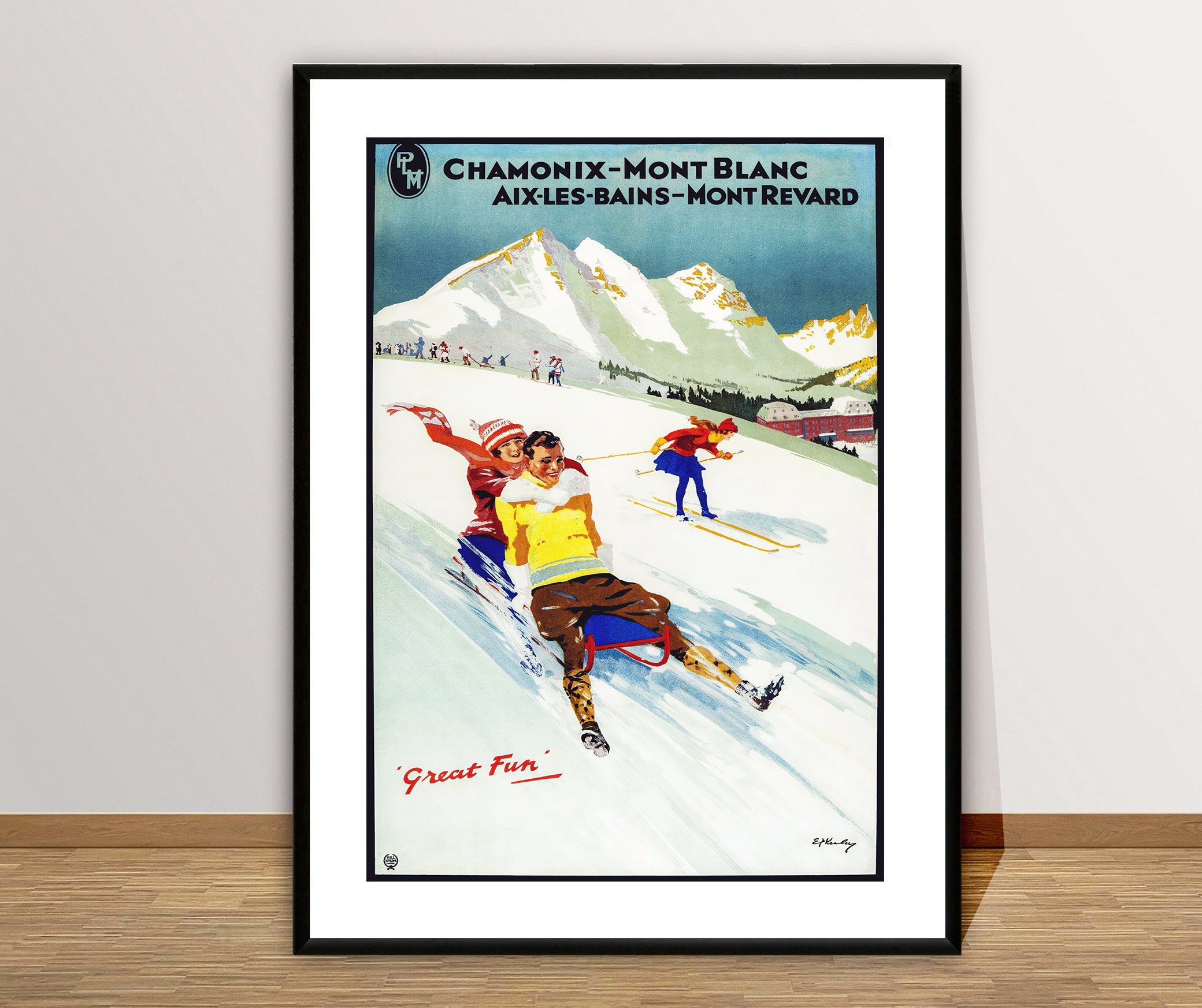 Chamonix Mont Blanc, Aix Les Bains, Mont Revard Vintage Travel Poster - Poster Paper or Canvas Print