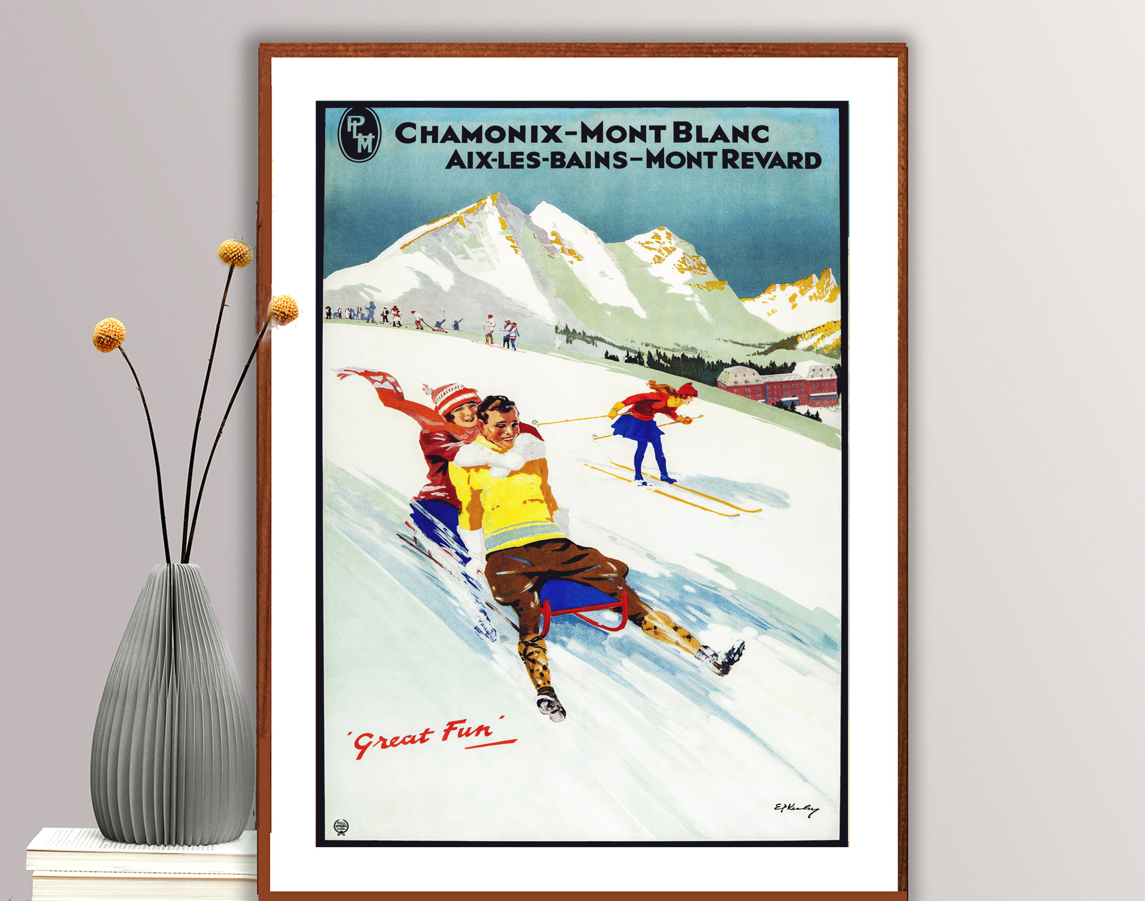 Chamonix Mont Blanc Vintage Ski Poster: Travel Wall Art