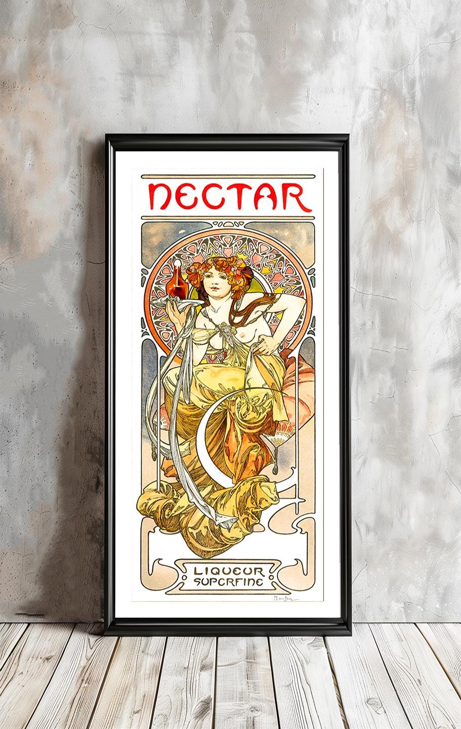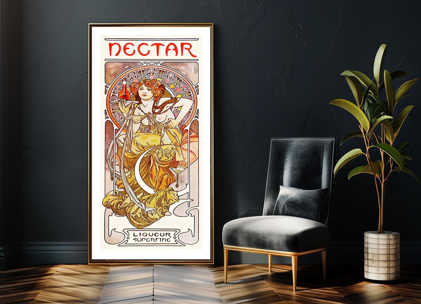Vintage Nectar Liqueur Art Print: 1902 Alphonse Mucha Reproduction