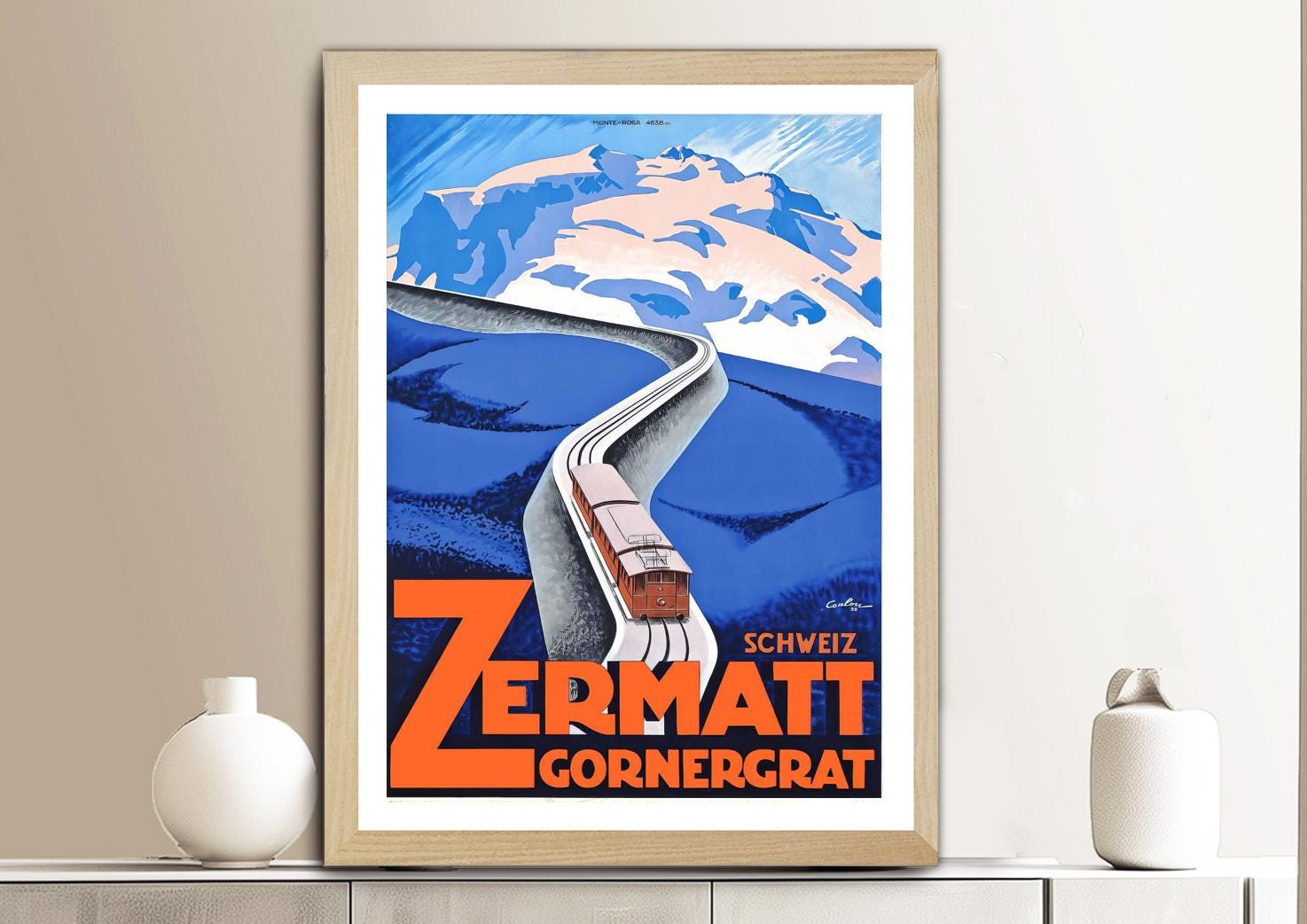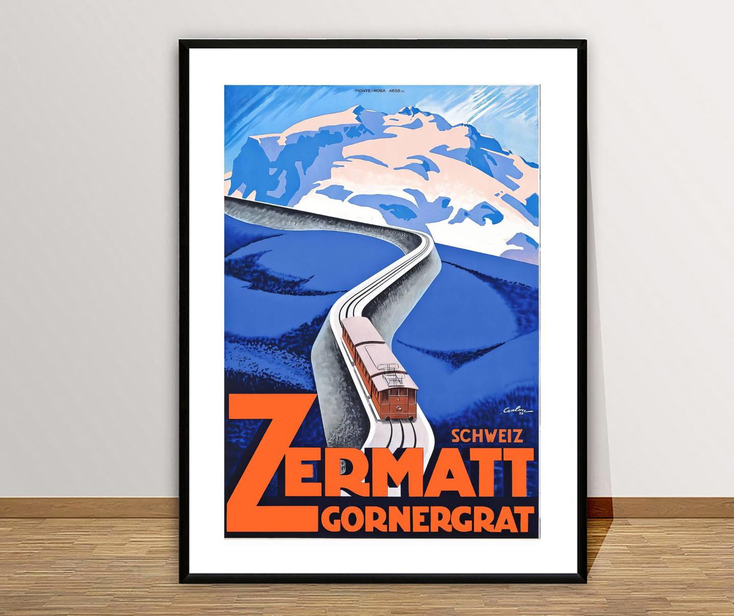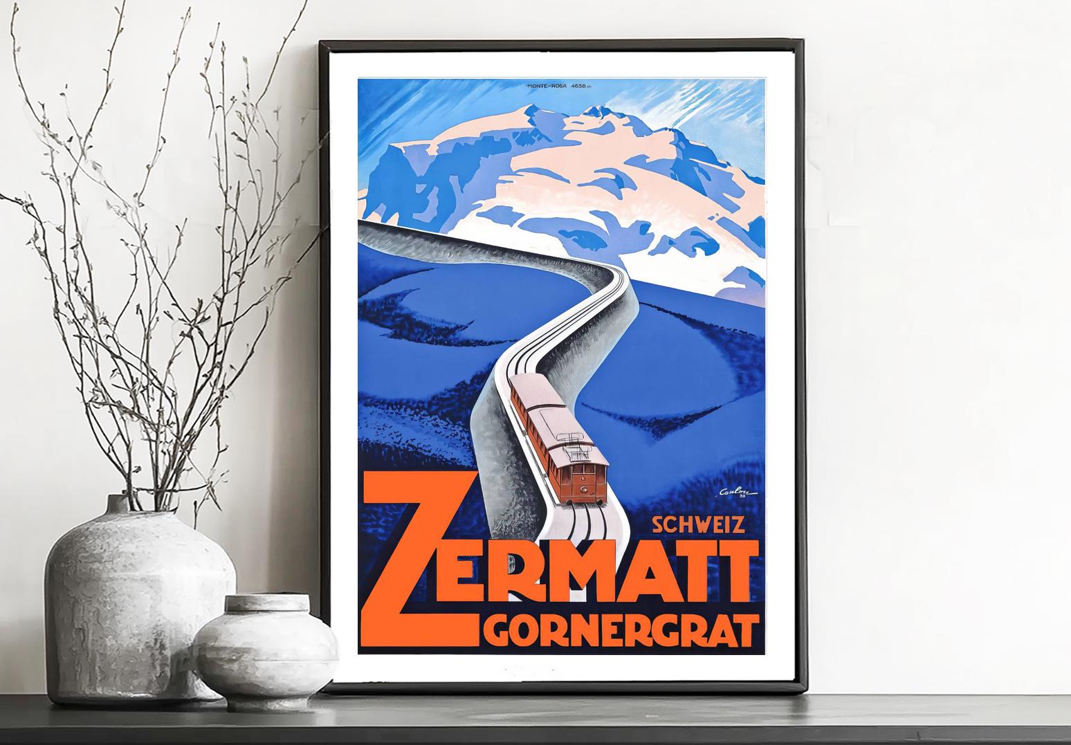 Vintage Zermatt Ski Poster: Swiss Alps Travel Print