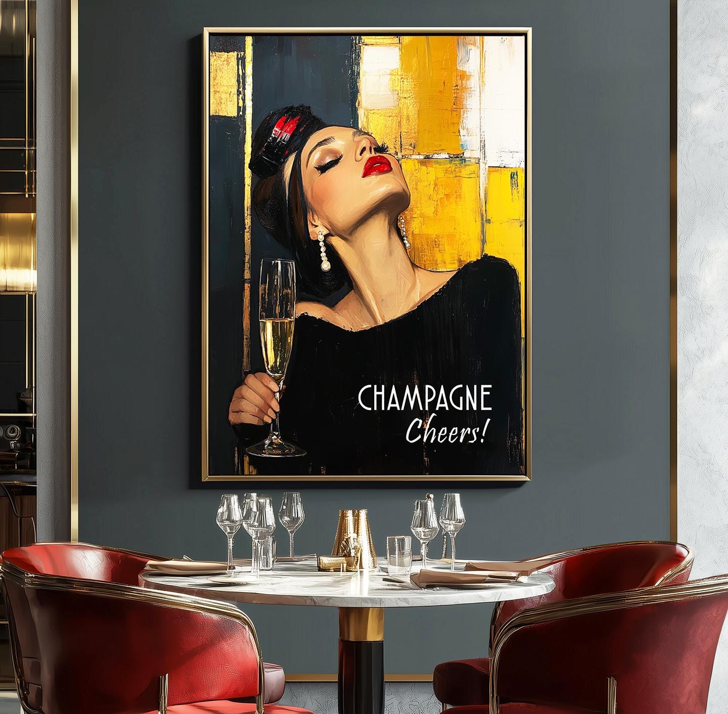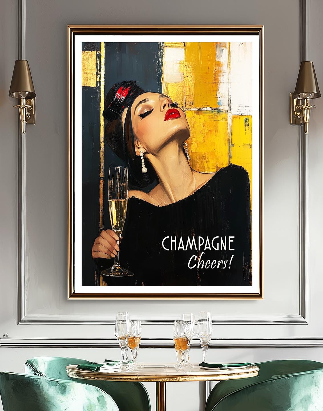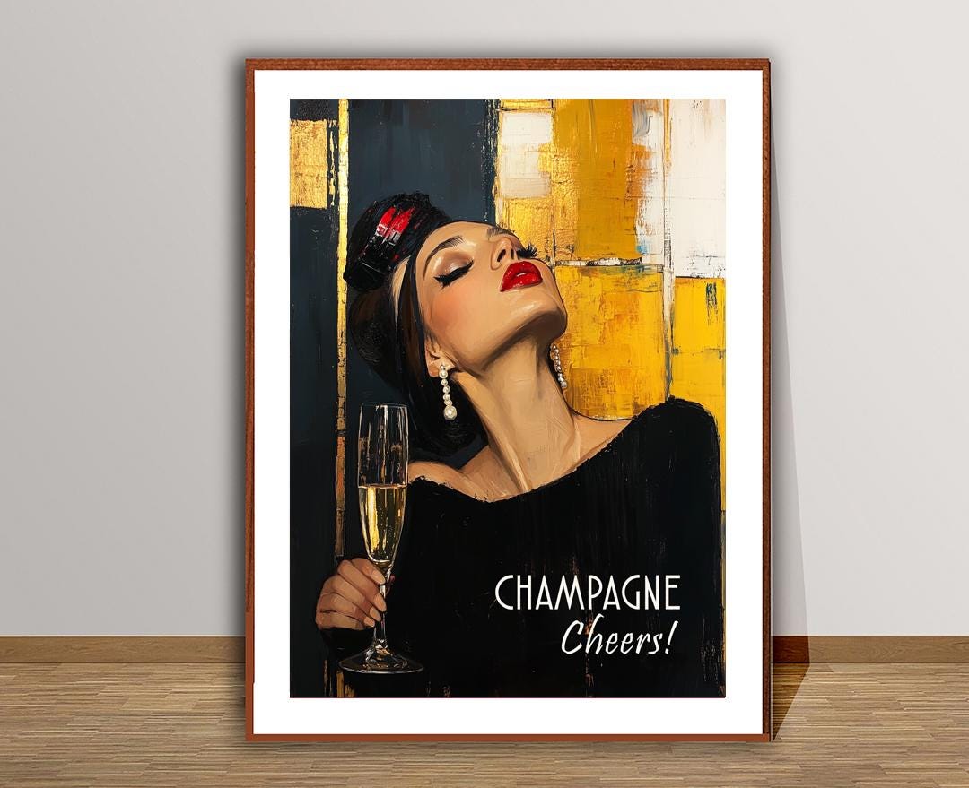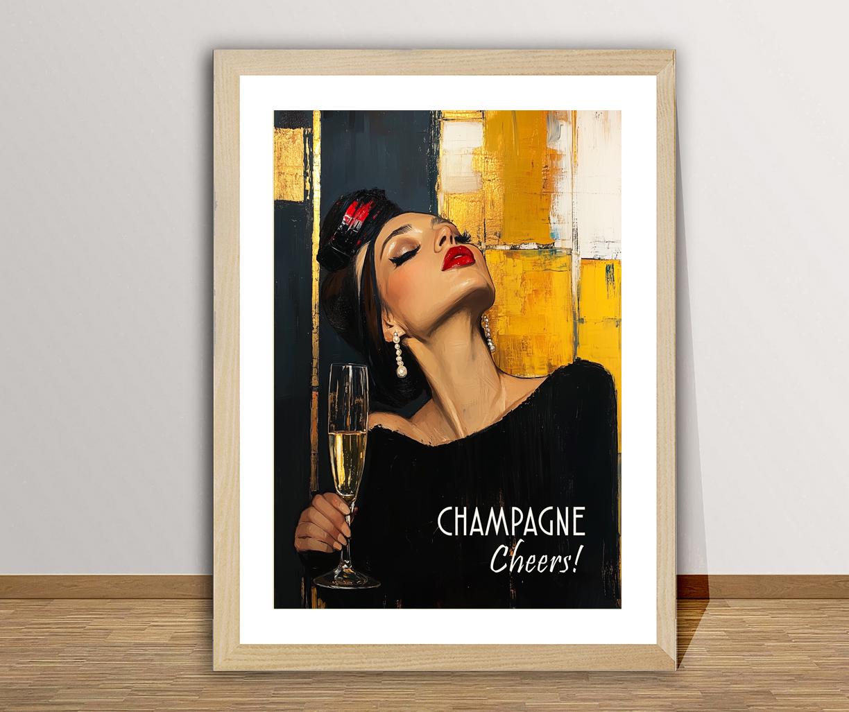 Champagne Cheers Poster: Modern Bar Wall Art (Digital Download JPEG File)