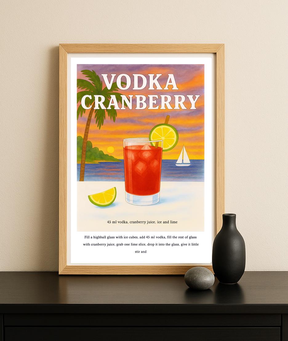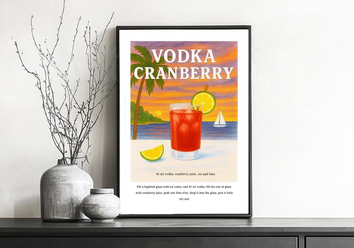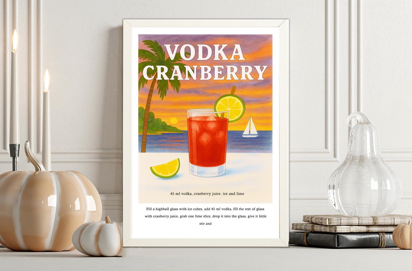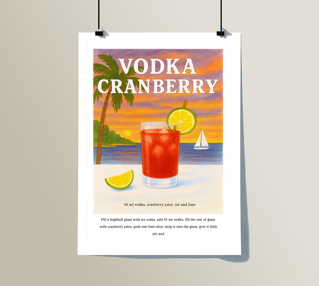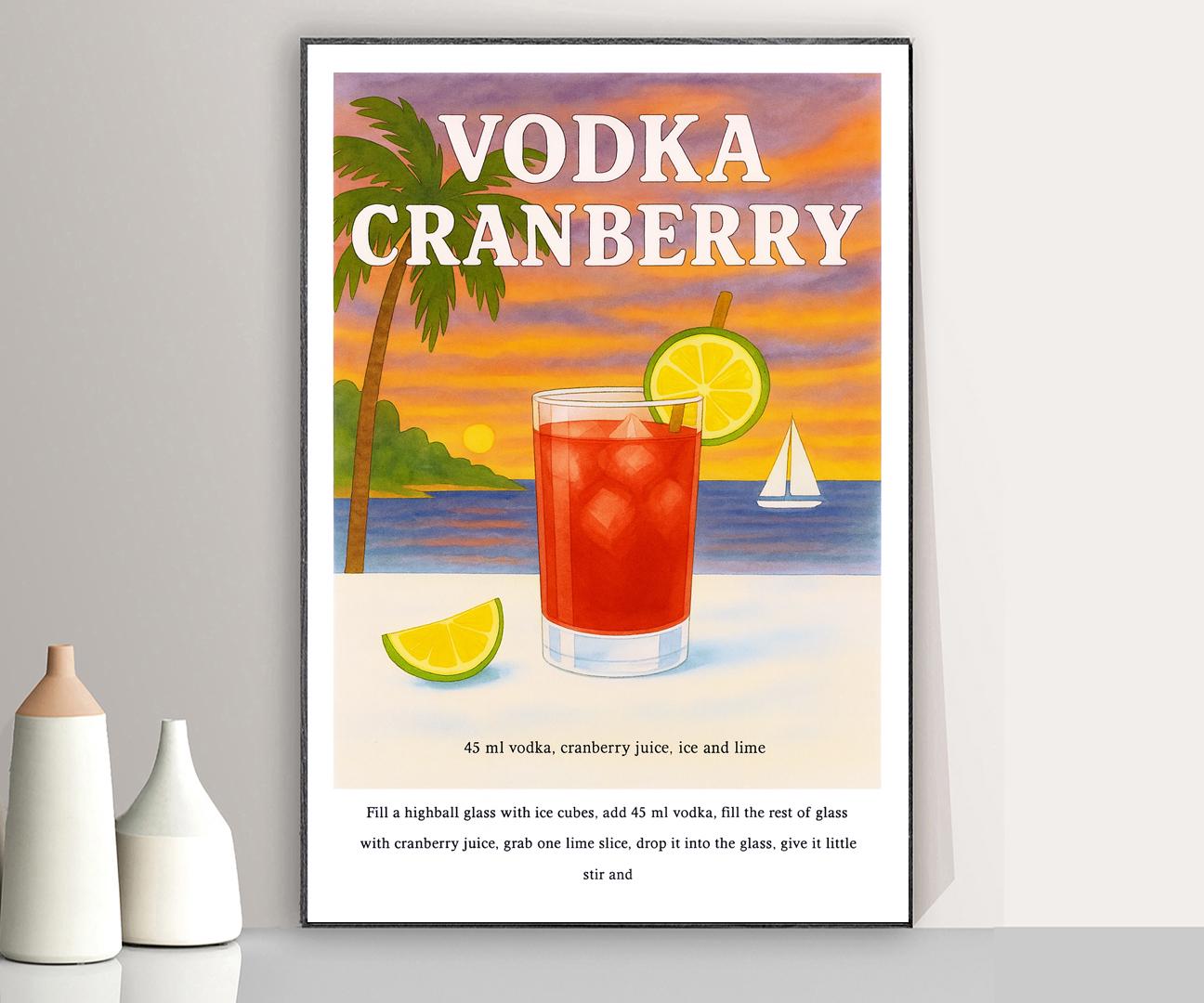 Vodka Cranberry Cocktail Recipe Poster: Vintage Beverage Art Print