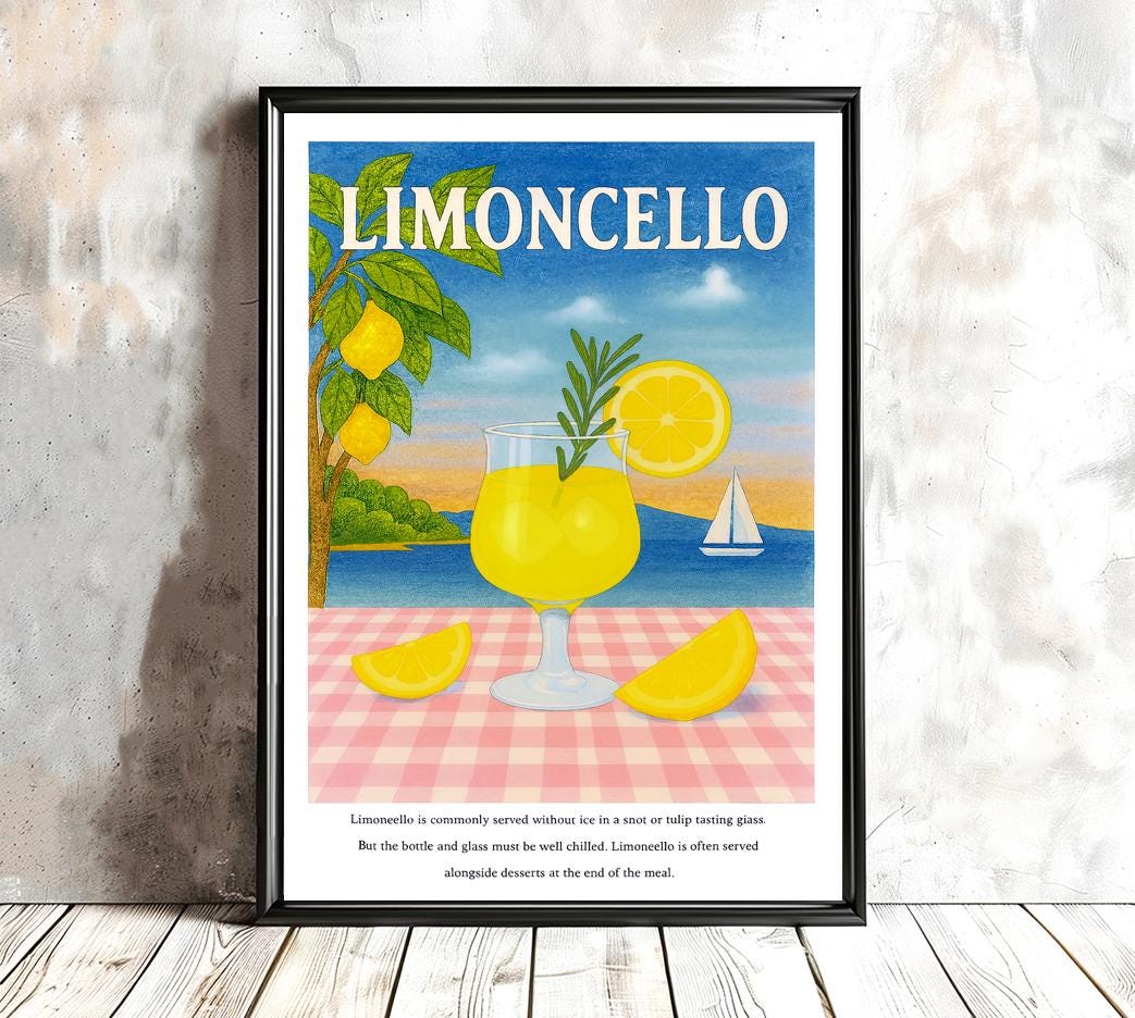 Limoncello Cocktail Recipe Poster: Summer Beverage Art Print