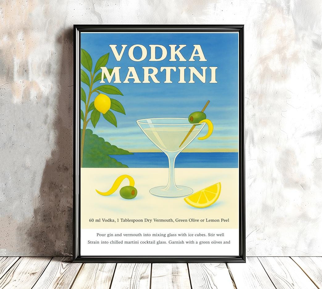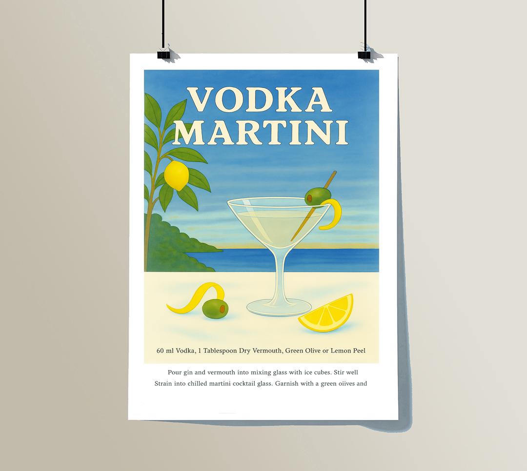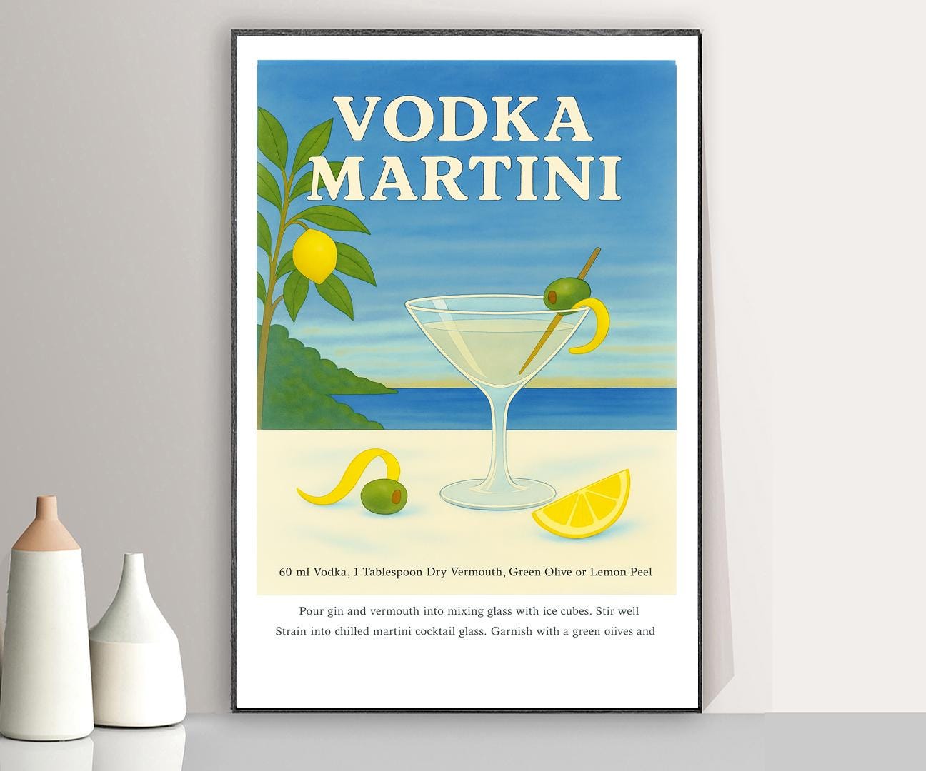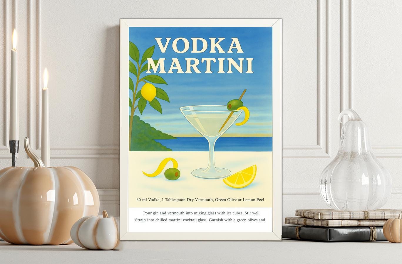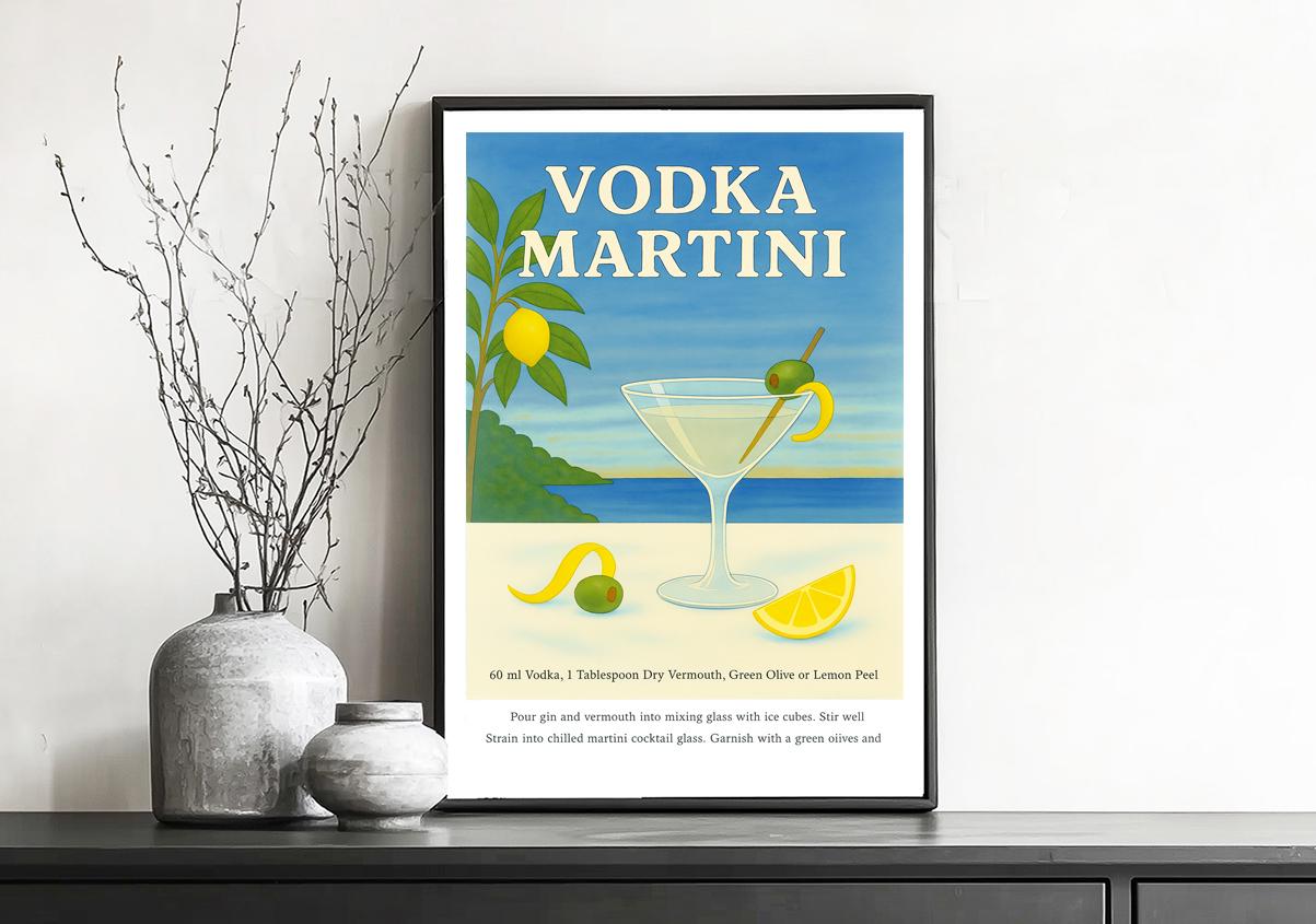 Vodka Martini Cocktail Recipe Poster: Summer Beverage Art