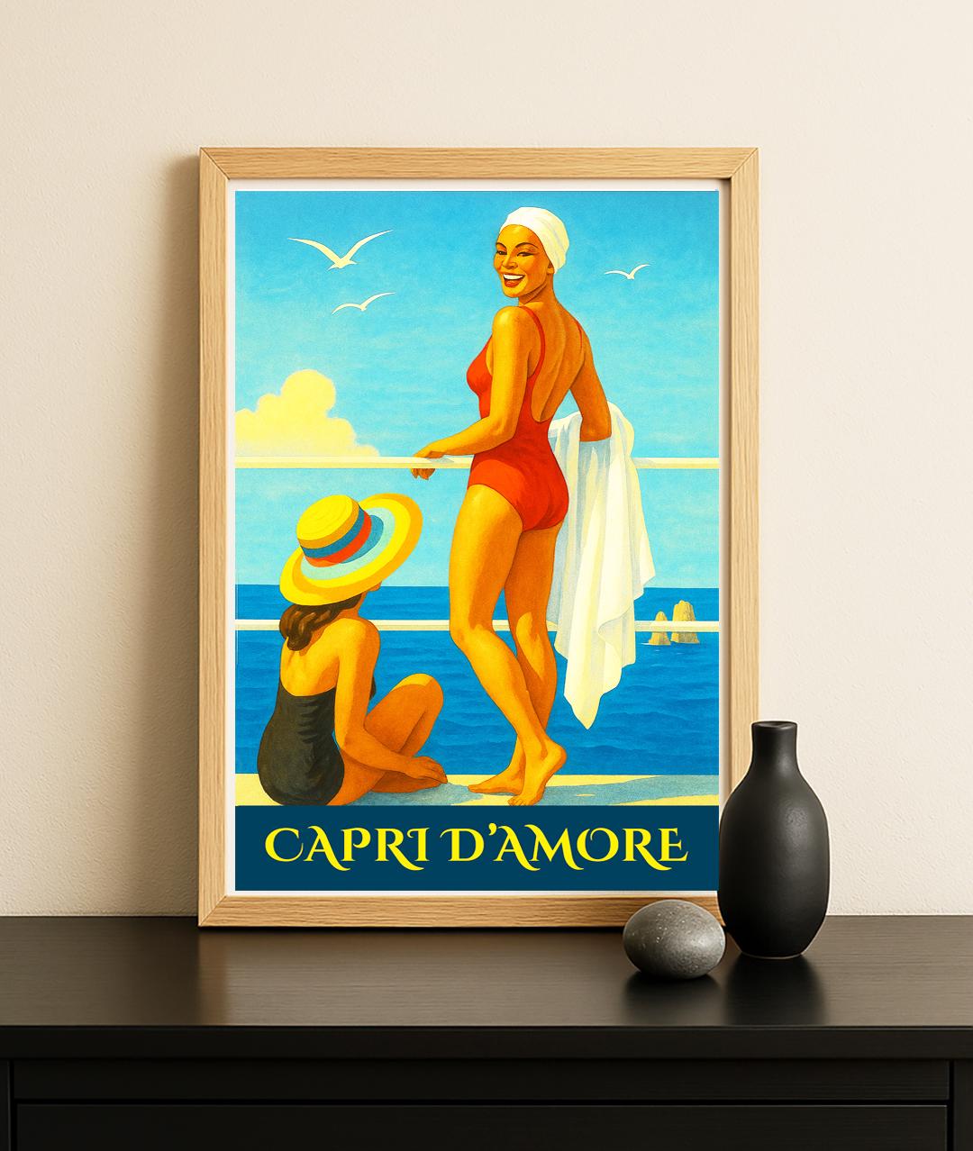 Capri d'Amore, Italy Travel Poster - Estate Italiana, Capri Summer Days, Romantic Coastal Decor