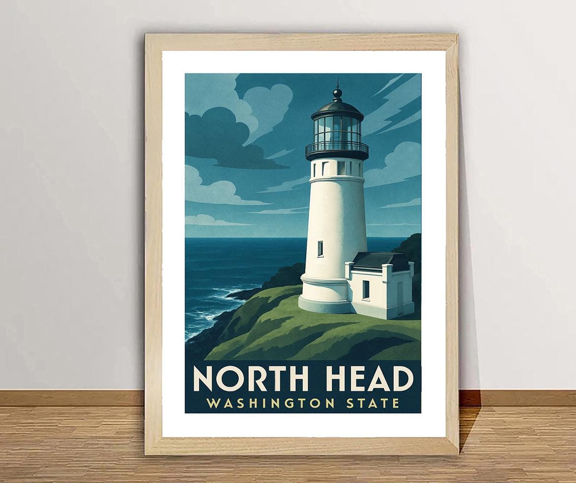 North Head Lighthouse, Washington State, United States Travel Poster - Poster Paper, Canvas Print / Gift Idea