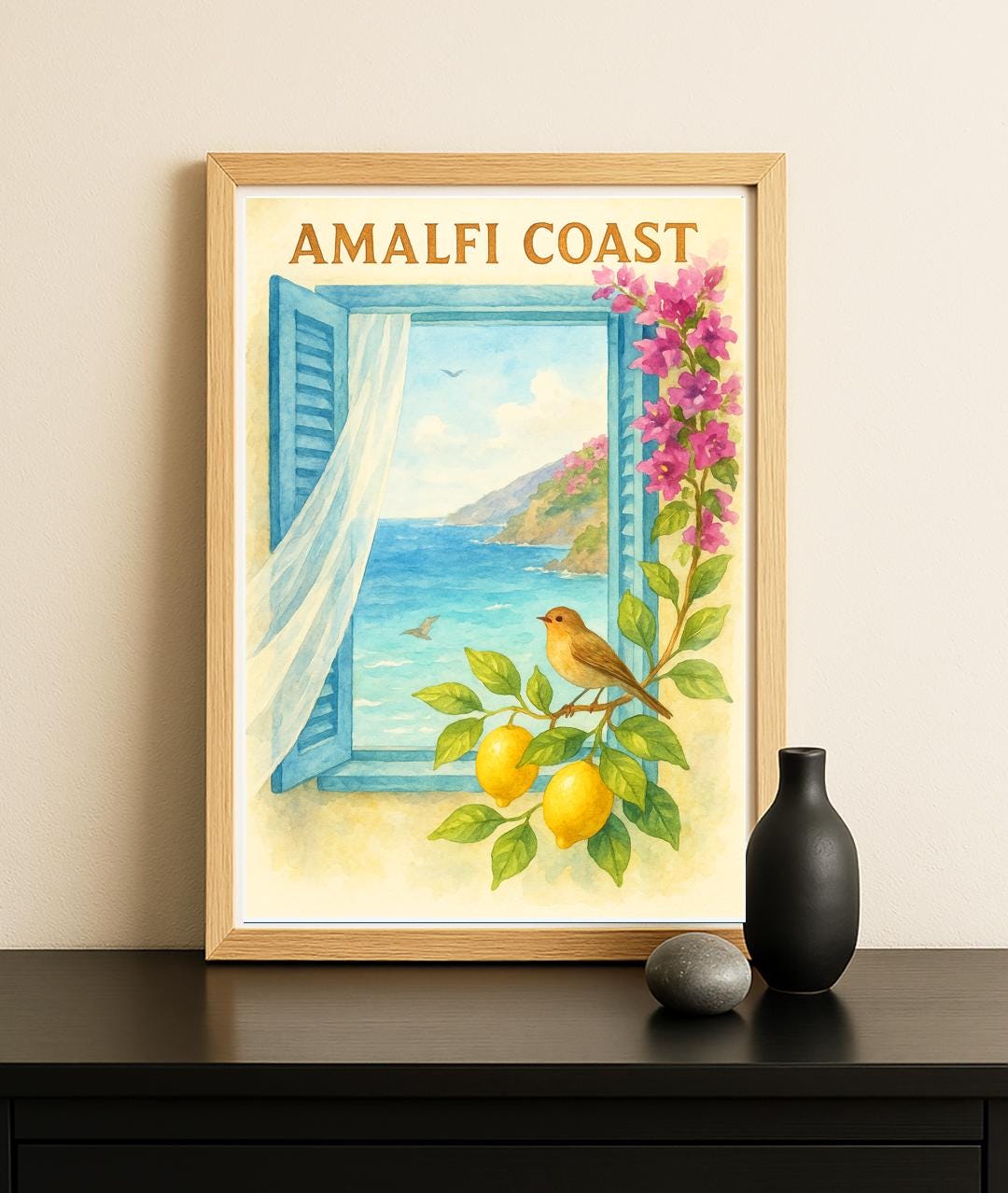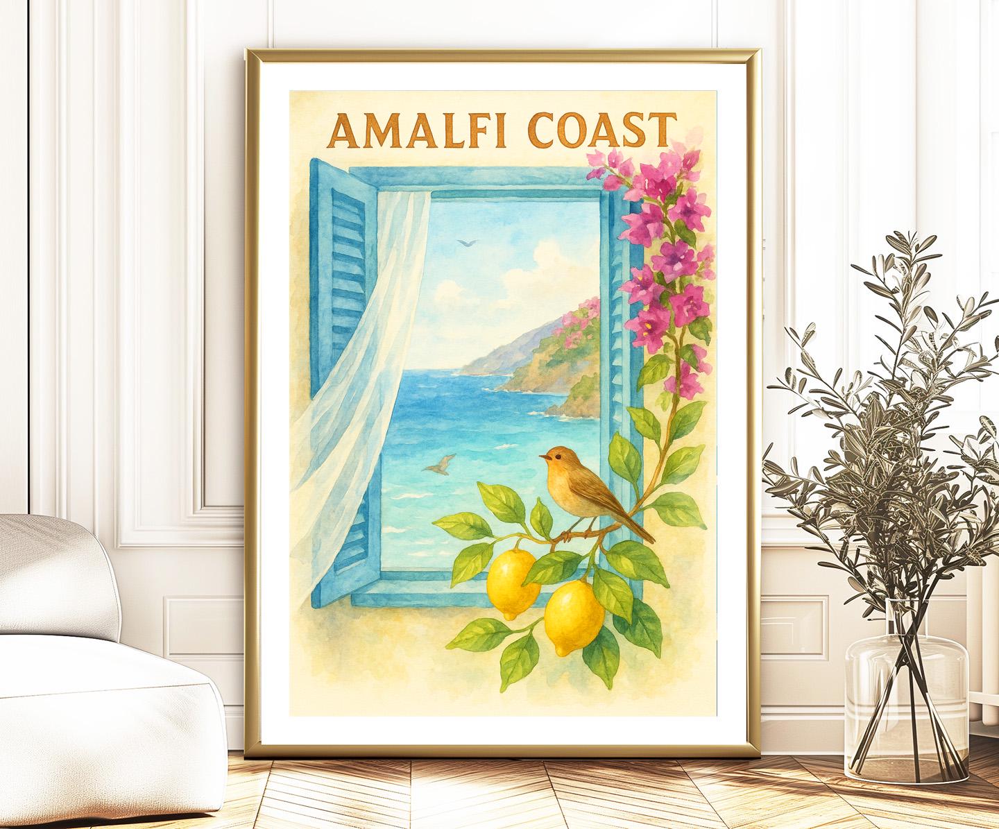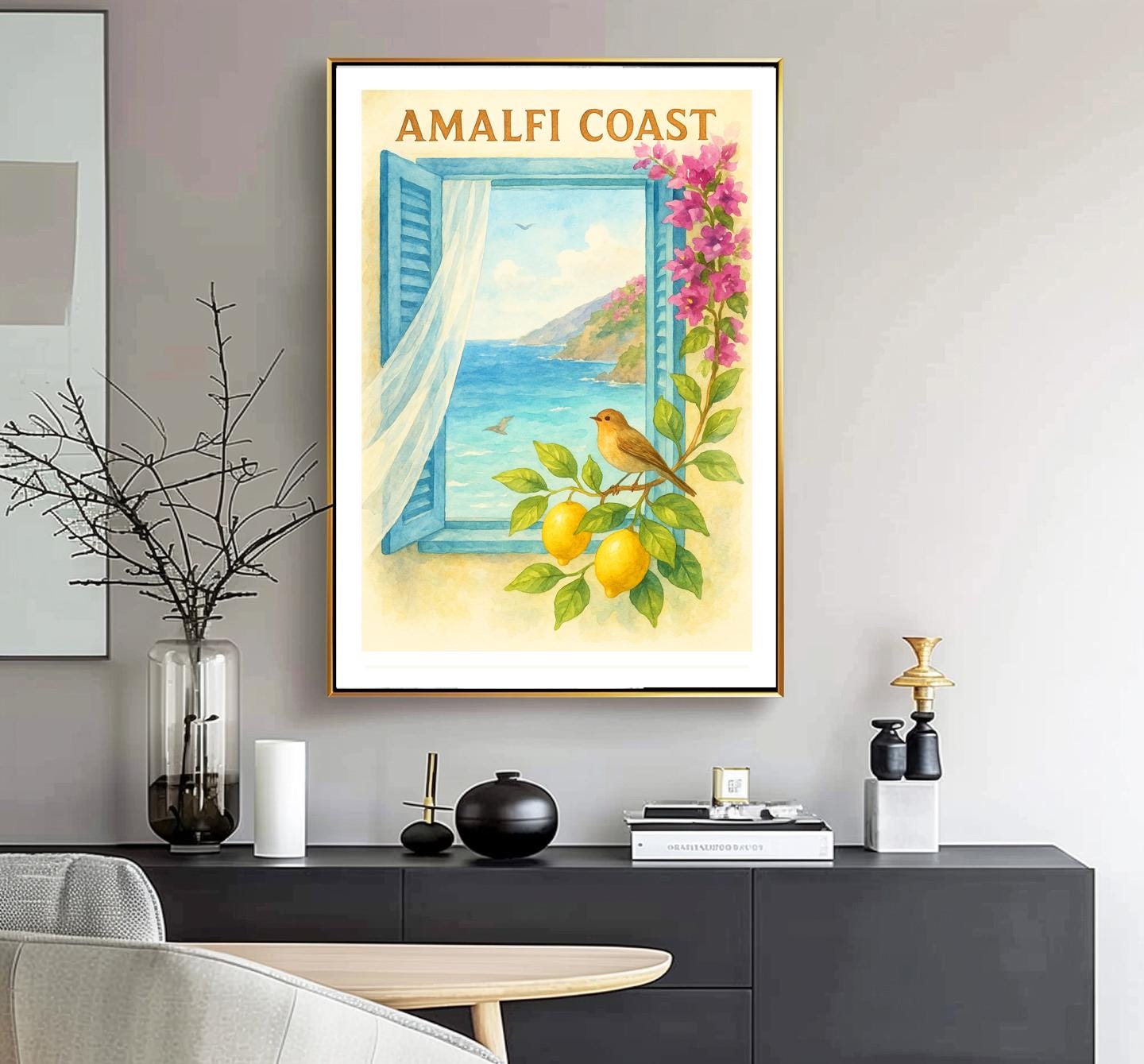 Amalfi Coast Vintage Travel Poster: Mediterranean Dream, Italy
