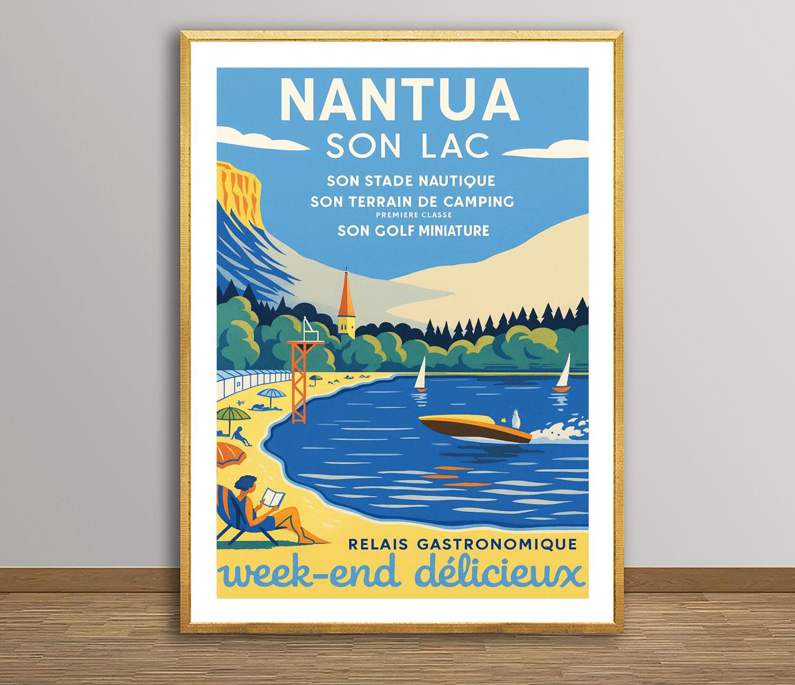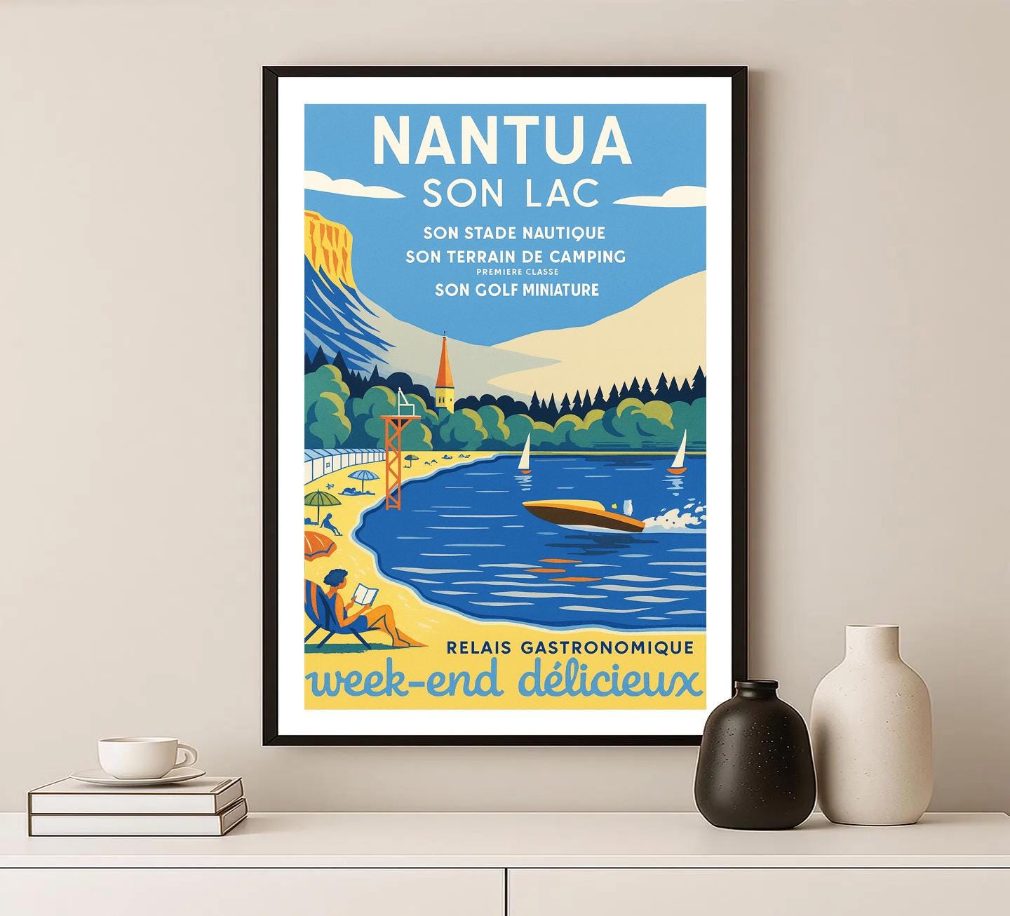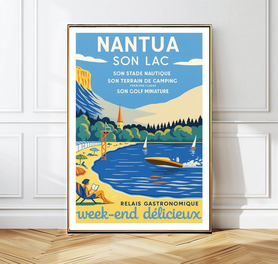 Lake Nantua France Travel Poster: Vintage Historic Town Print