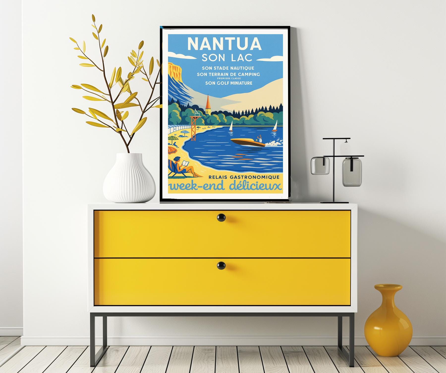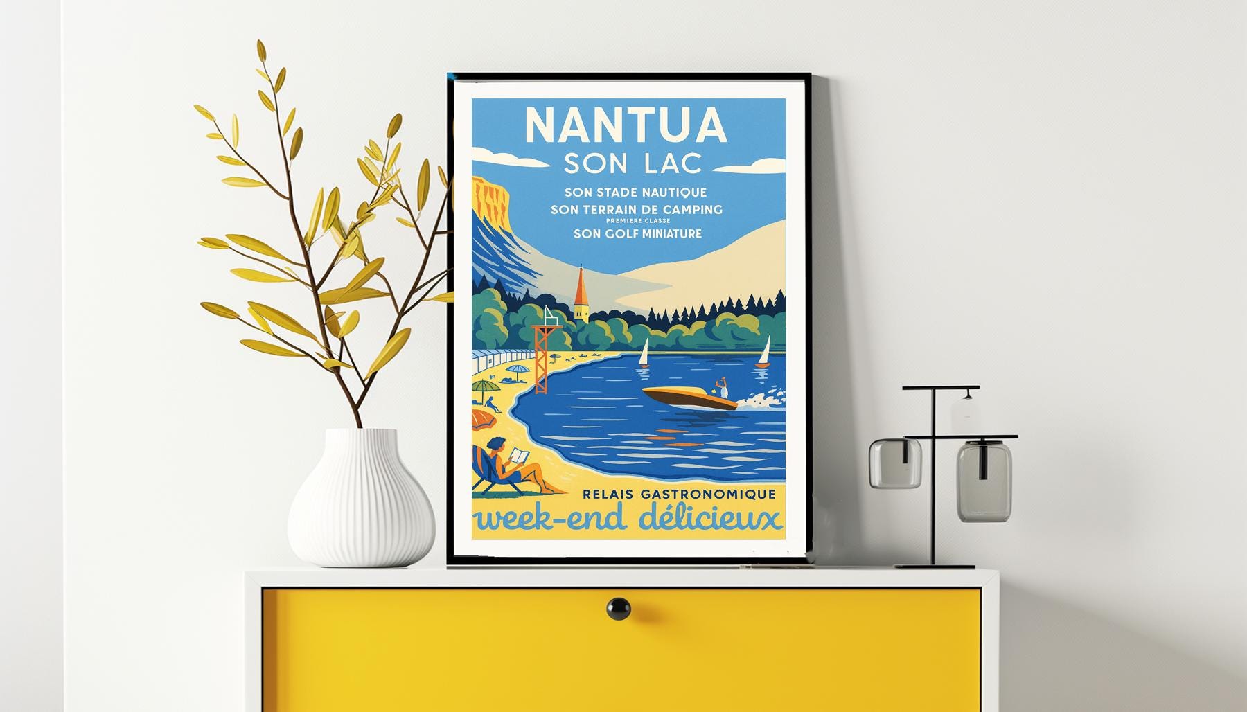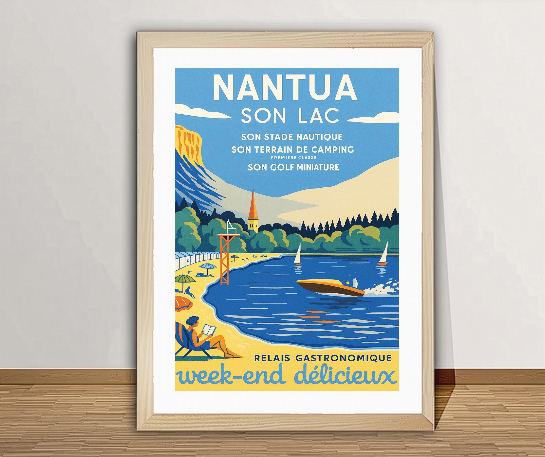 Lake Nantua France Travel Poster: Vintage Historic Town Print