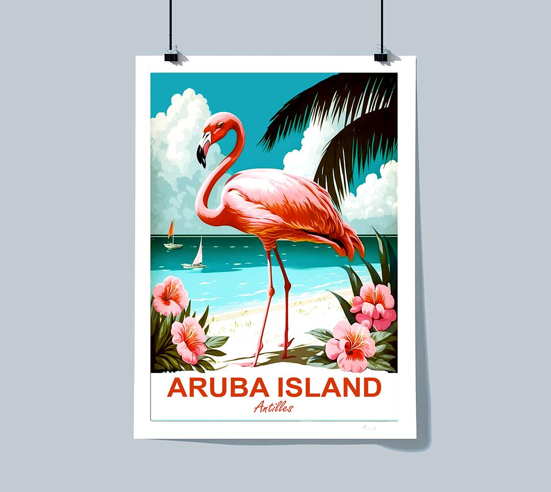 Aruba Island Flamingo Print: Antilles Caribbean Poster (Digital Download)