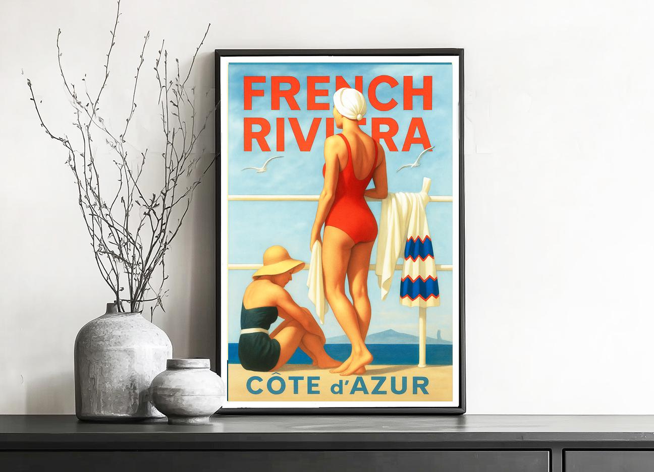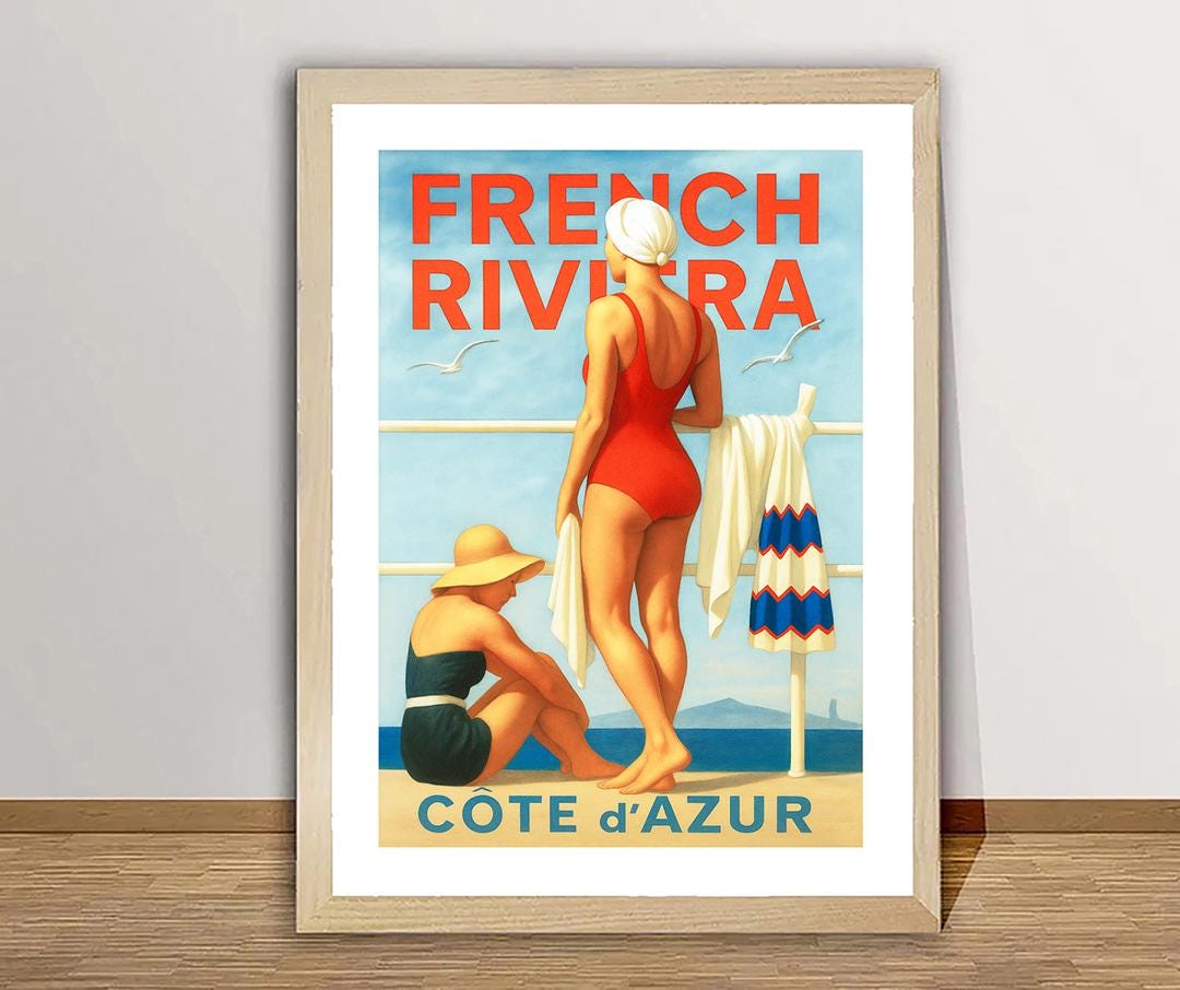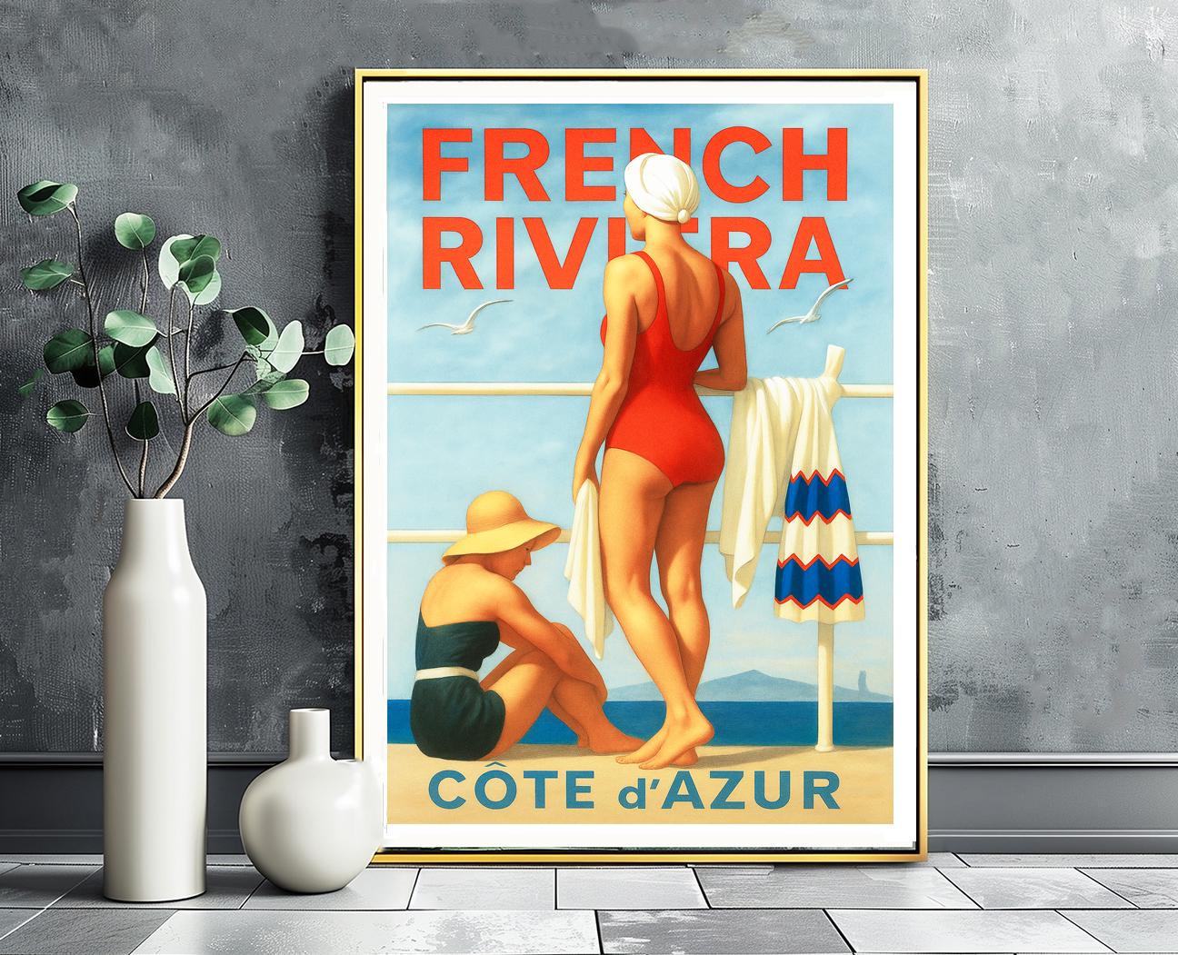 French Riviera Travel Poster: Cote d'Azur Beach Print