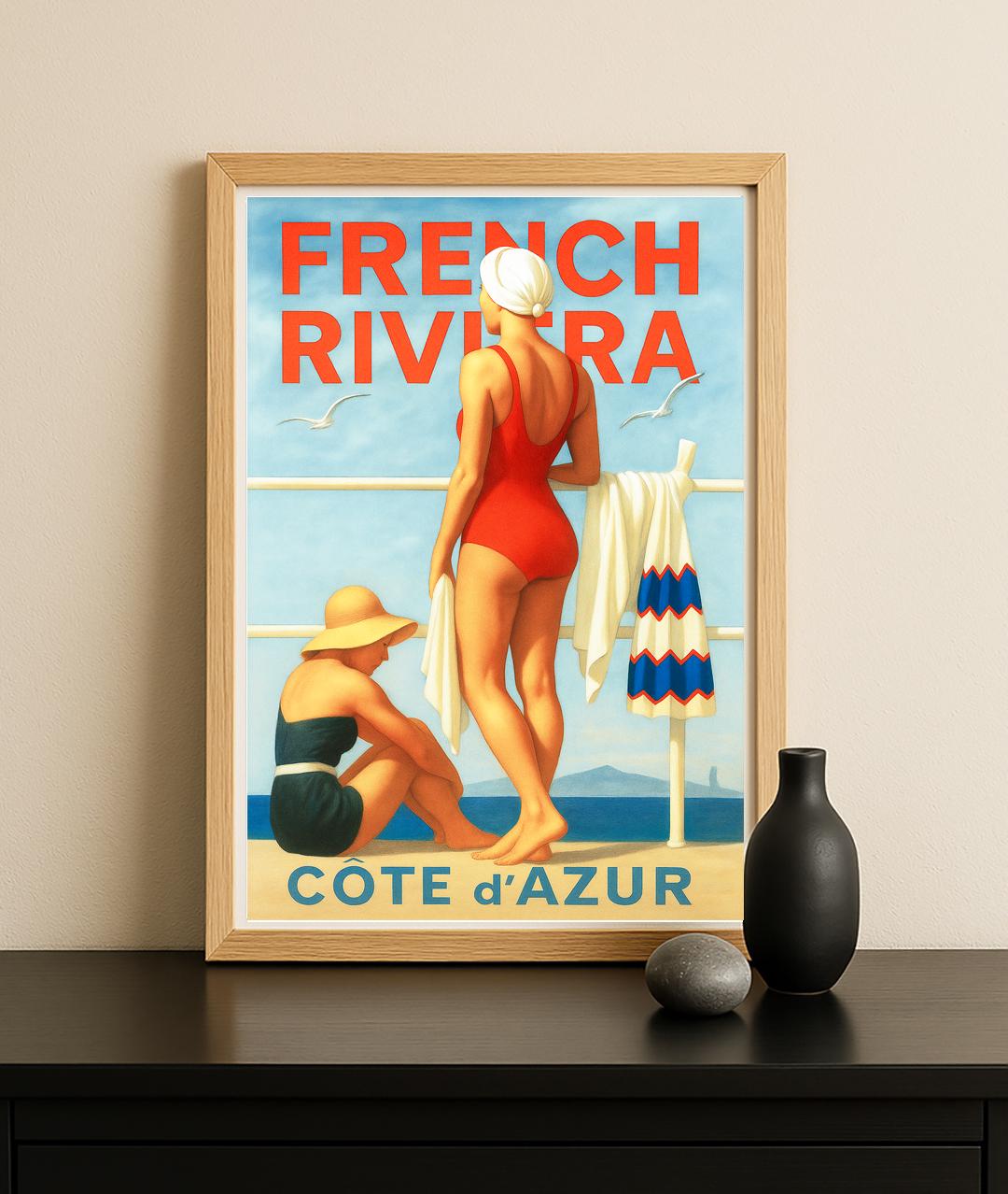 French Riviera, Cote d'Azur, France Travel Poster - Poster Paper or Canvas Print / Gift Idea