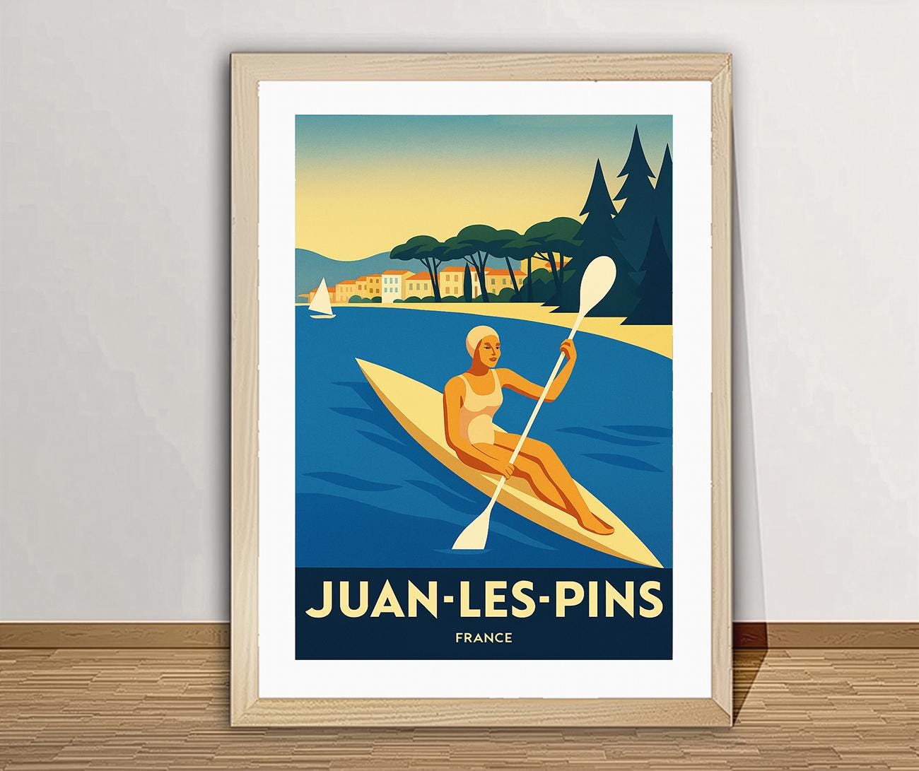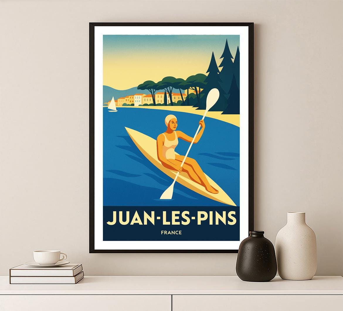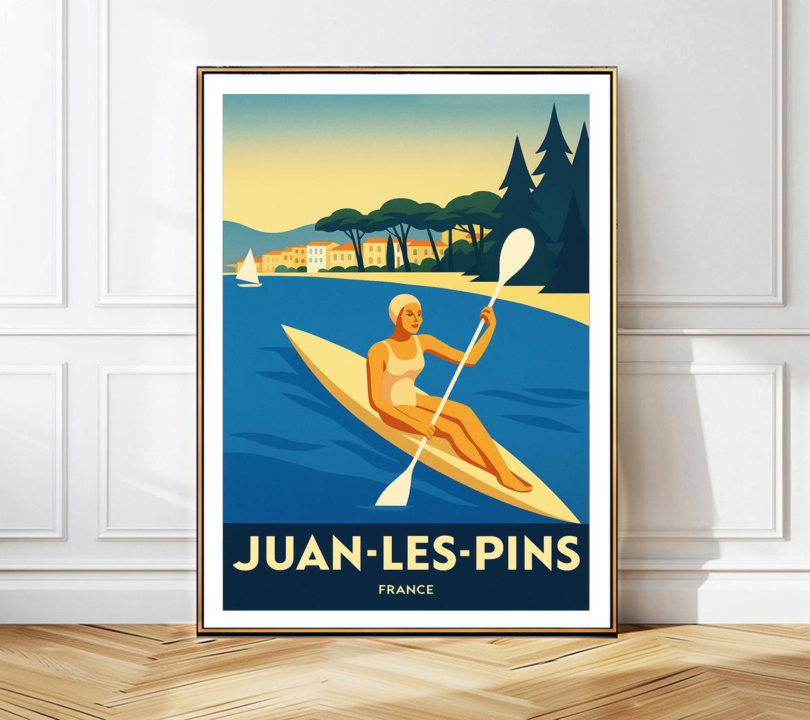 Juan Les Pins Vintage Travel Poster: Canoeing in Antibes, France