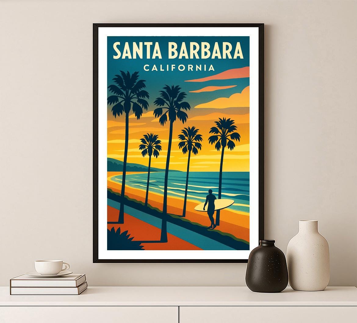 Santa Barbara Travel Poster: California Beach Wall Art