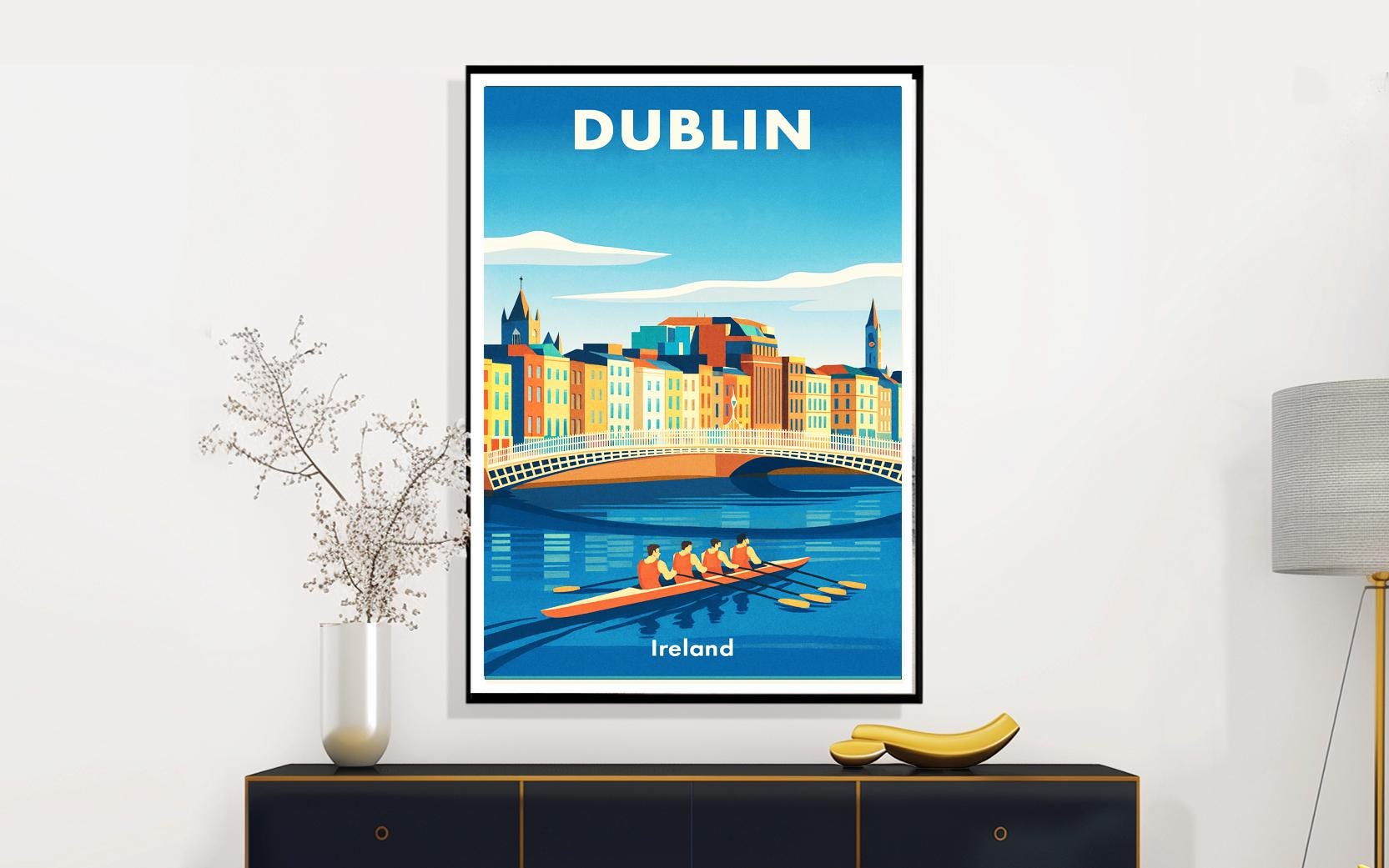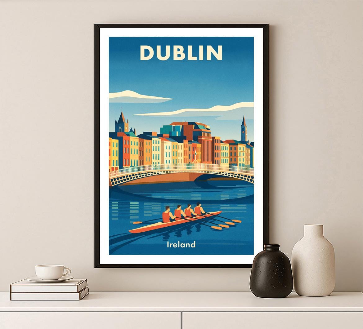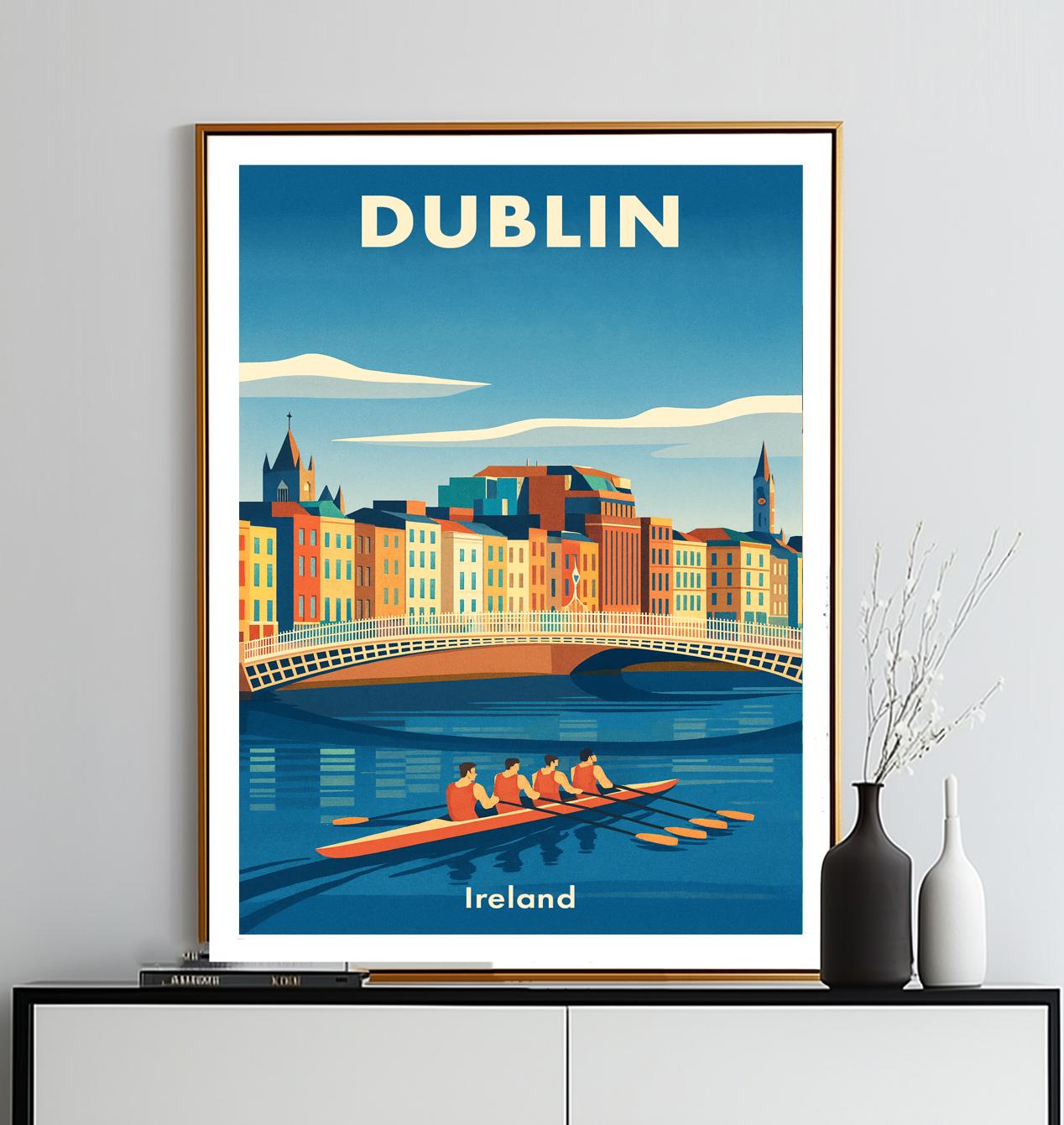 Dublin Ireland Travel Poster: Vintage Cityscape Art Print