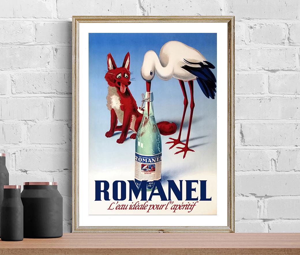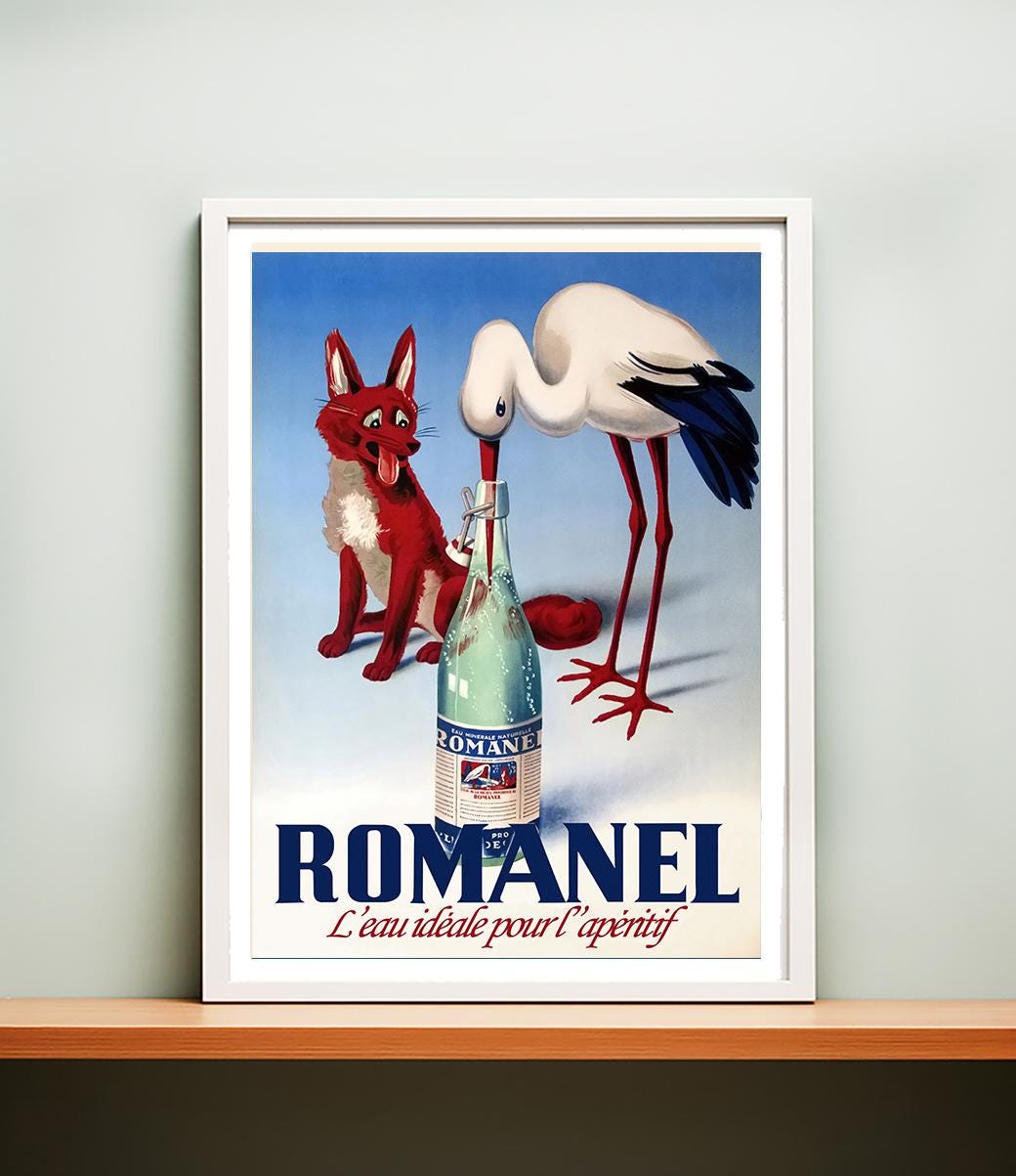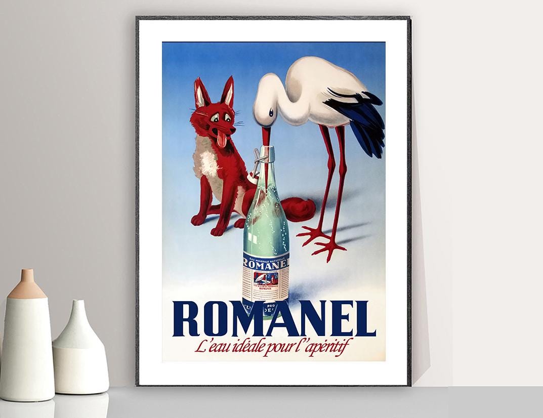 Vintage Romanel L'Eau Ideale Pour L'Aperitif Advertisement Art Print - Reproduction of a Vintage Artwork, Decorative Purposes Wall Decor - Poster Print or Canvas Print