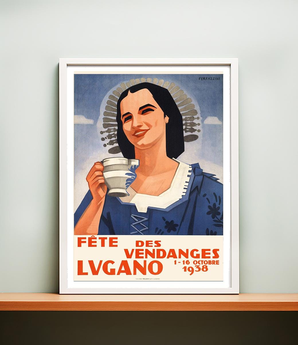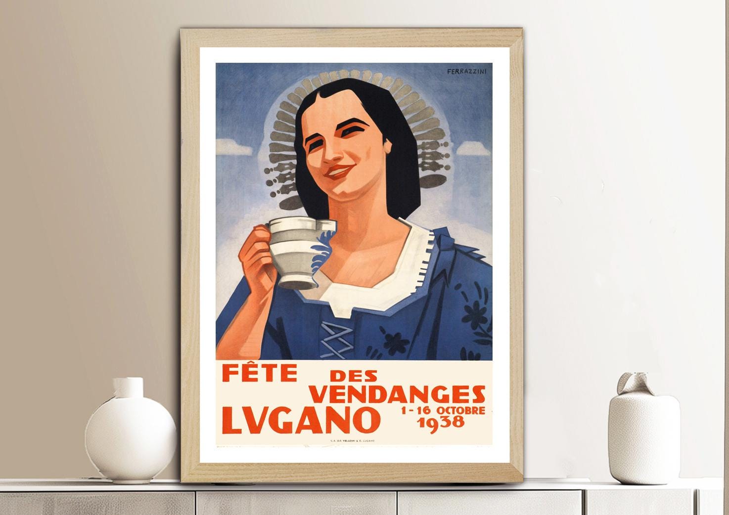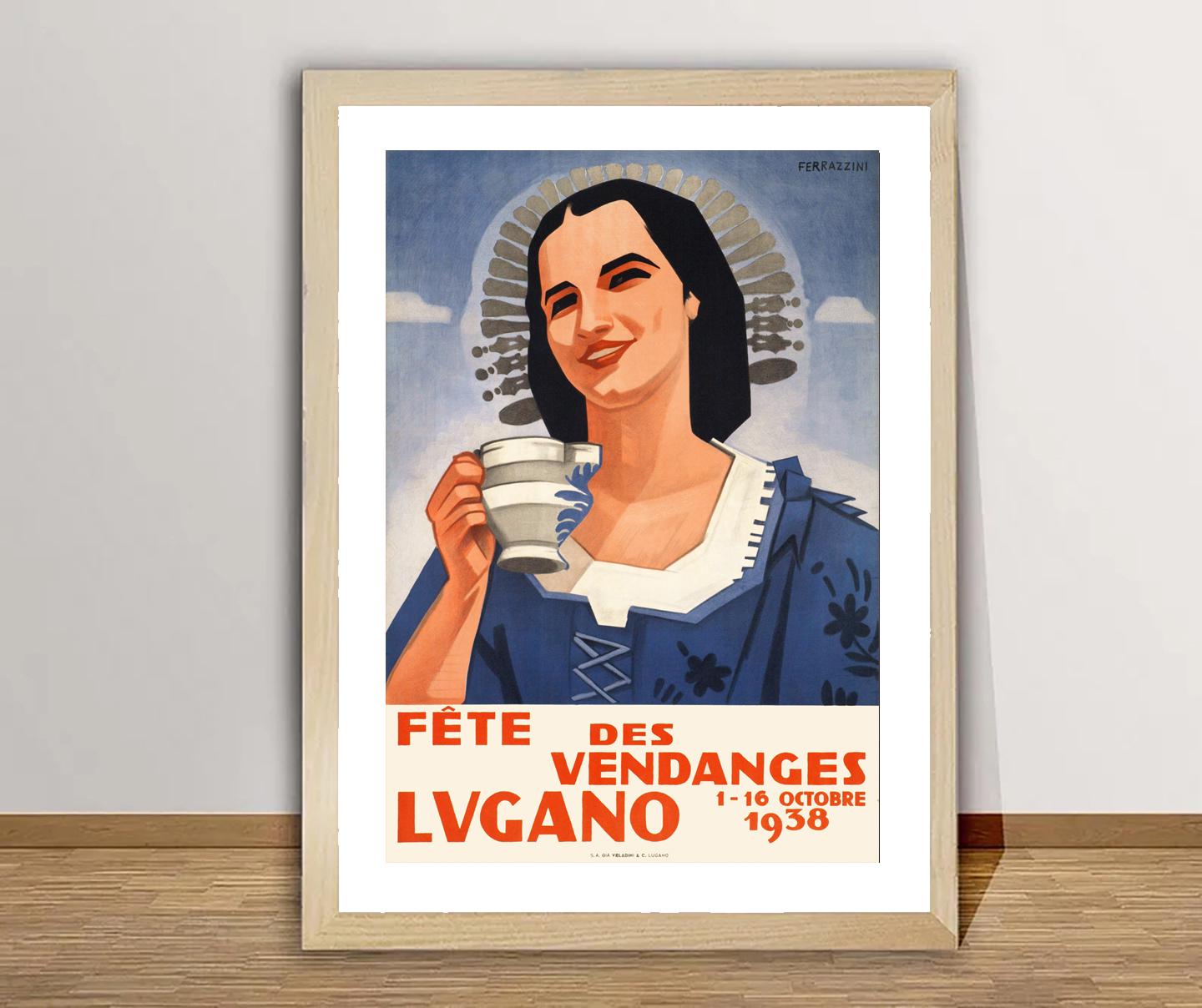 Lugano Grape Harvest Festival Vintage Travel Poster: Suisse Wall Art