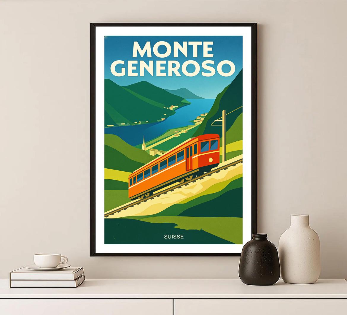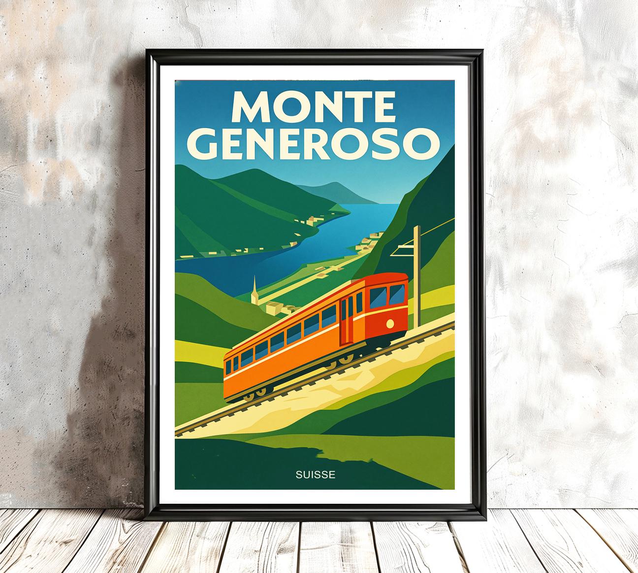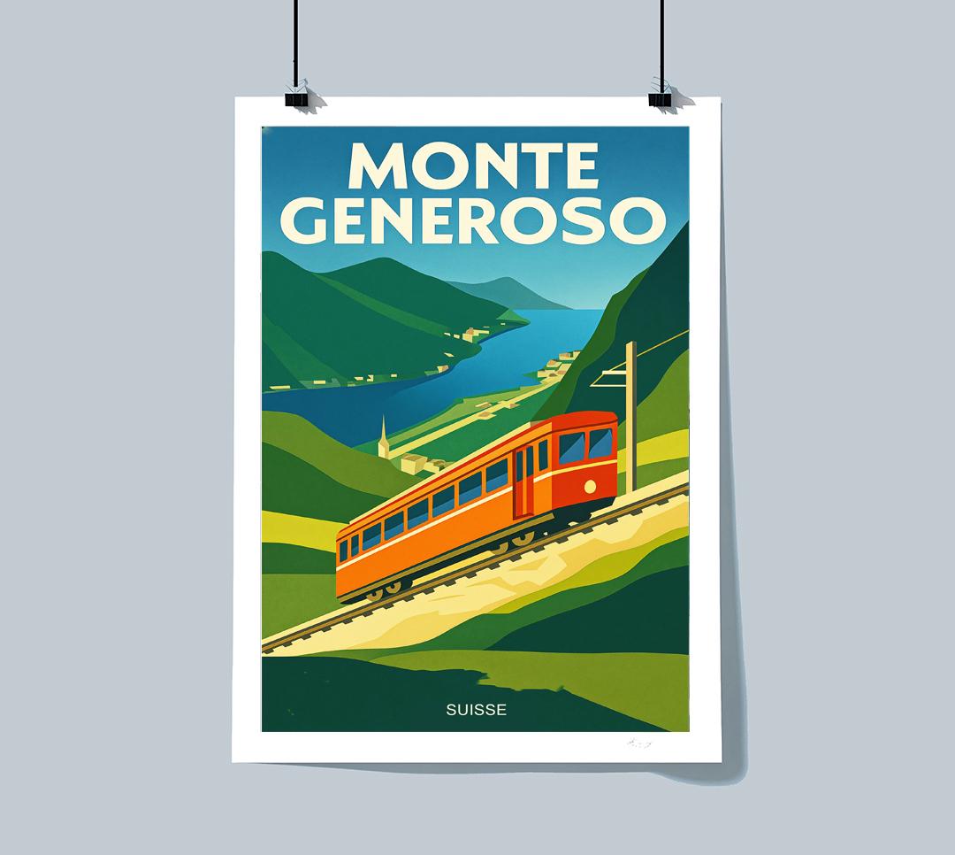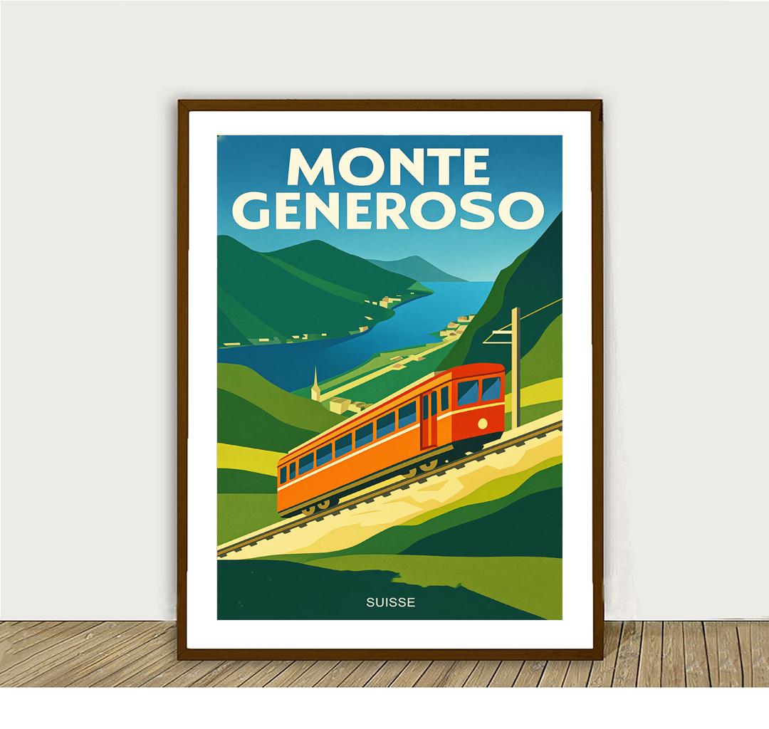 Vintage Monte Generoso Travel Poster: Swiss Railway Art Print