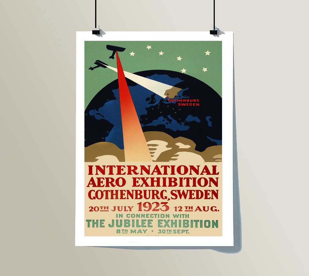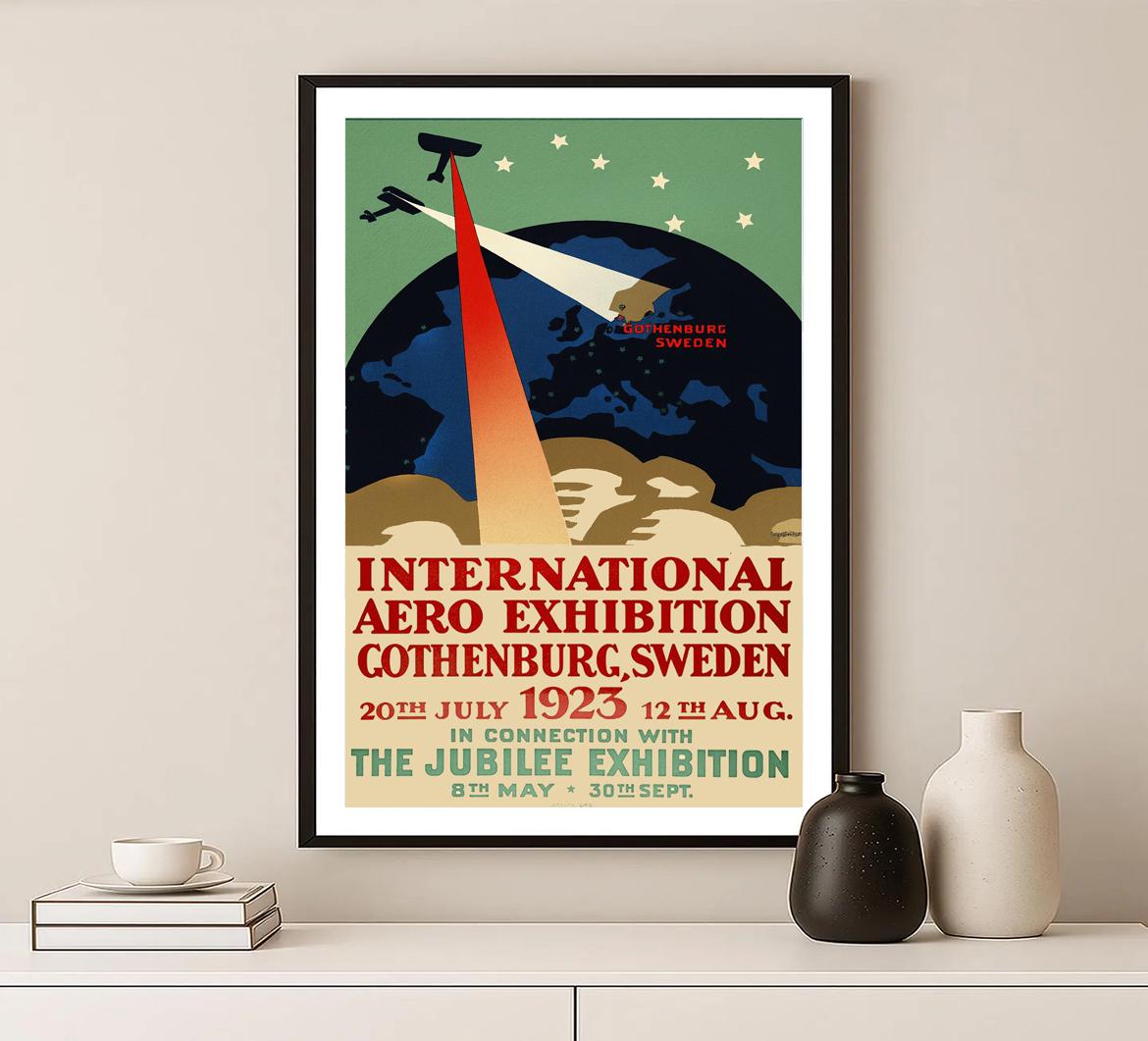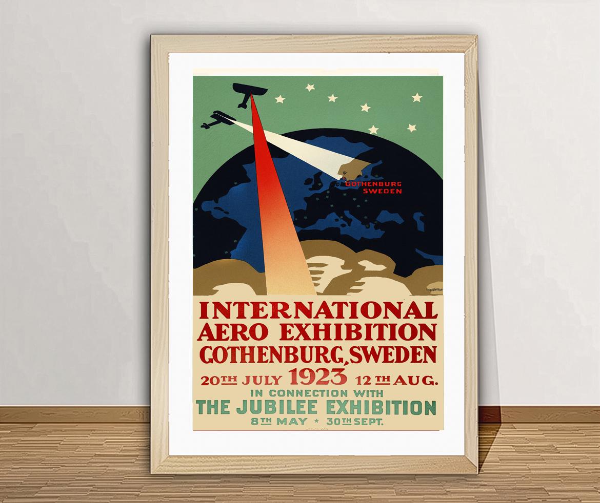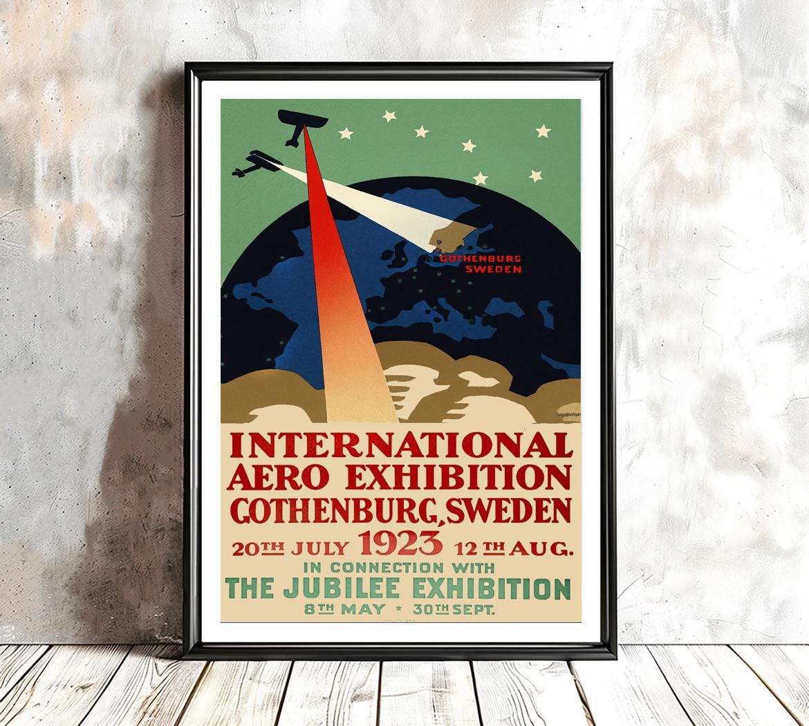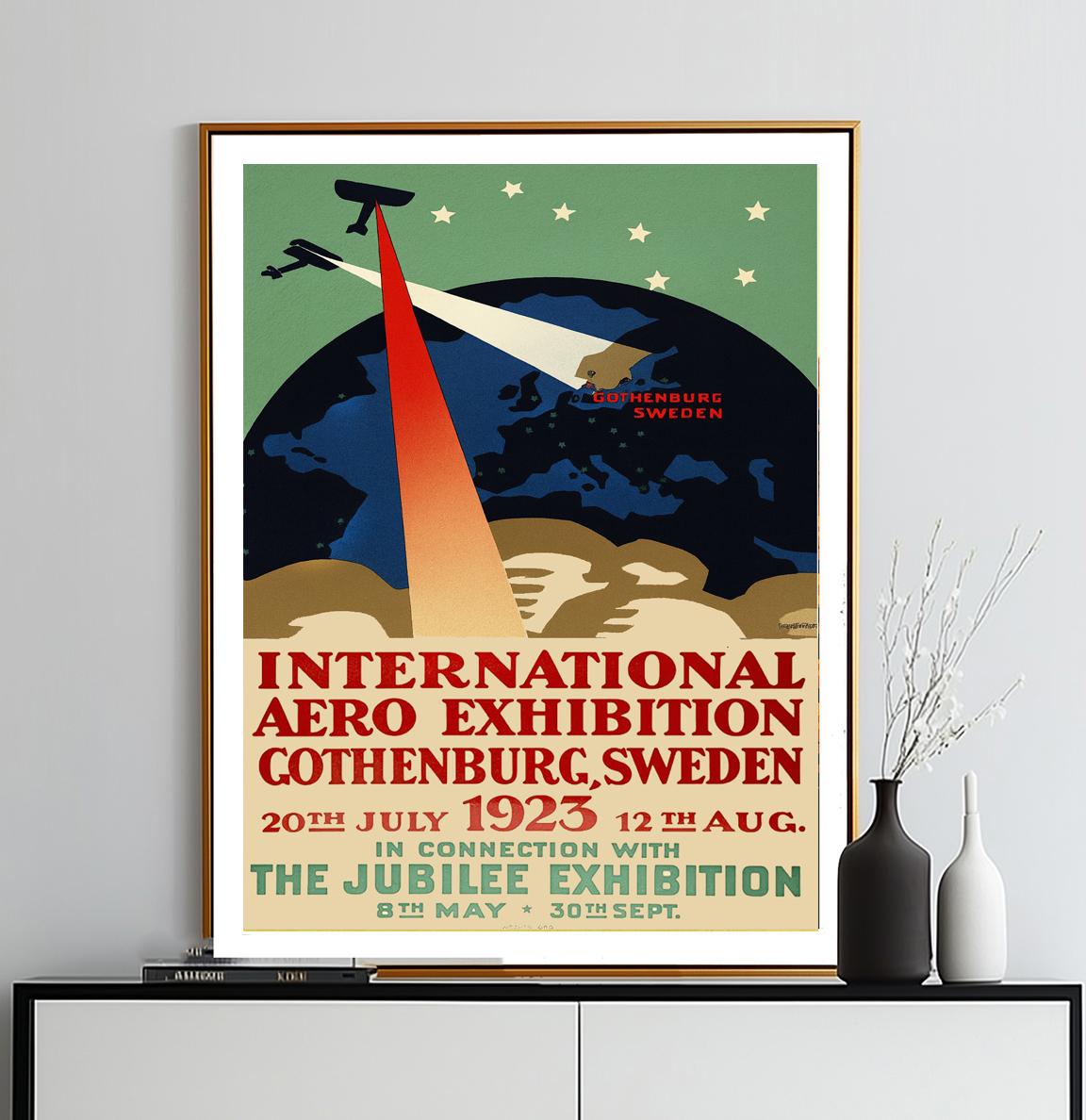 International Aero Exhibition,Gothenburg, Sweden, 1923 Vintage Travel Poster - Poster Paper or Canvas Print