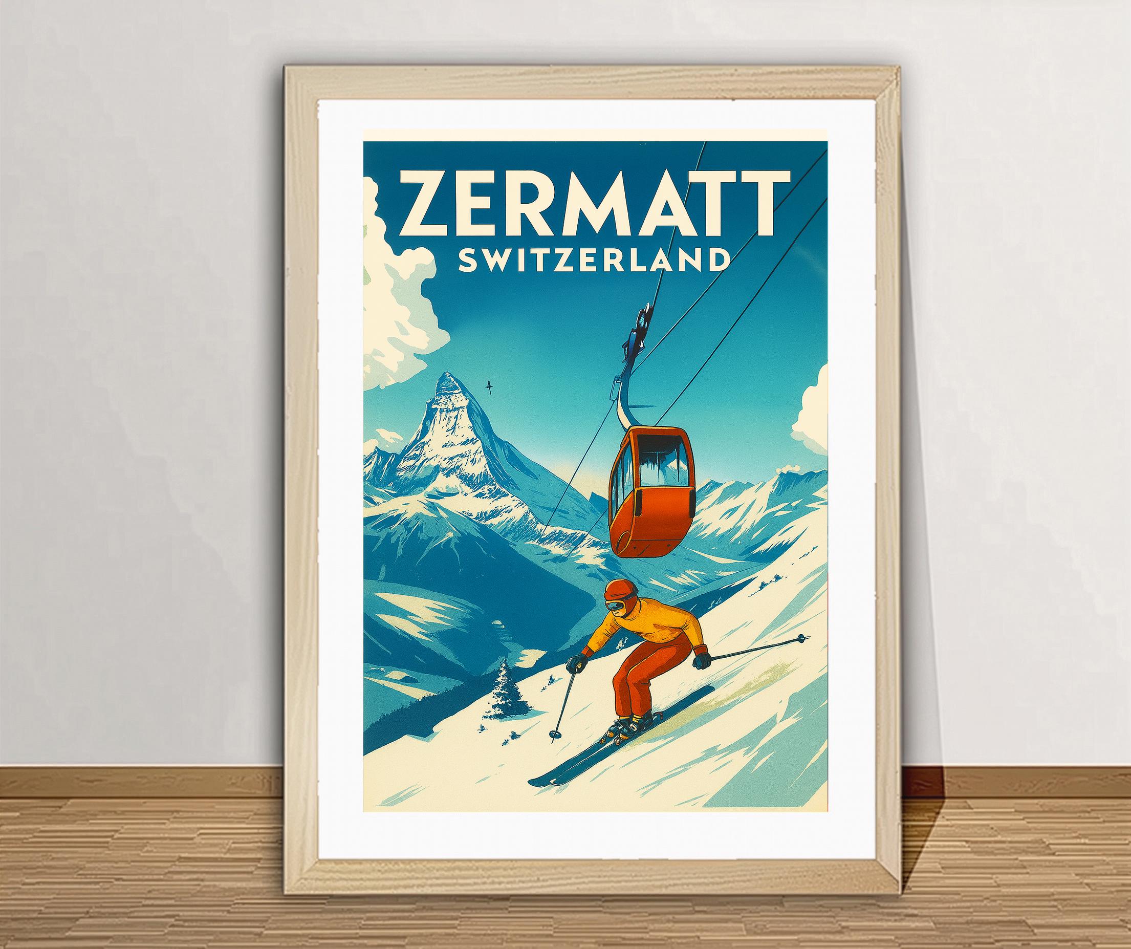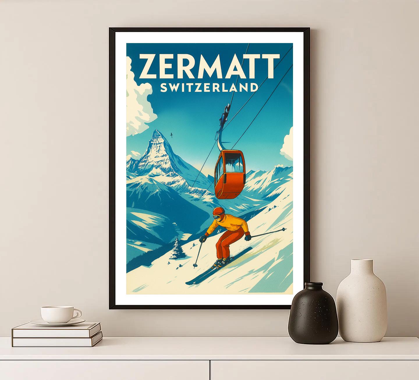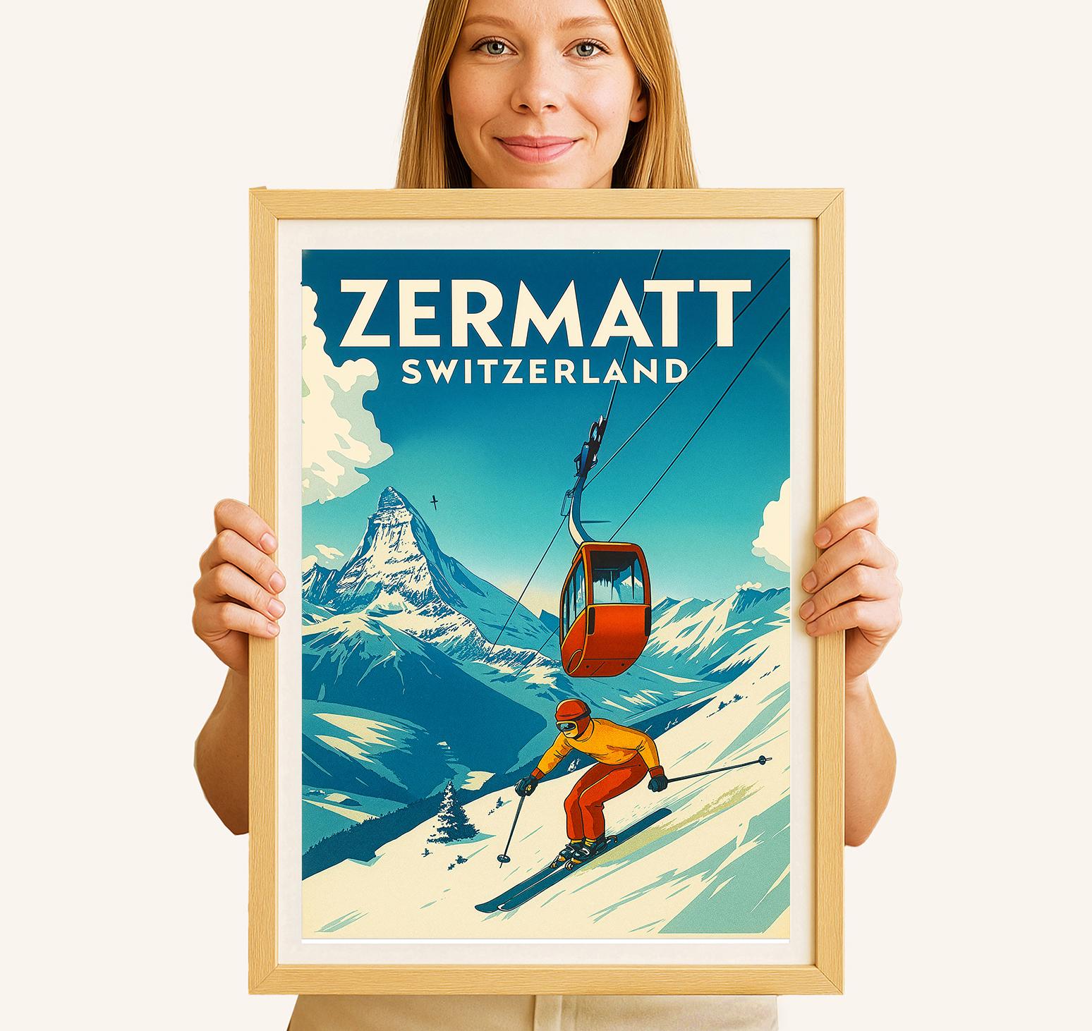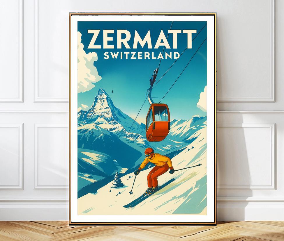 Zermatt, Matterhorn, Suisse Ski Poster - Poster Paper or Canvas Print / Gift Idea