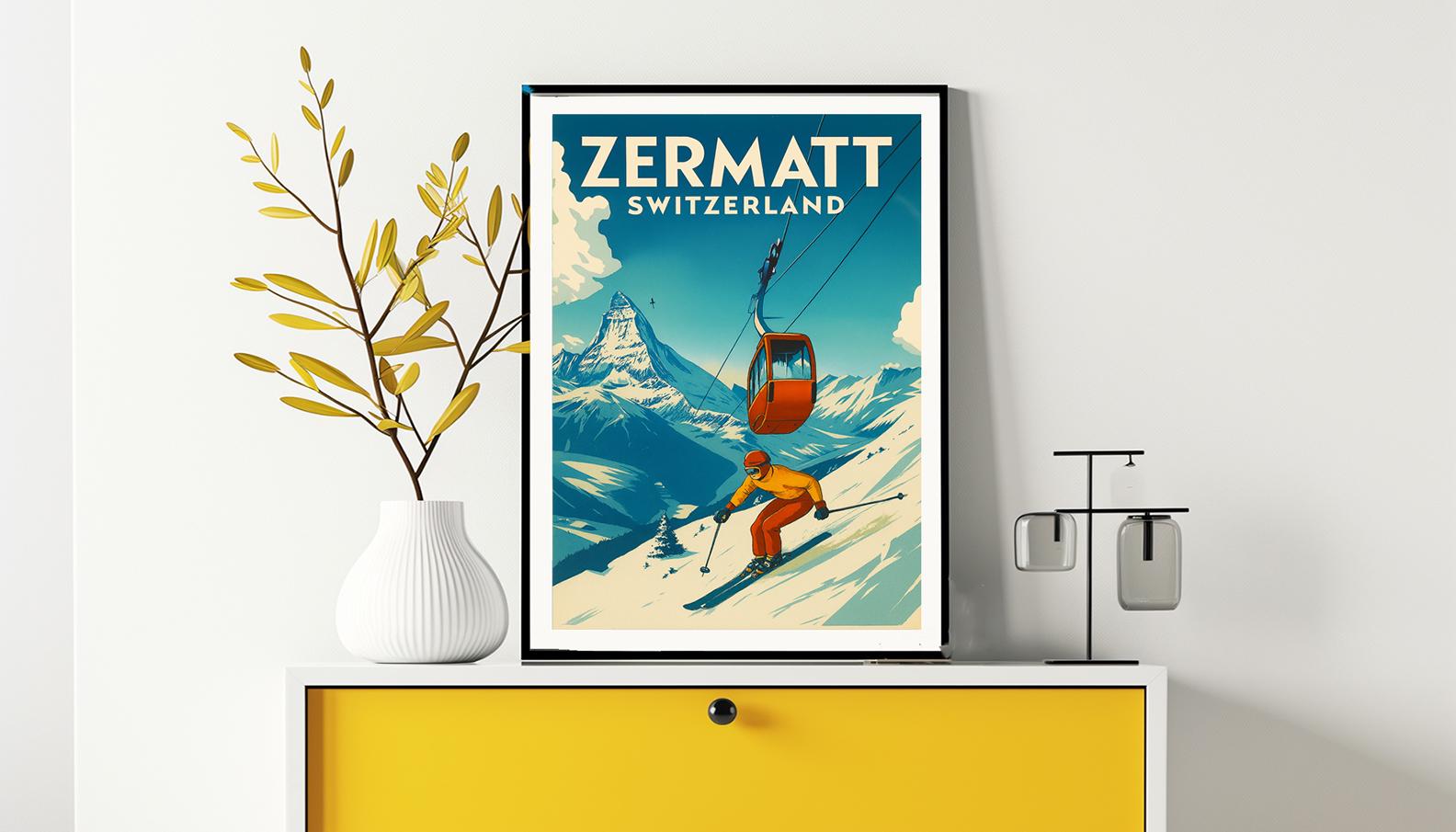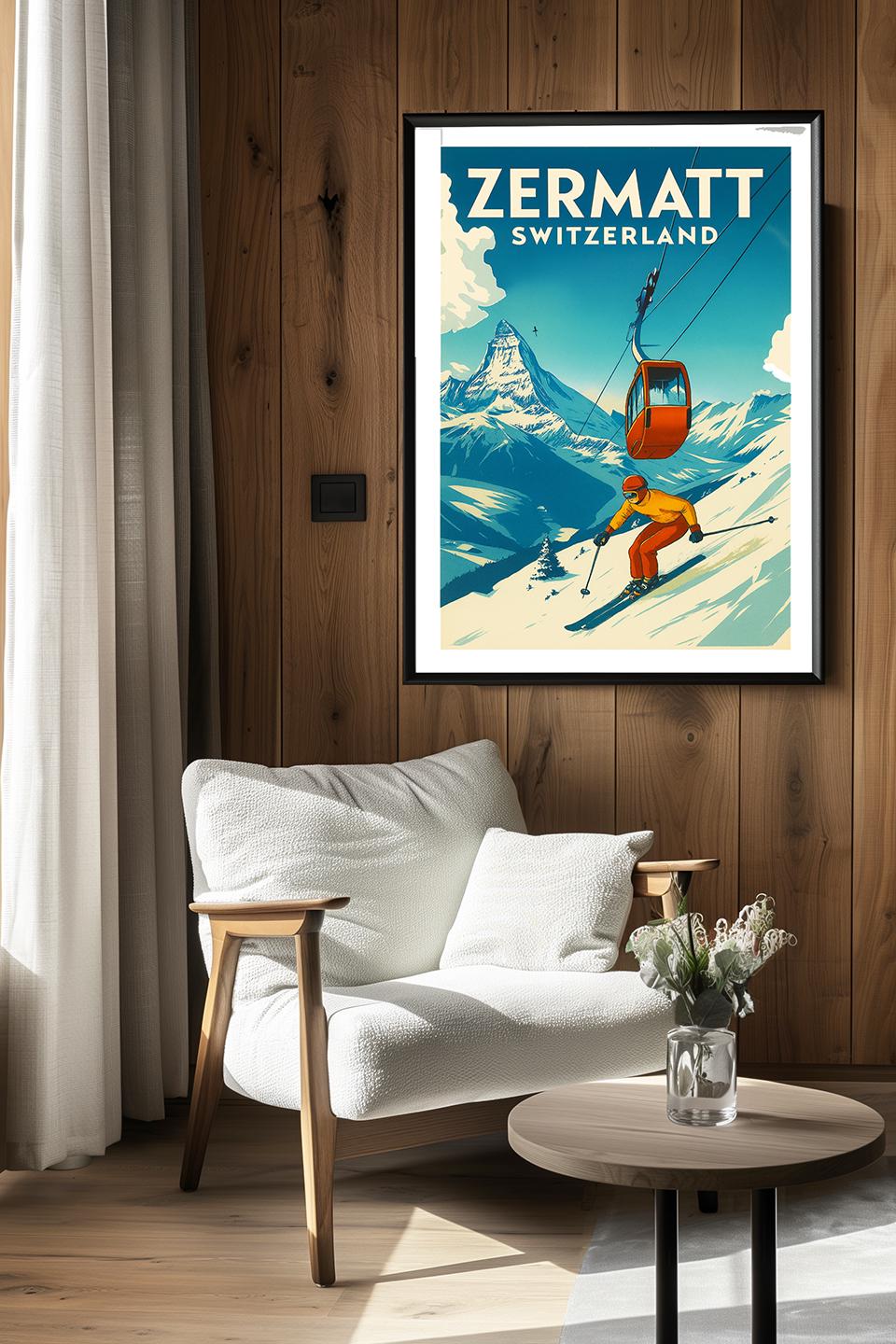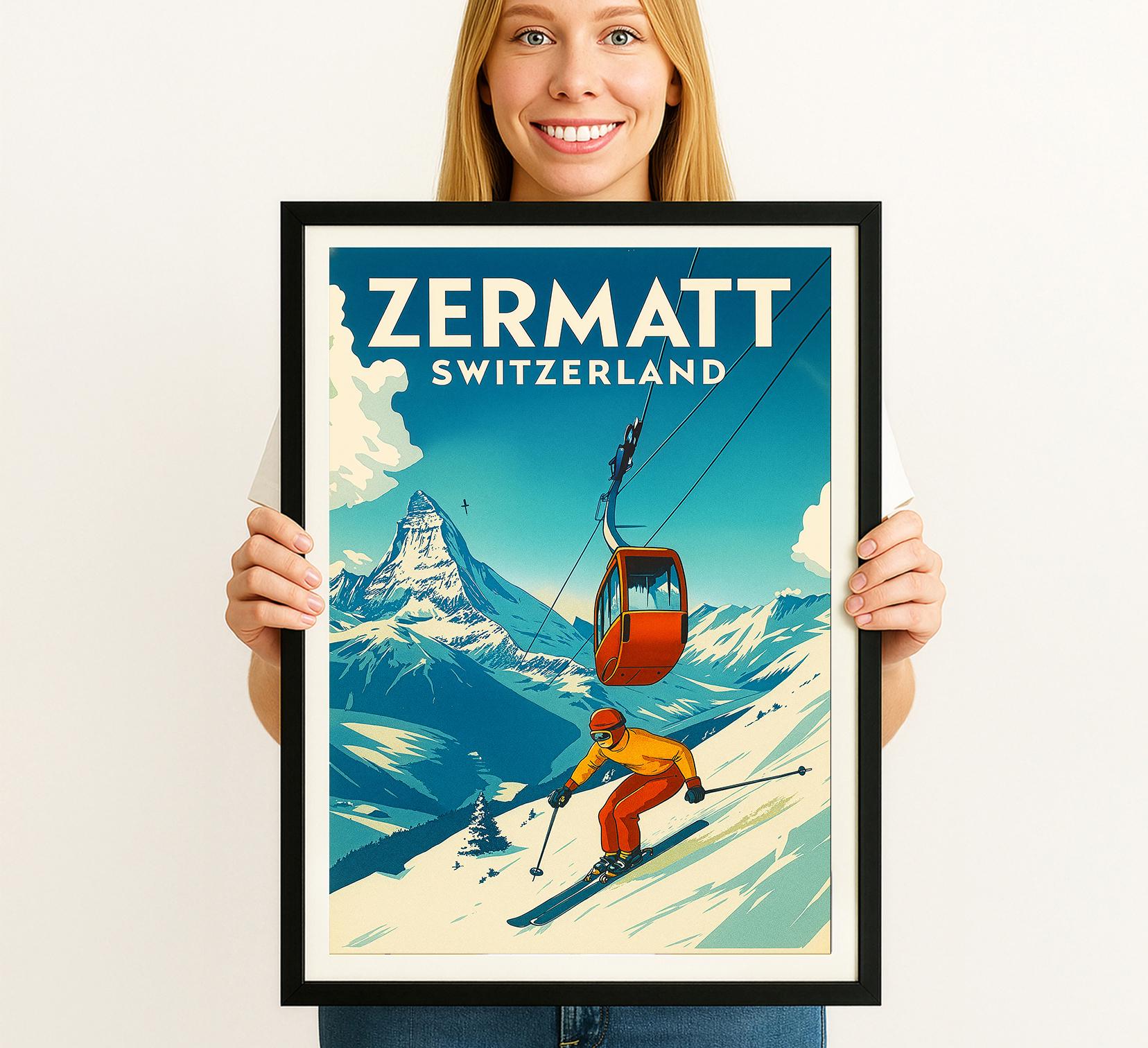 Zermatt, Matterhorn, Suisse Ski Poster - Poster Paper or Canvas Print / Gift Idea