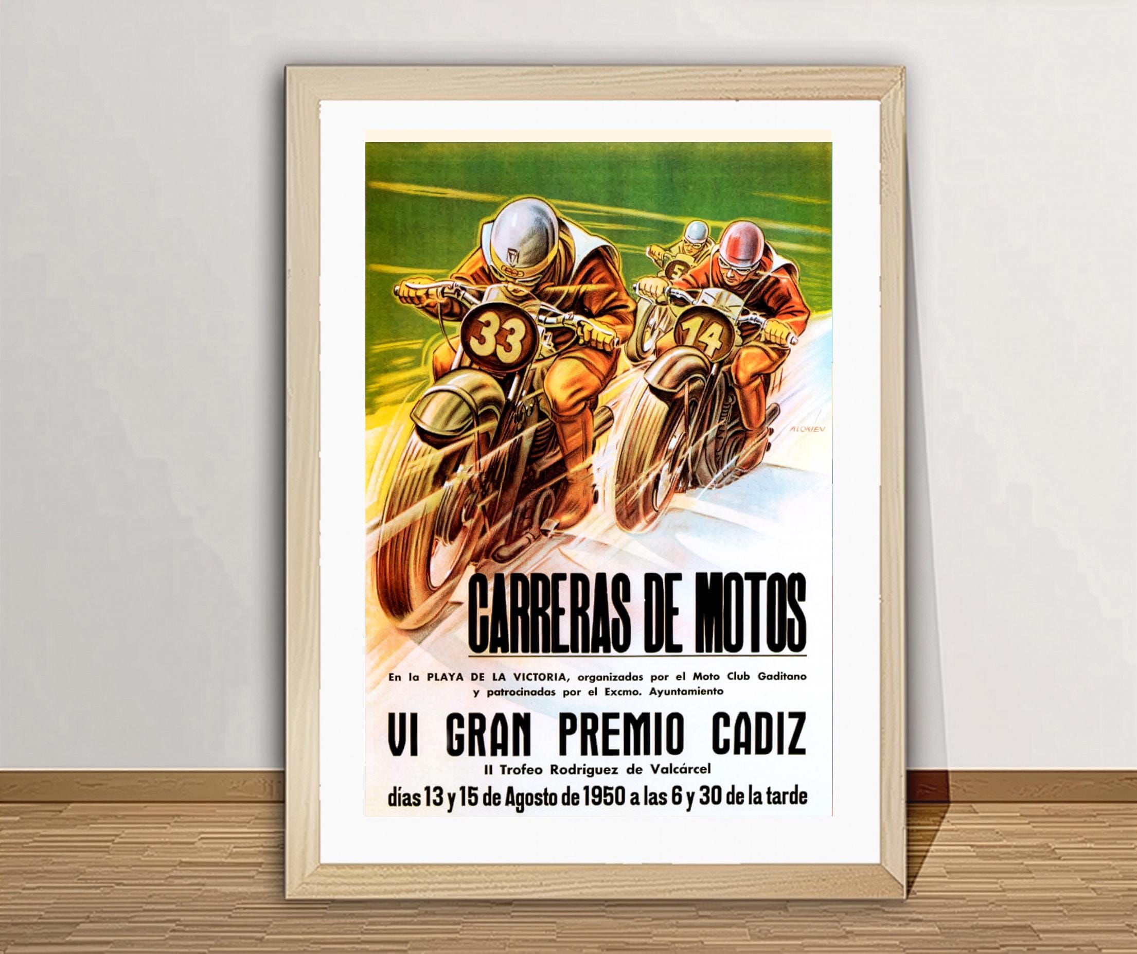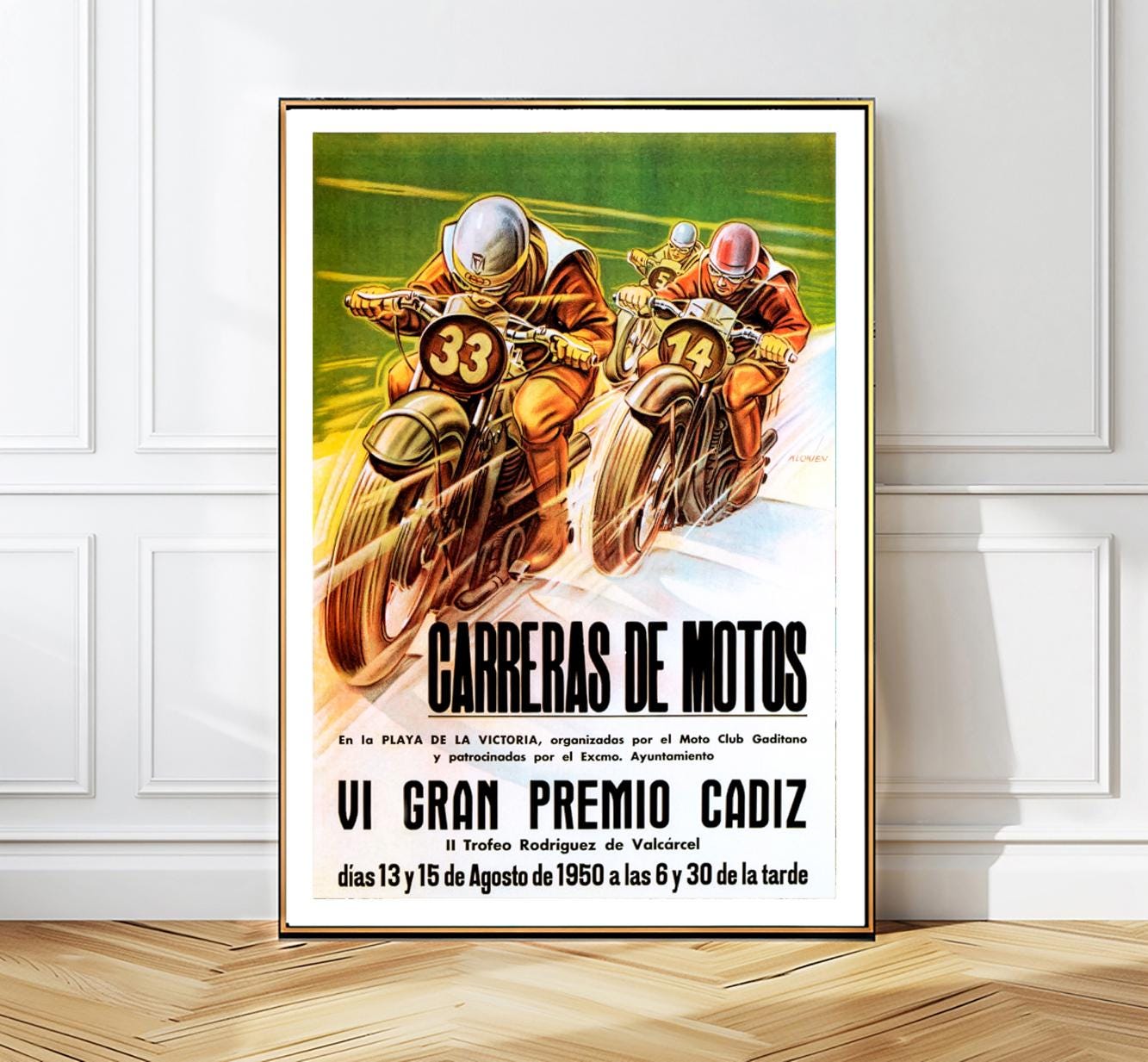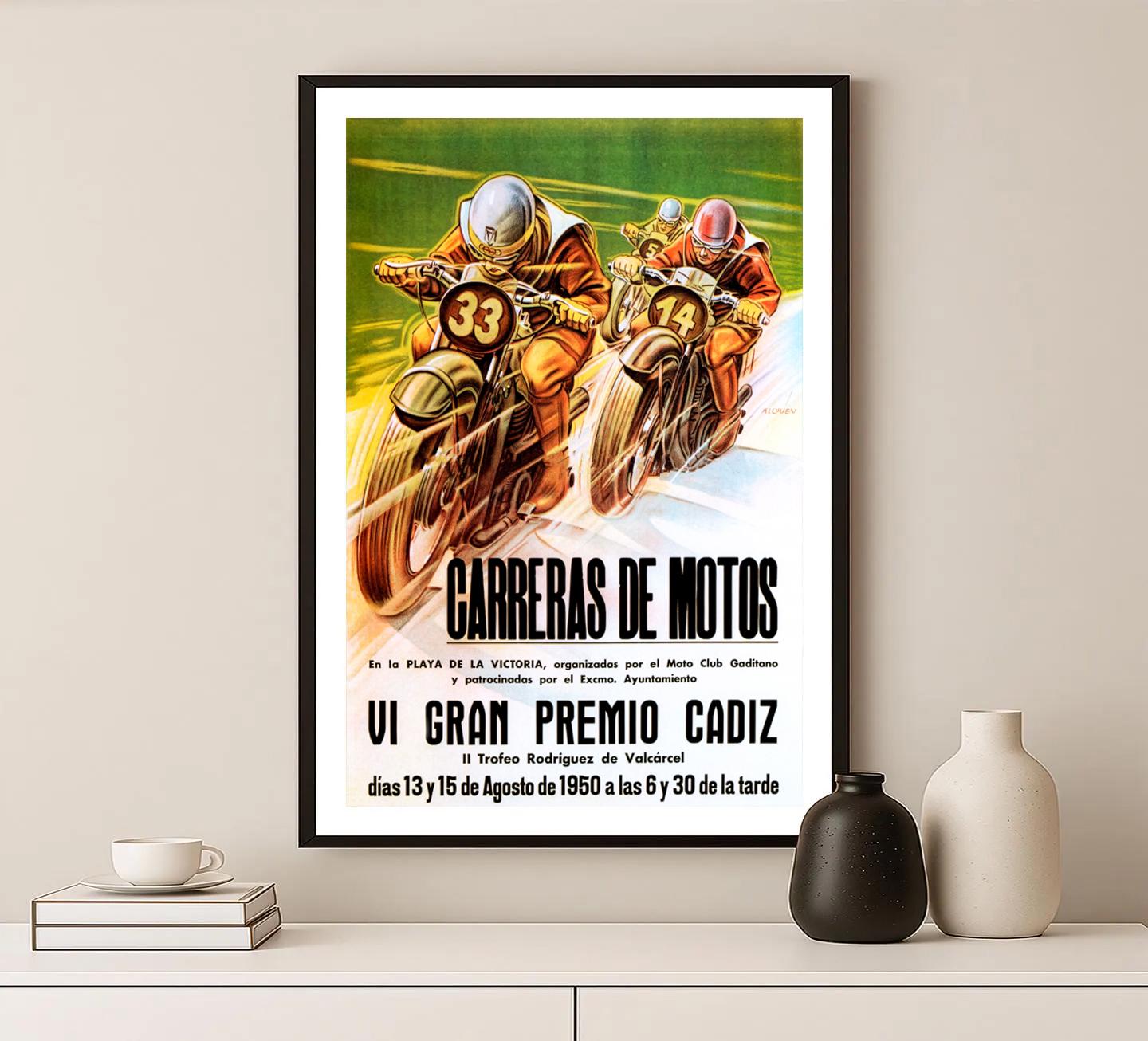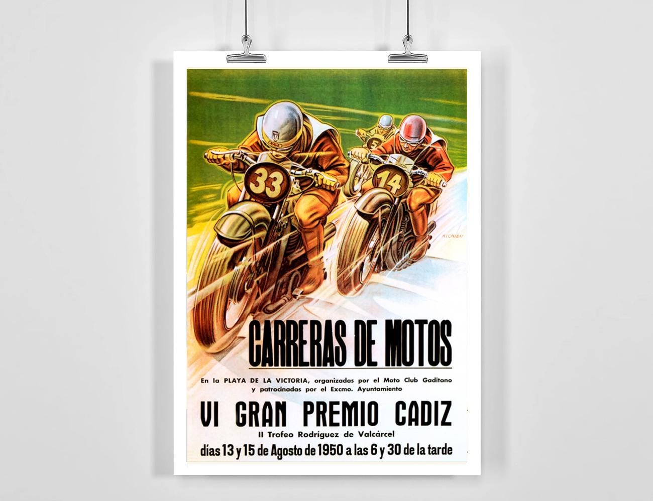Carreras de Motos, VI Gran Premio, Cadiz, Spain Vintage Motorcycles Grand Prix Poster - Poster Print or Canvas Print