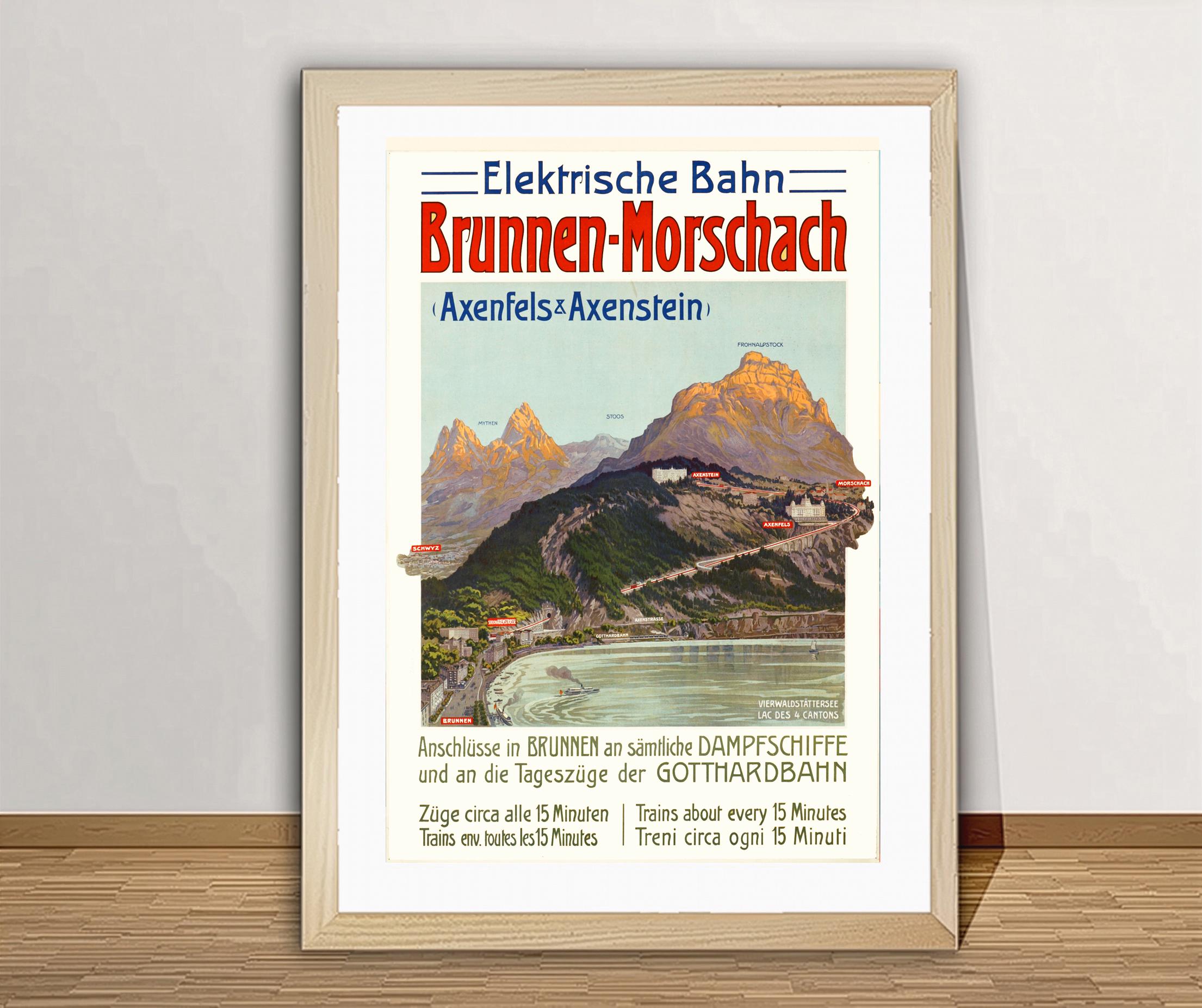 Vintage Suisse Travel Poster: Brunnen-Morschach, Axenfels & Axenstein