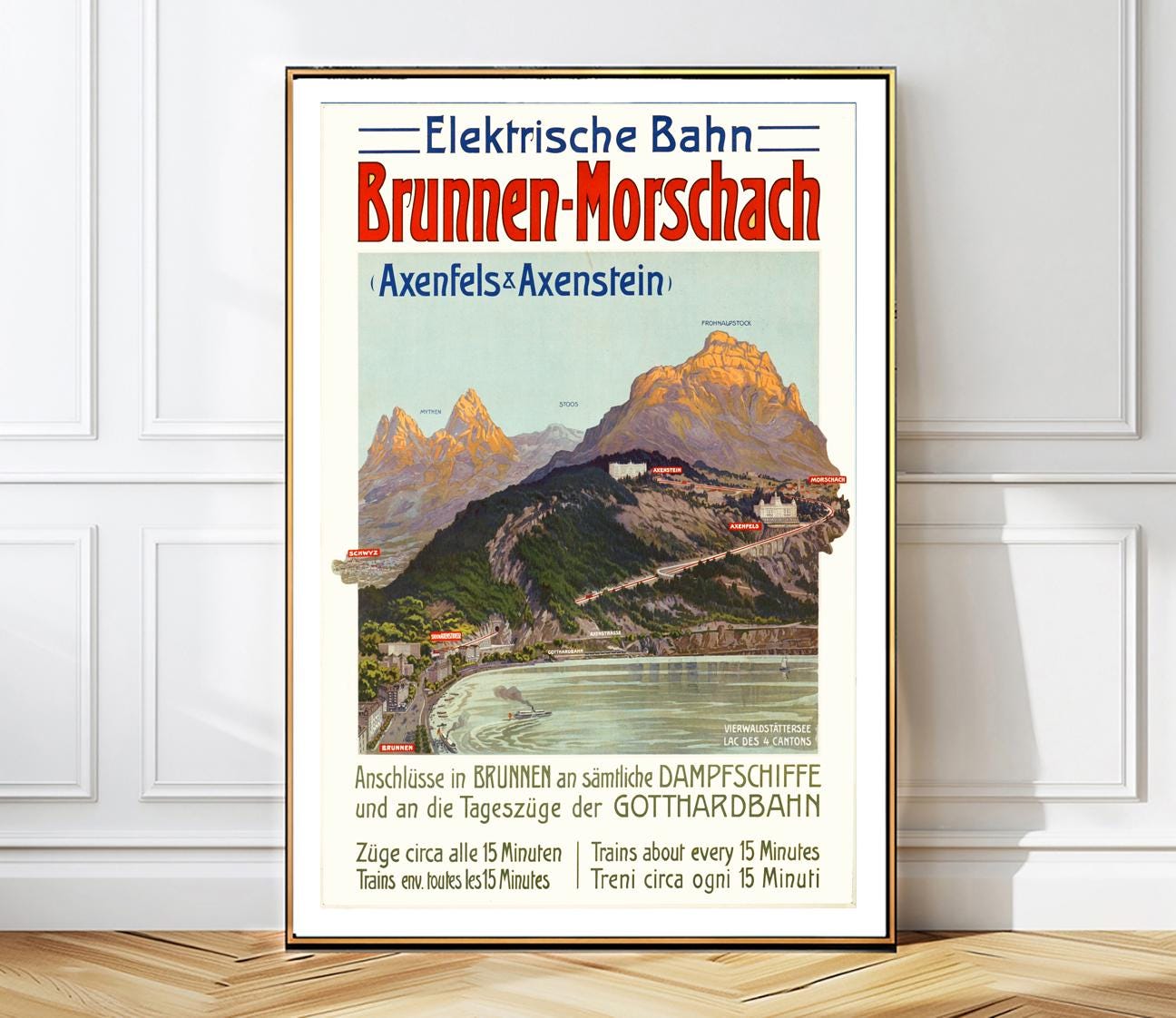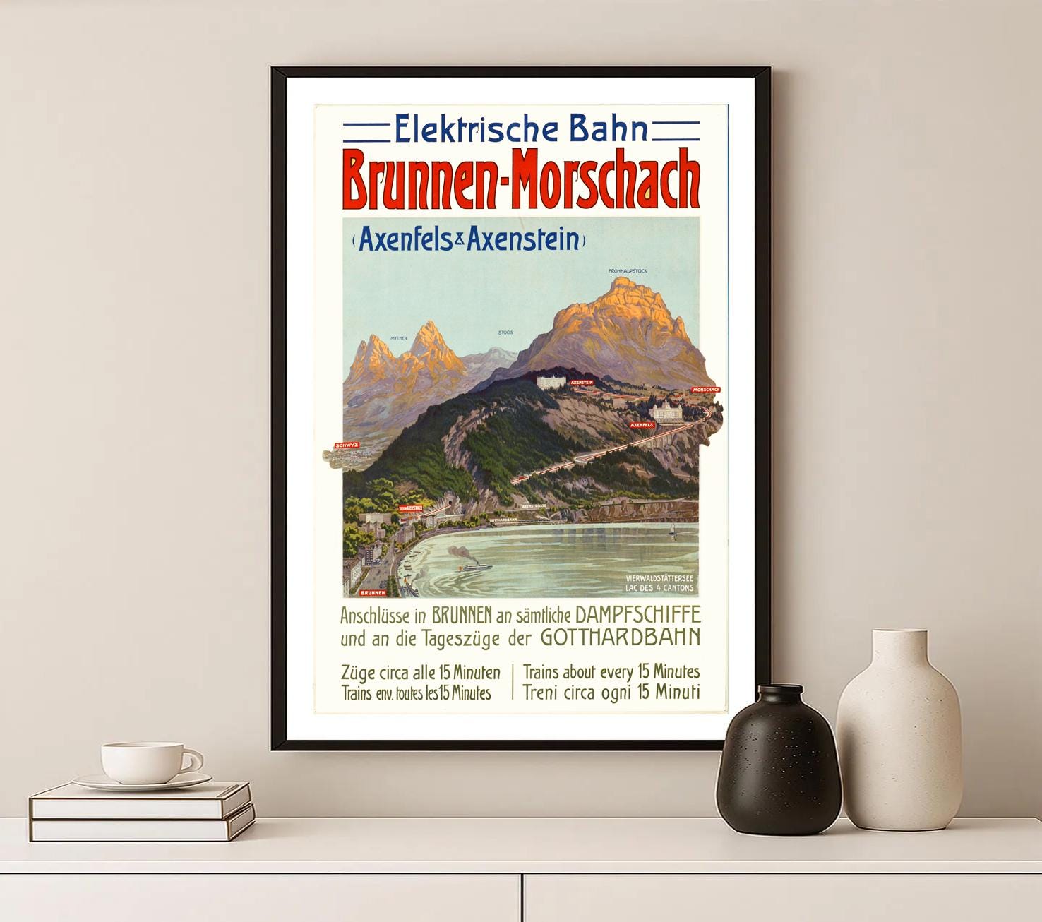 Elektrische Bahn, Brunnen Morschach, Axenfels, Axenstein, Suisse Vintage Travel Poster - Poster Paper or Canvas Print / Gift Idea / Wall Decor