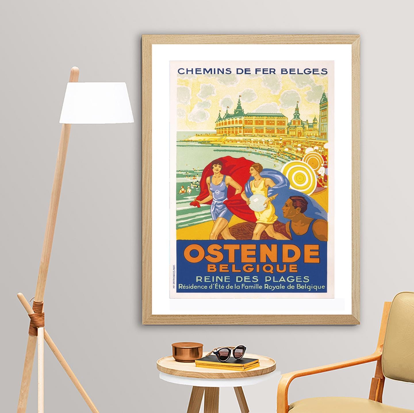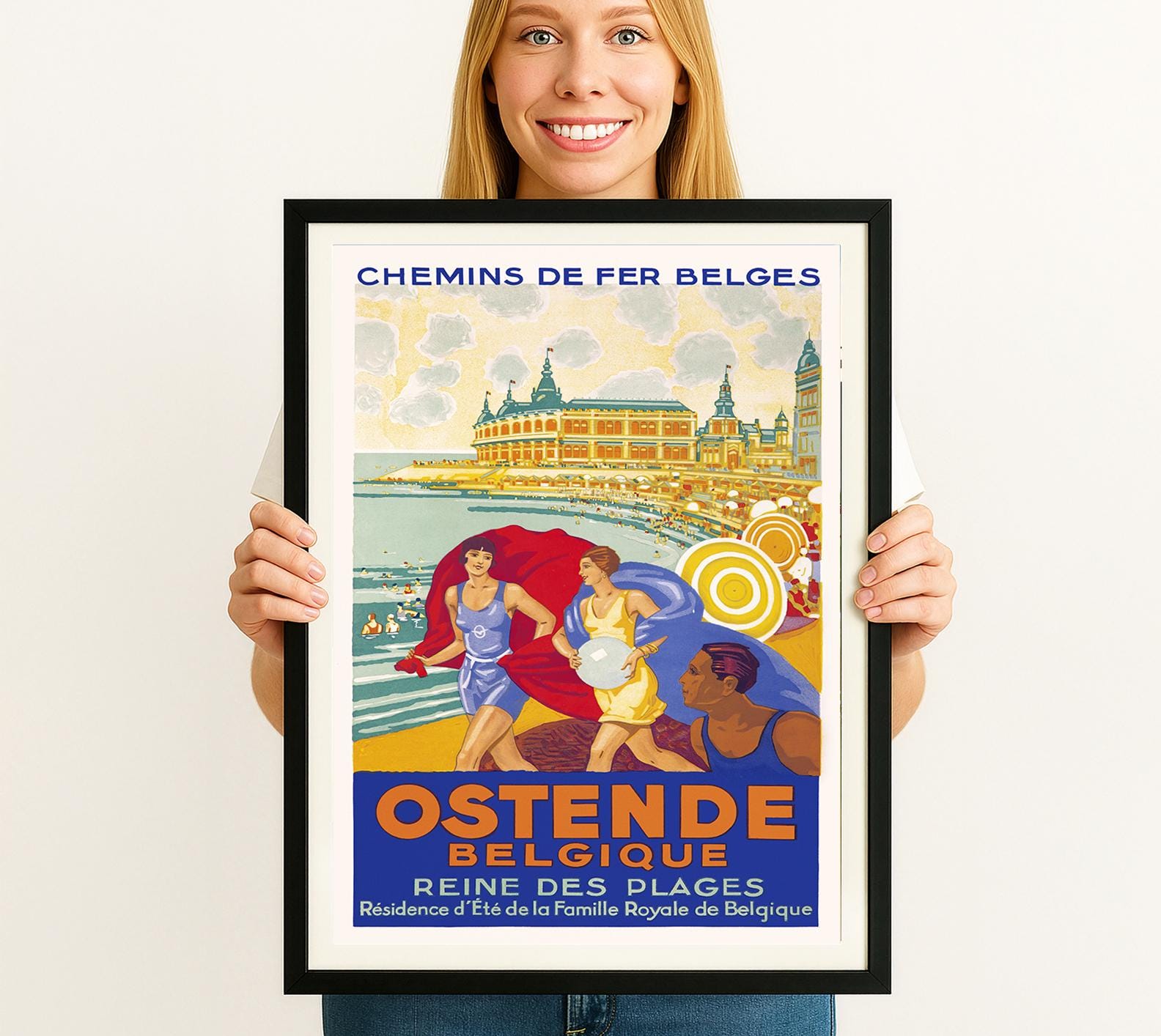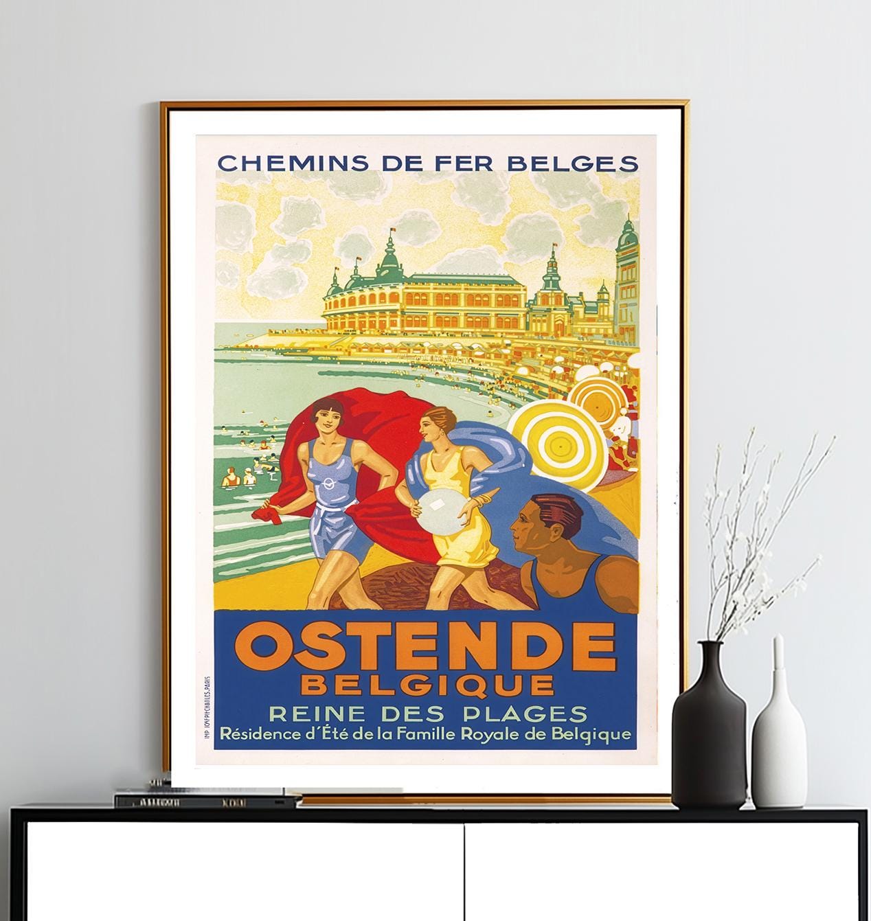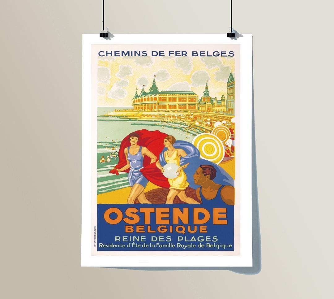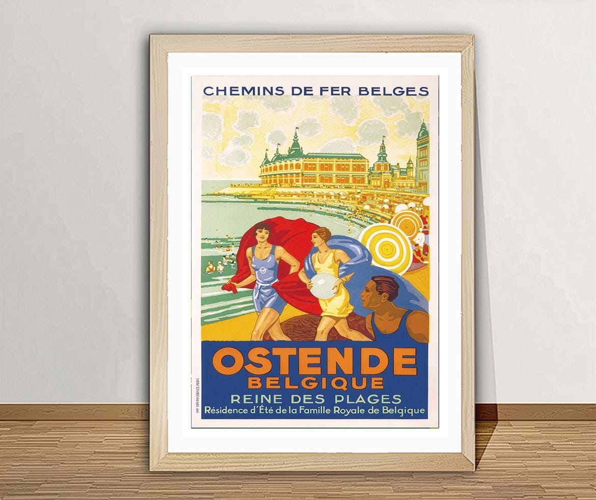 Ostende, Belgique, Reine des Plages Vintage Travel Poster - Poster Paper or Canvas Print / Gift Idea / Wall Decor