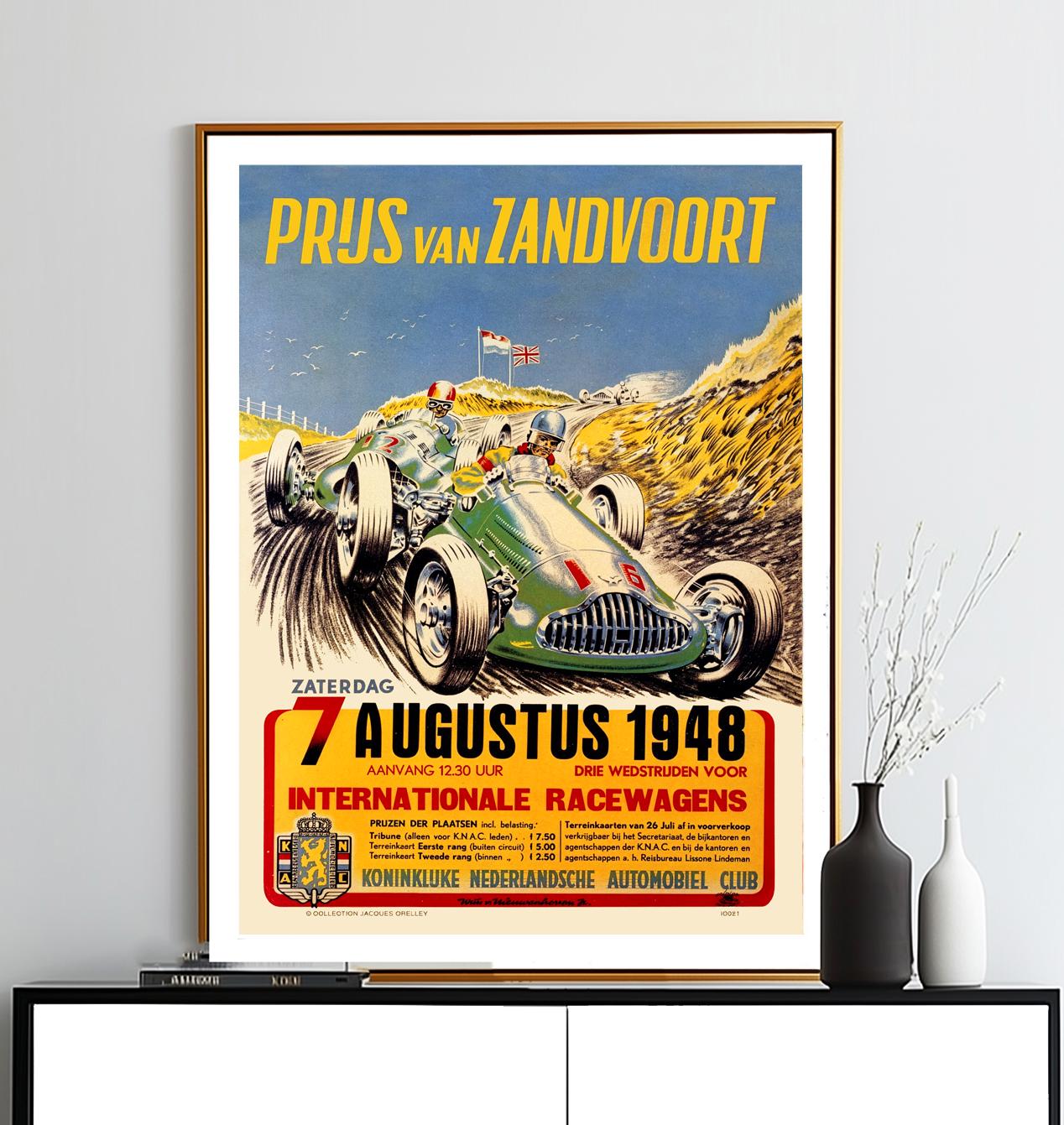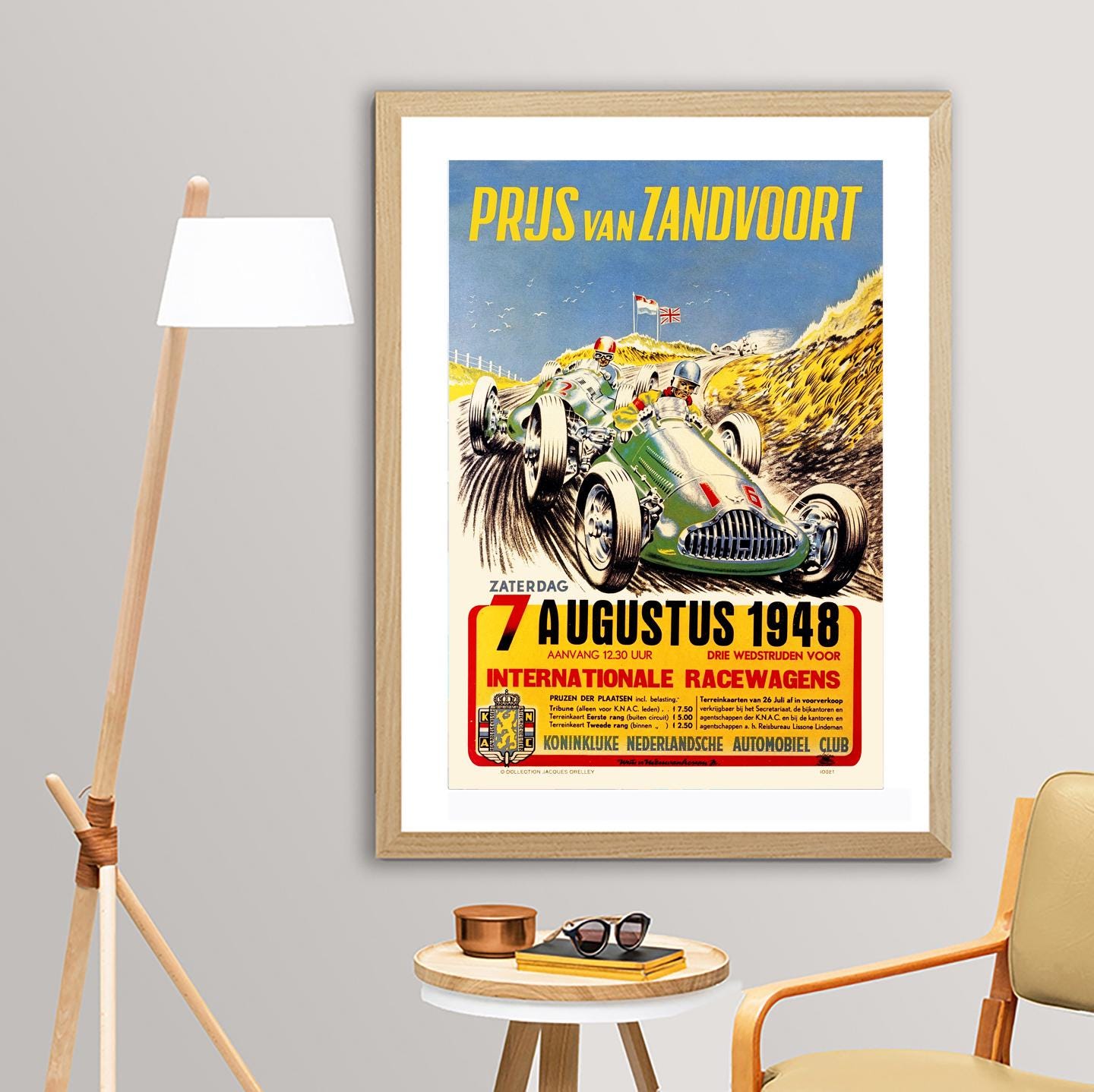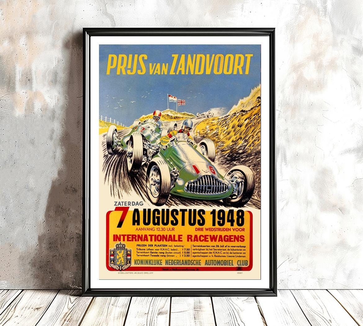 Prijs Van Zandvoort Internationale Race Wagens, 1948 Vintage Grand Prix Poster - Poster Print or Canvas Print