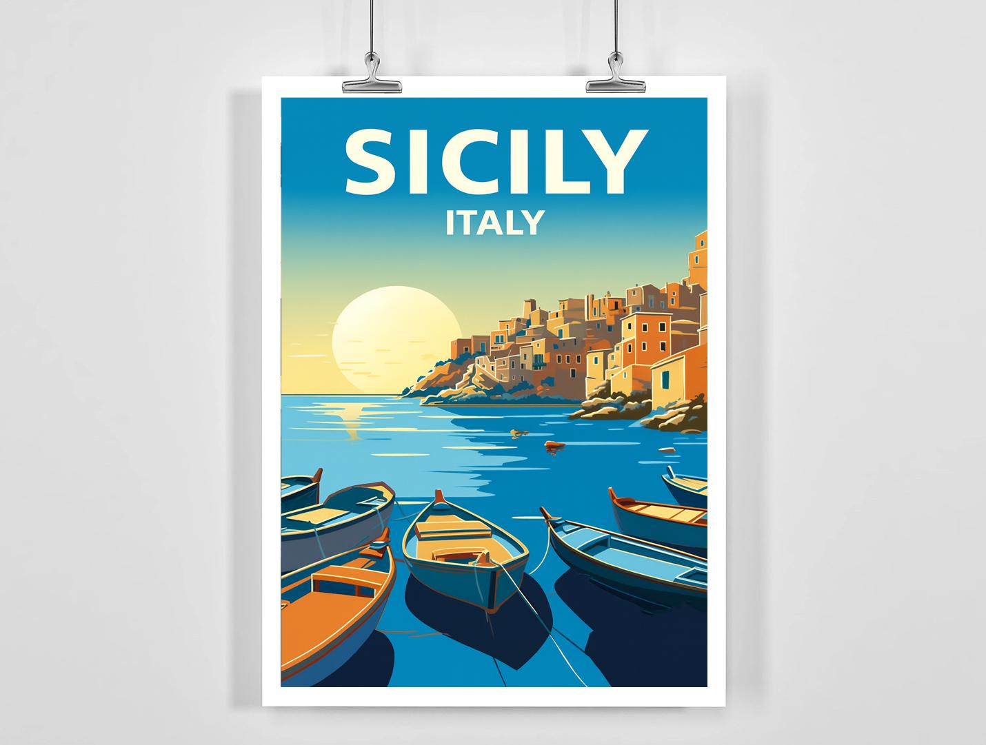 Sicily, Italy Travel Poster Digital Download - Printable Sicily Wall Art