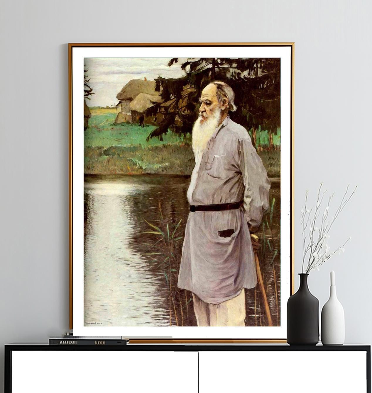 Portrait of Leo Tolstoy by Mikhail Nesterov Vintage Poster - Poster Paper or Canvas Print