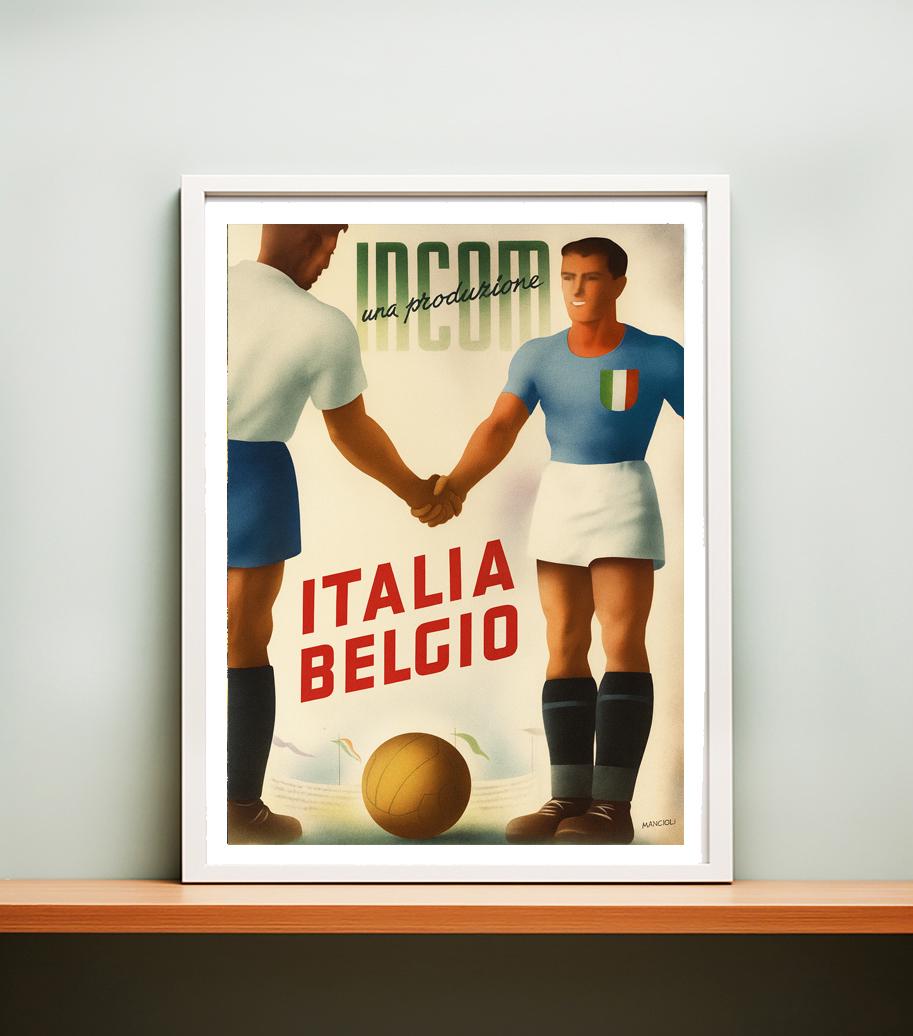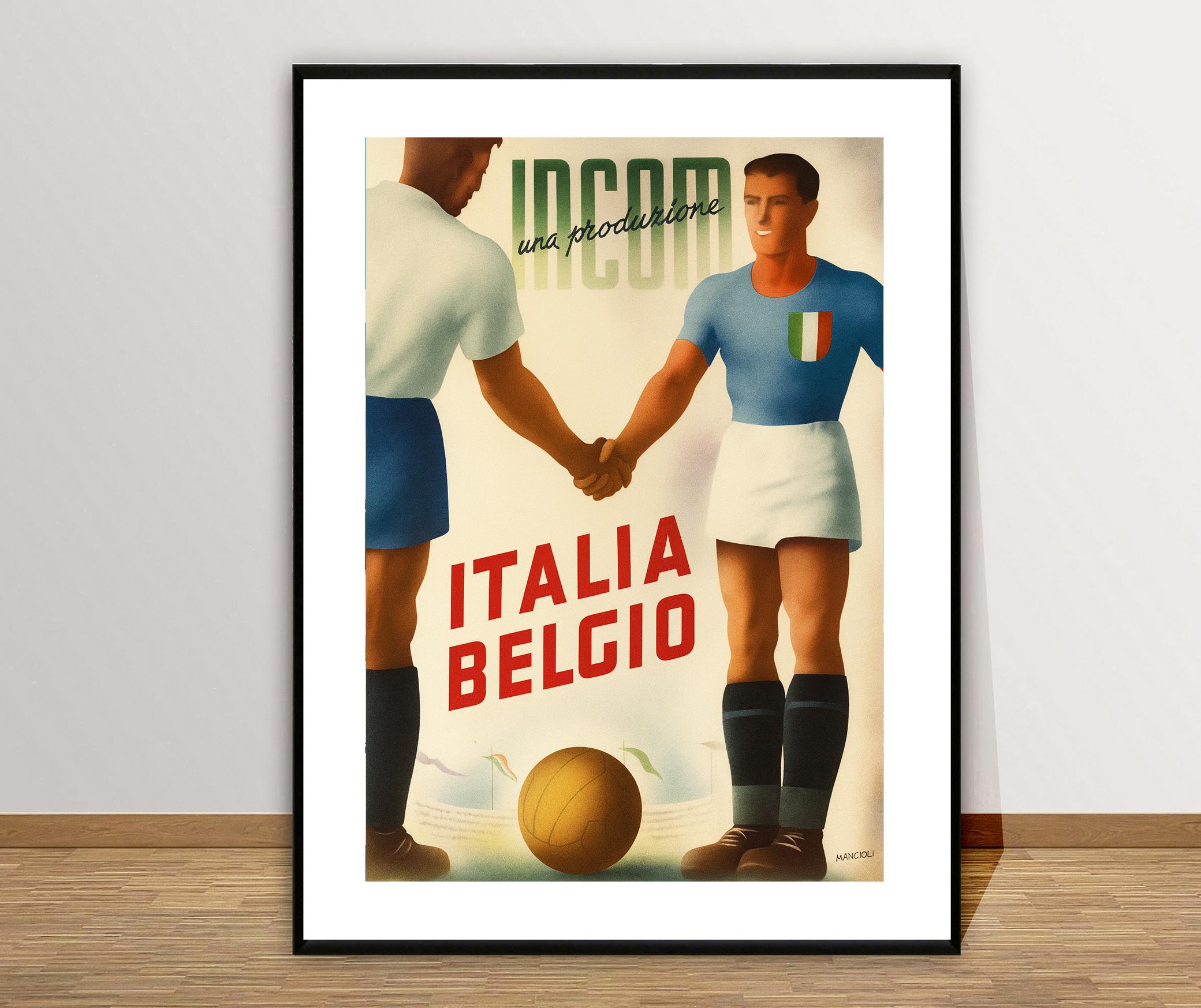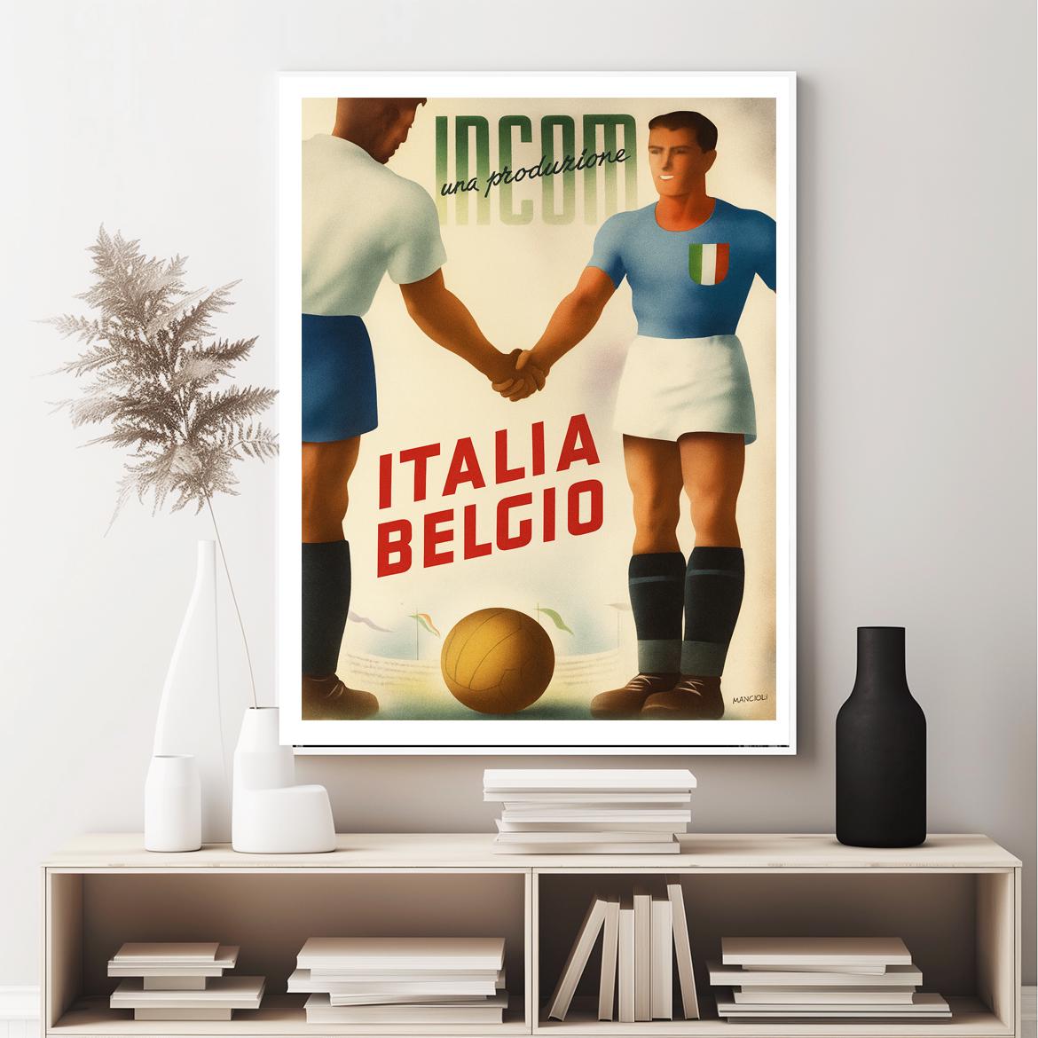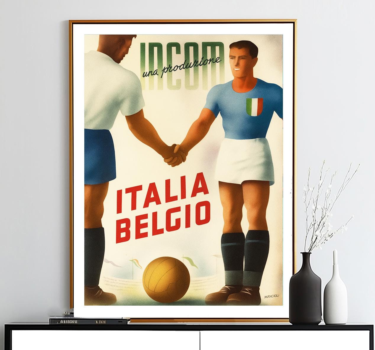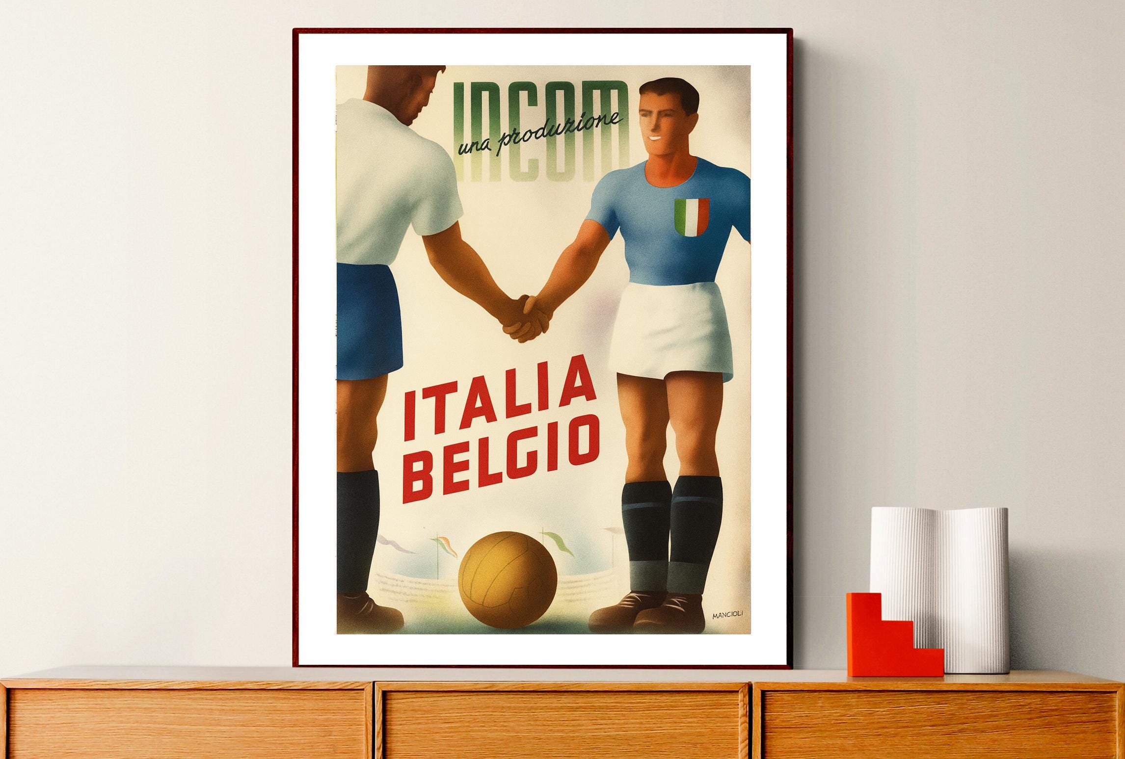 Vintage Italia Belgio Football Match Poster, 1950 - Sport Art