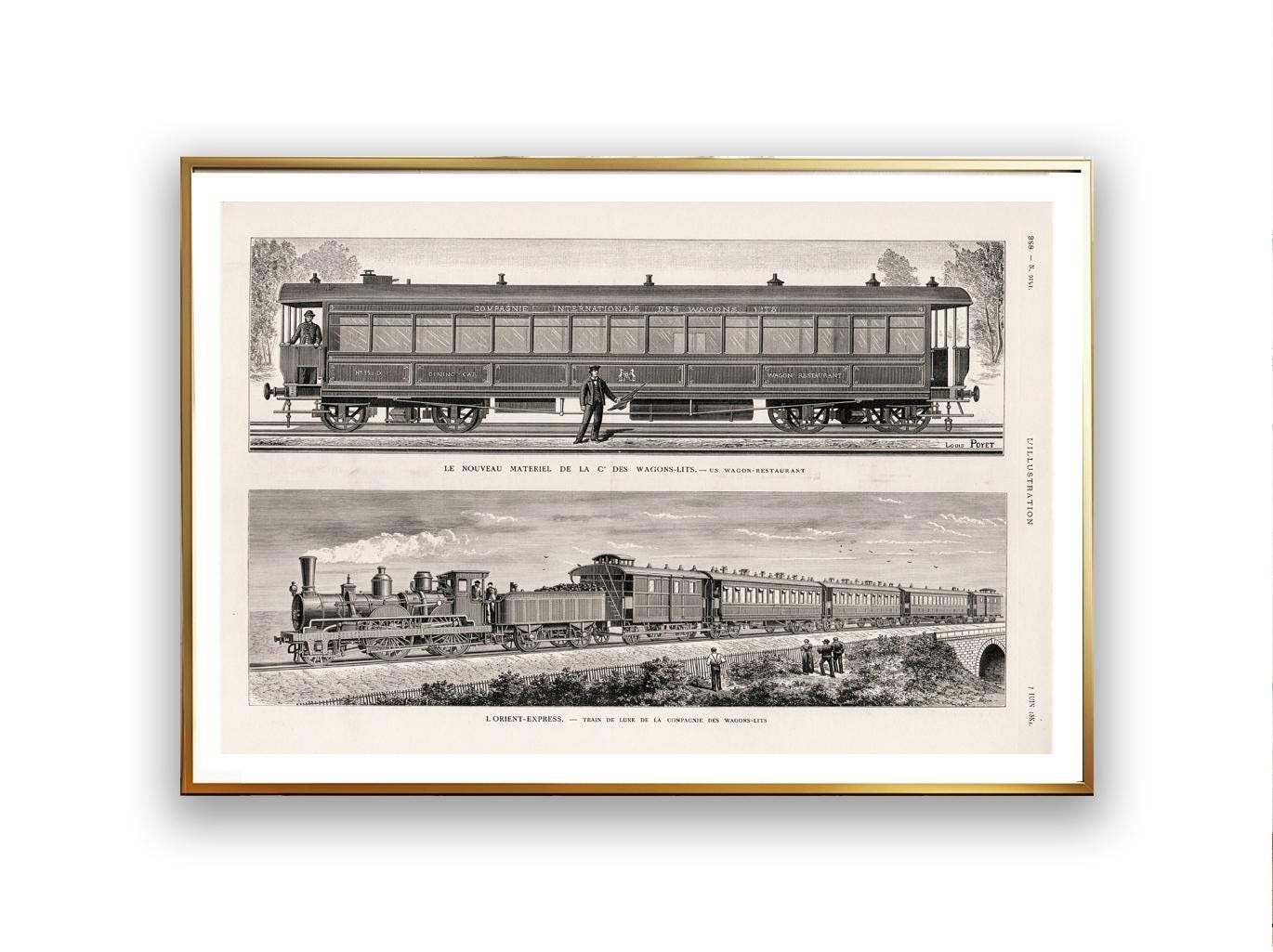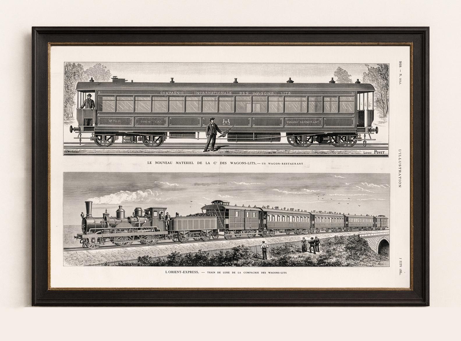 Antique Orient Express, Wagon Lits Illustration Vintage Poster - Poster Print or Canvas Giclee Print
