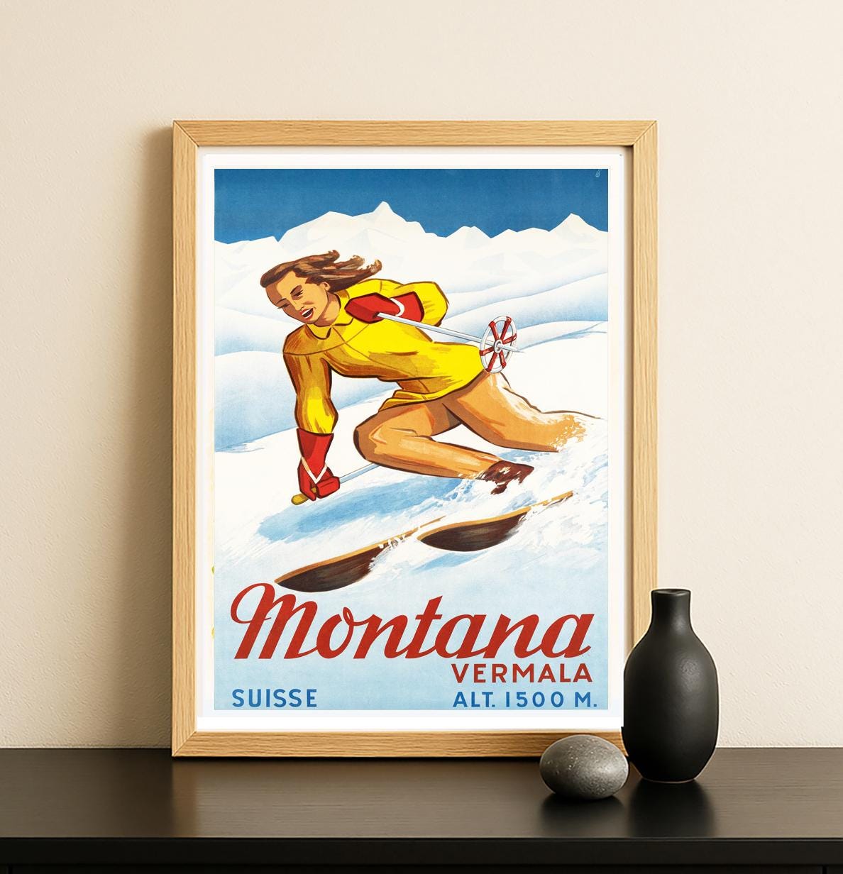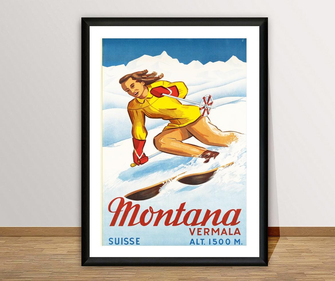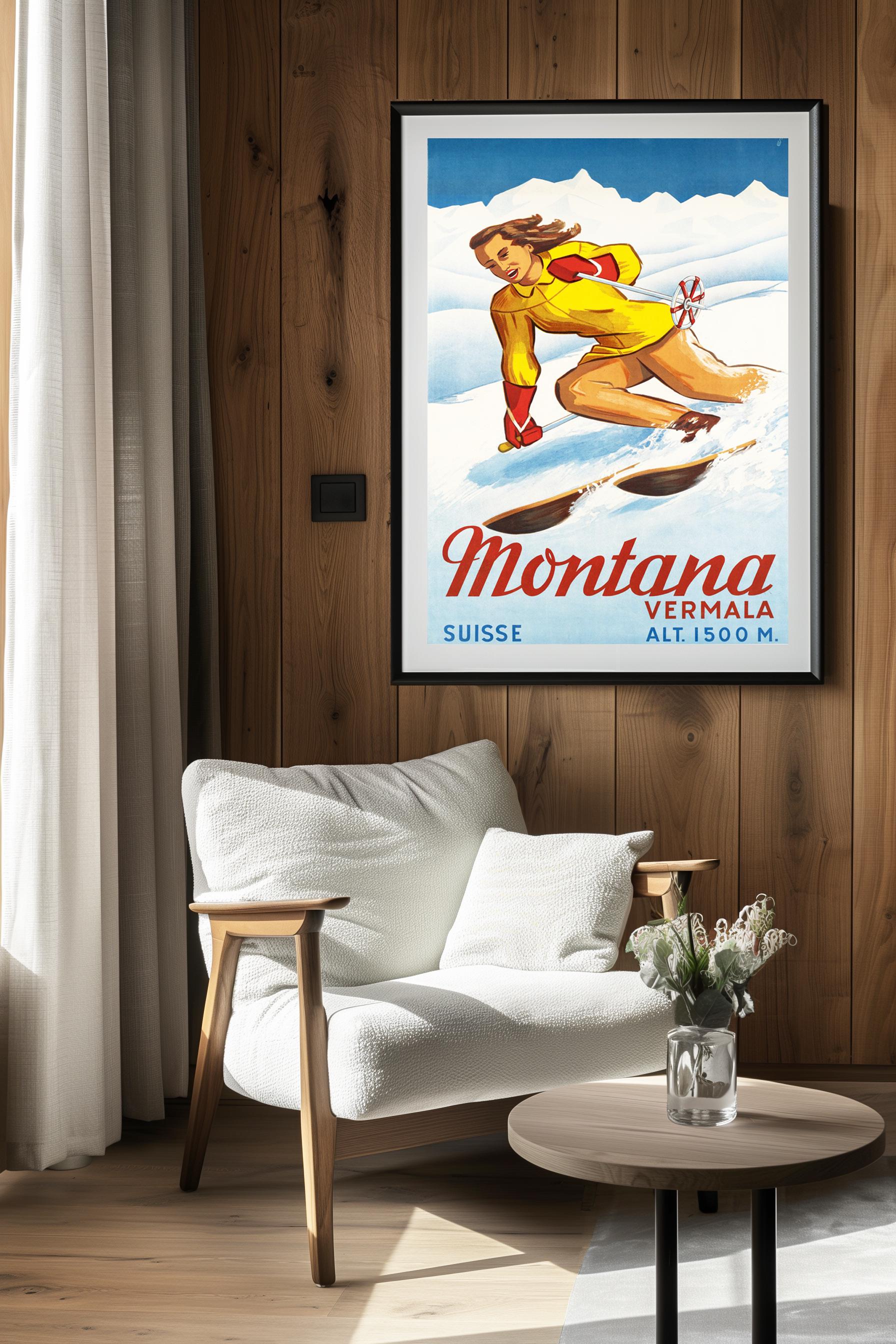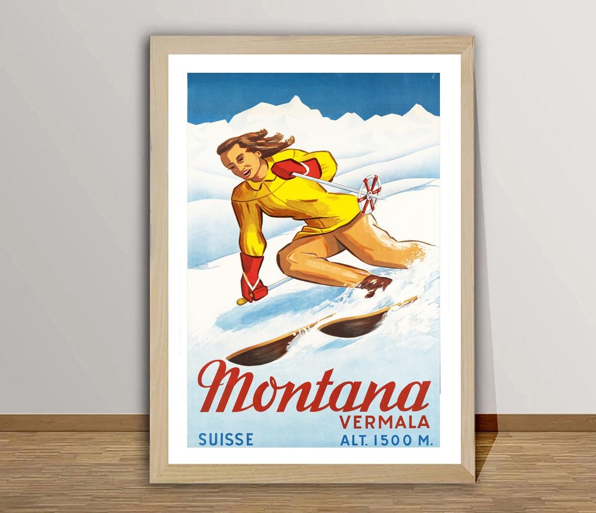 Montana Vermala Switzerland Vintage Travel Poster - Poster Print or Canvas Print / Gift Idea
