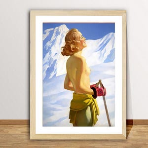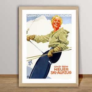 GICLEE printed on high quality paper, cotton canvas or adhesive sticker paper. A high quality reproduction of vintage ski poster. Professional packaging for safe shipping. All images (dimensions) include a white border. (The white border can be removed. Please write a note when ordering.)