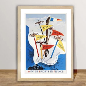 GICLEE printed on high quality paper, cotton canvas or adhesive sticker paper. A high quality reproduction of vintage ski poster. Professional packaging for safe shipping. All images (dimensions) include a white border. (The white border can be removed. Please write a note when ordering.)